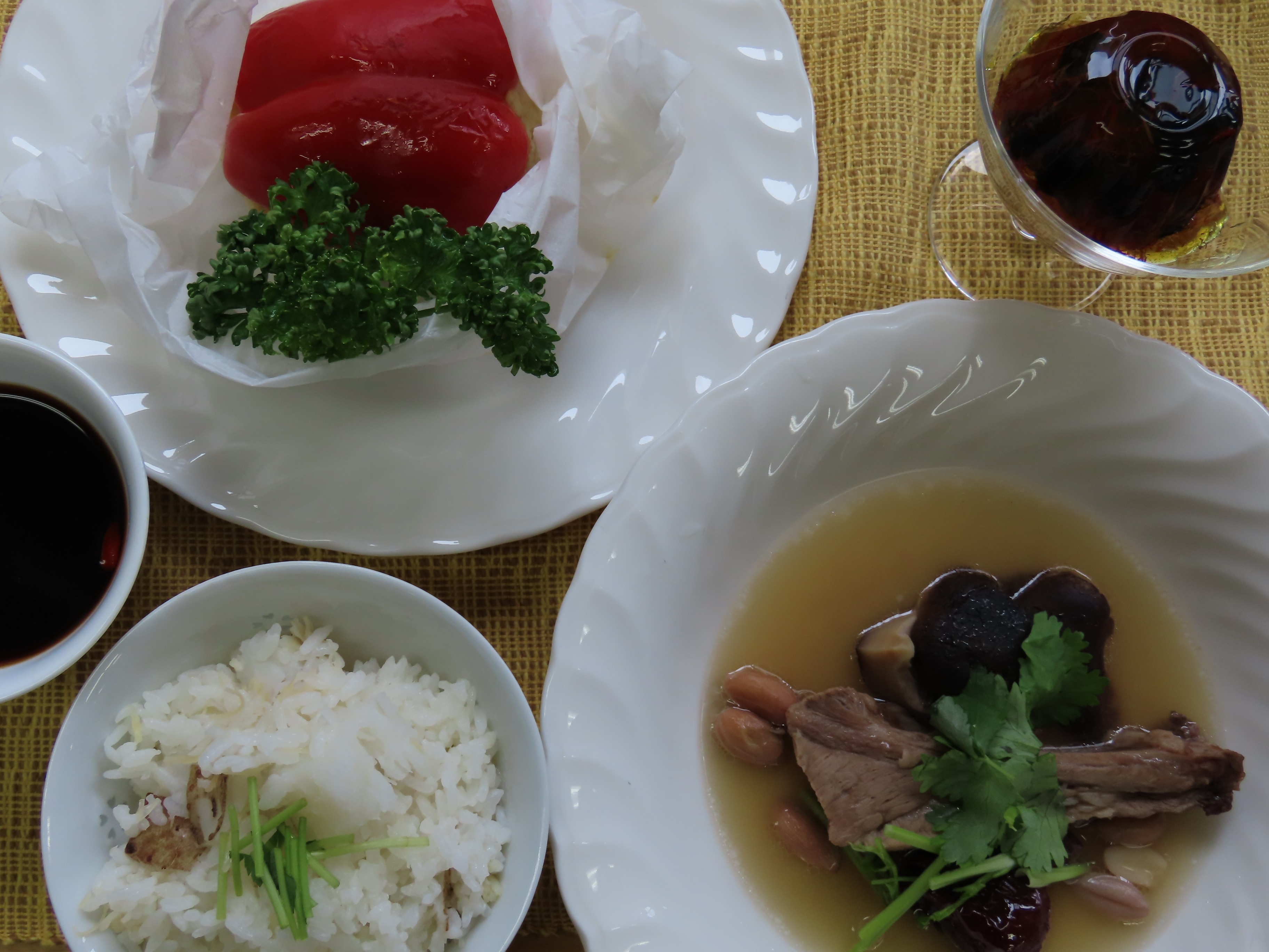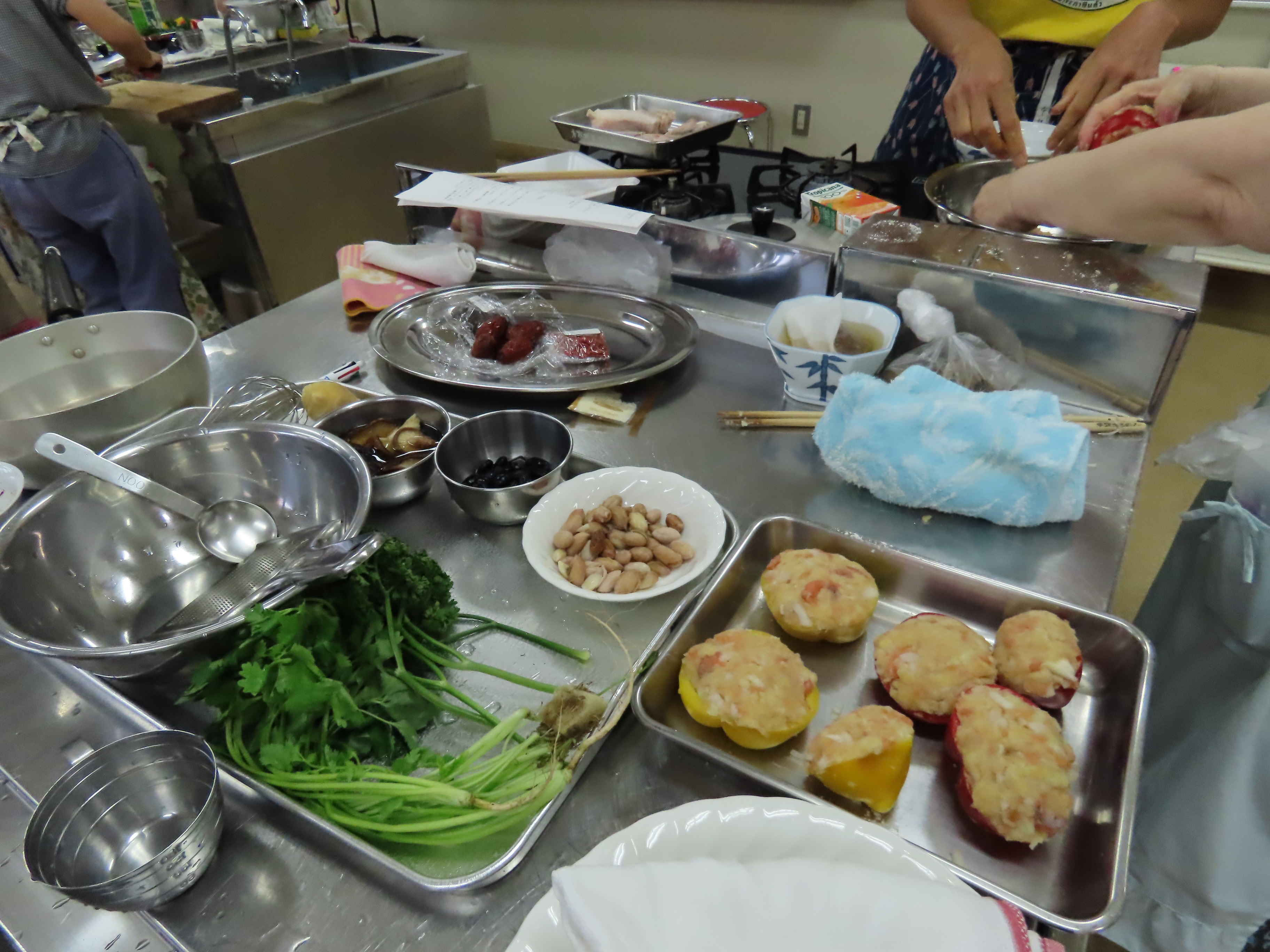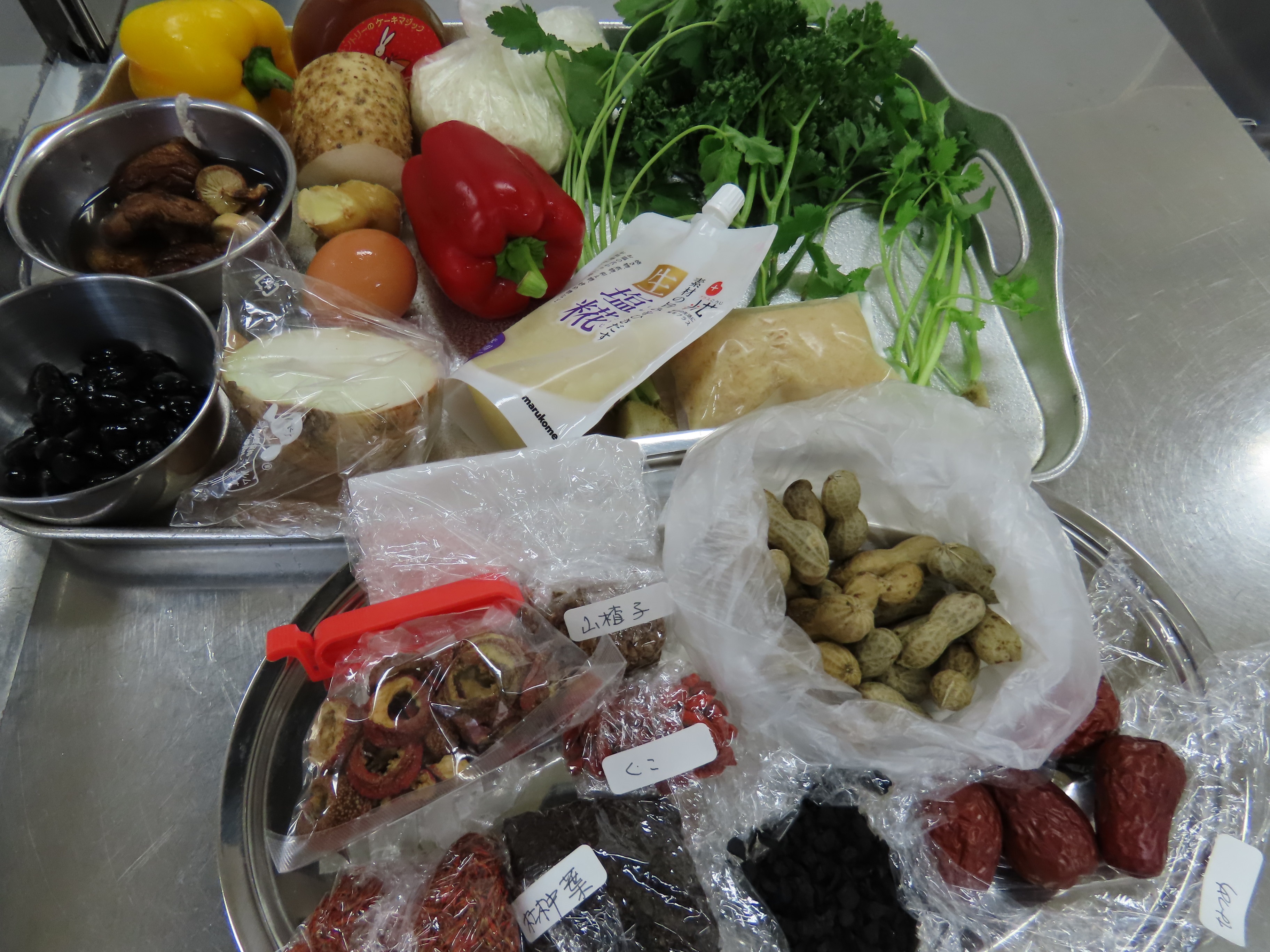 中医学的アンチエイジング 認知症予防の薬膳 「加齢による物忘れ」 と 「認知症による物忘れ」の違い から講座はスタート じっくりと学んだあとは 賑やかに調理開始 ボリューム満点の品々が完成しました 学んでよし 作ってよし 見た目よし 勿論 お味もバッチリ そのうえ 健康にもよし 良いこと尽しの献立です