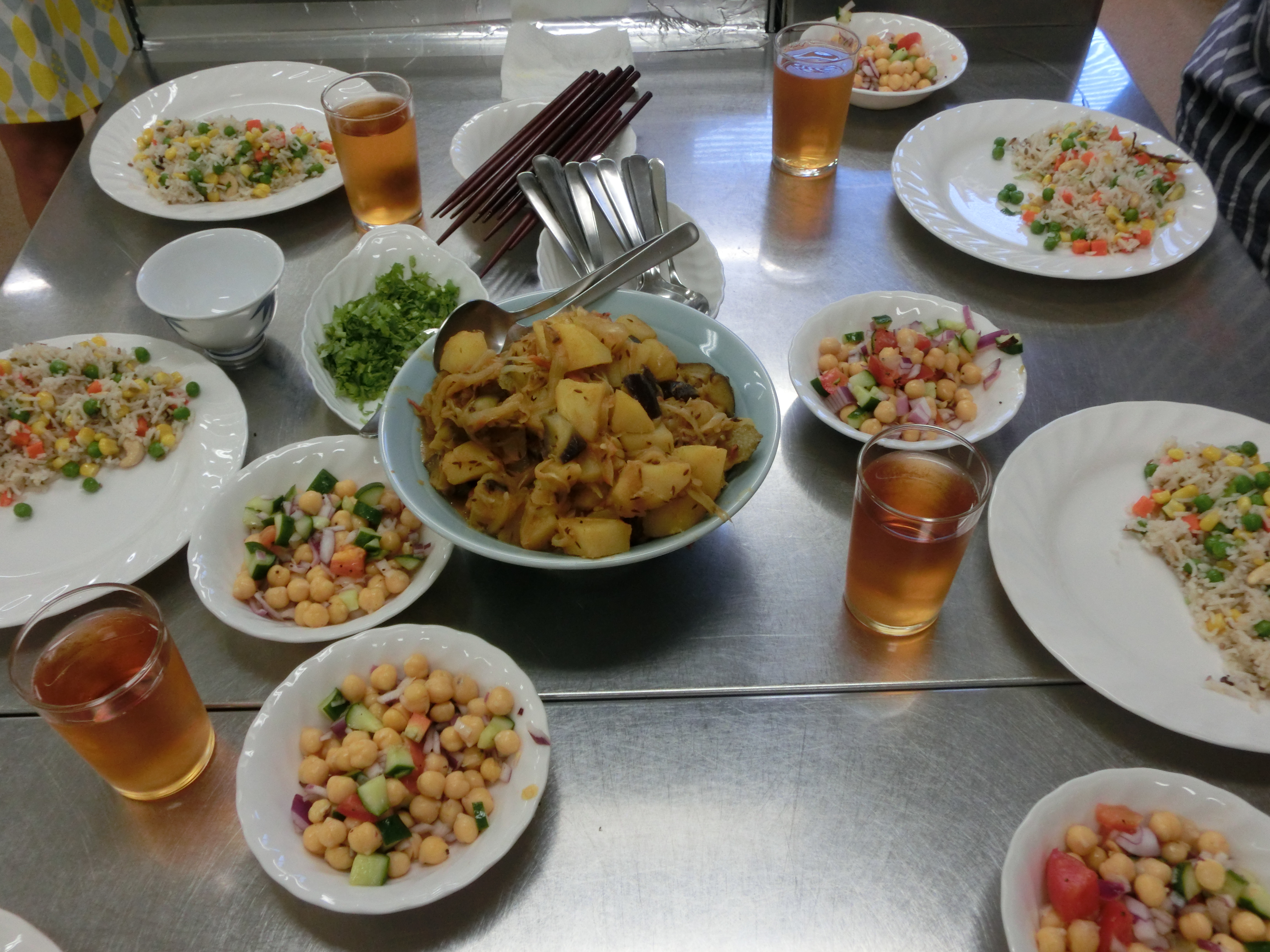 午前11時 料理室からは 良い香りが・・・ インドのお話しを聞きながら和やかに調理が進みます スープカレーとも違う 見慣れ食べなれたカレーとも違う 自由で楽しい雰囲気まさしく「インドの家庭料理」 アンケートから ・とてもヘルシーでスパイスが効いていて、美味しかったです ・すごくおいしかった! 先生の教え方もとても上手でした ・家でも絶対作ります ・インド文化に触れ楽しかった 等々