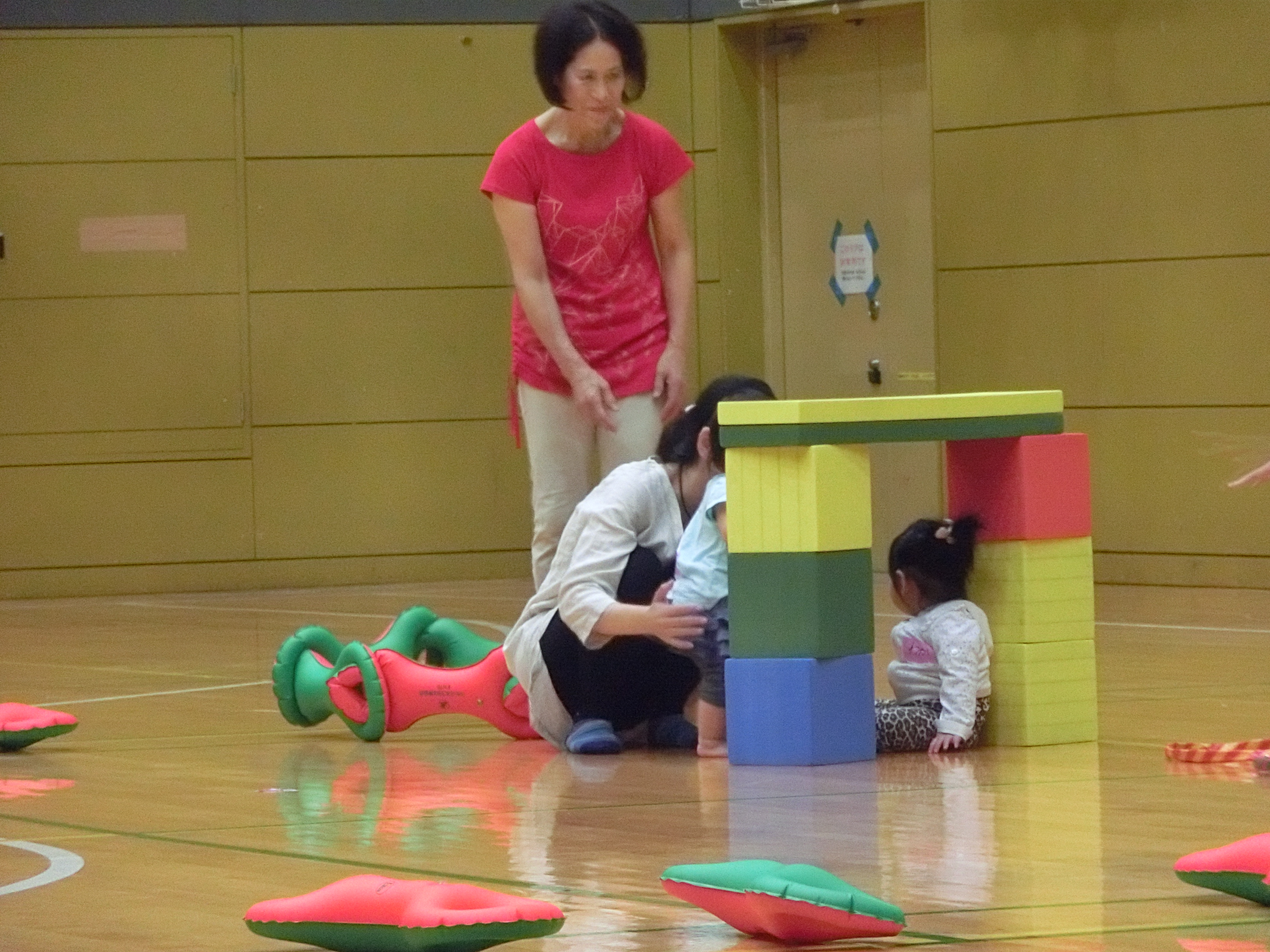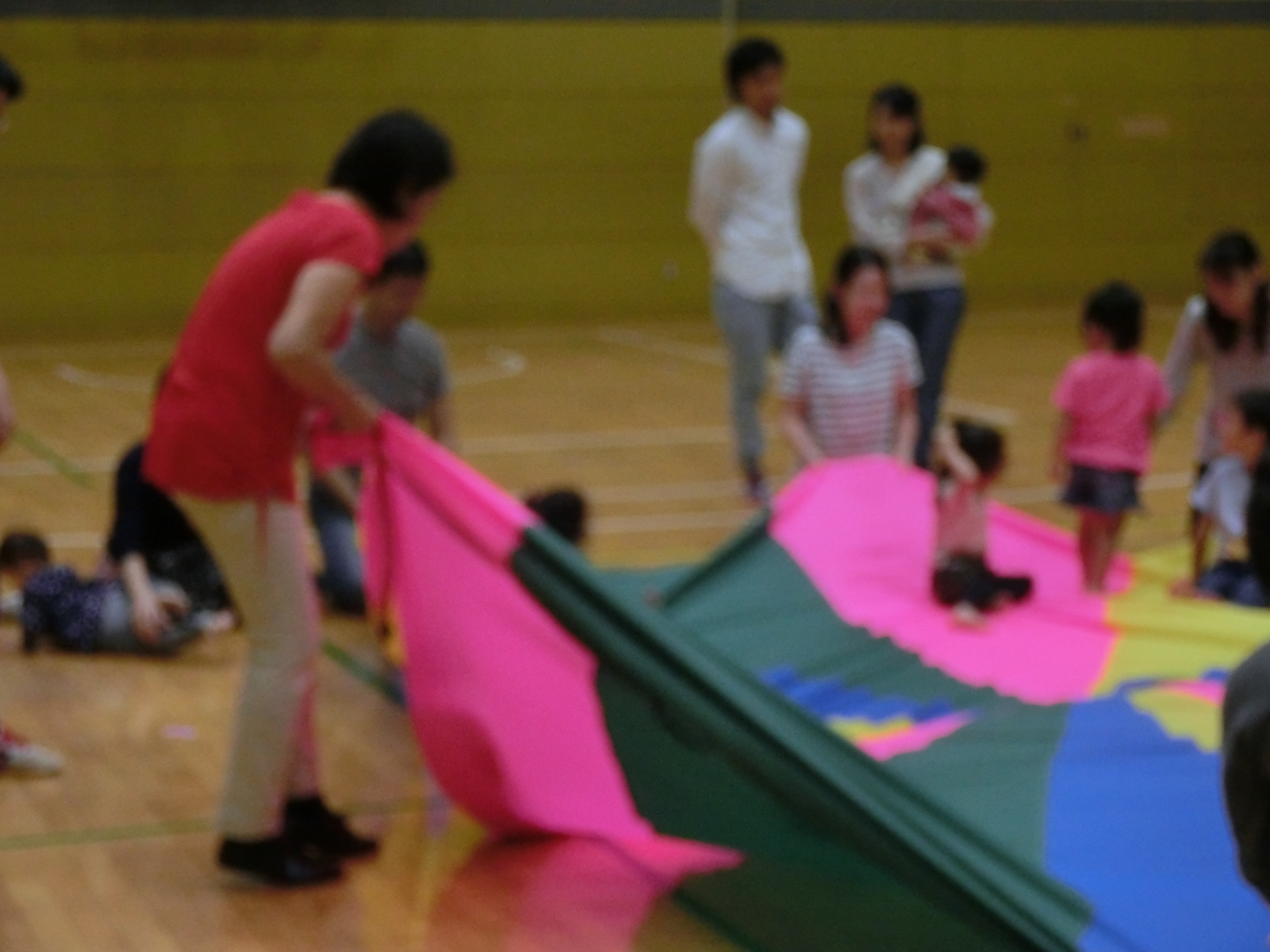 ママやパパにバルーンを引っ張ってもらって滑り台・・・