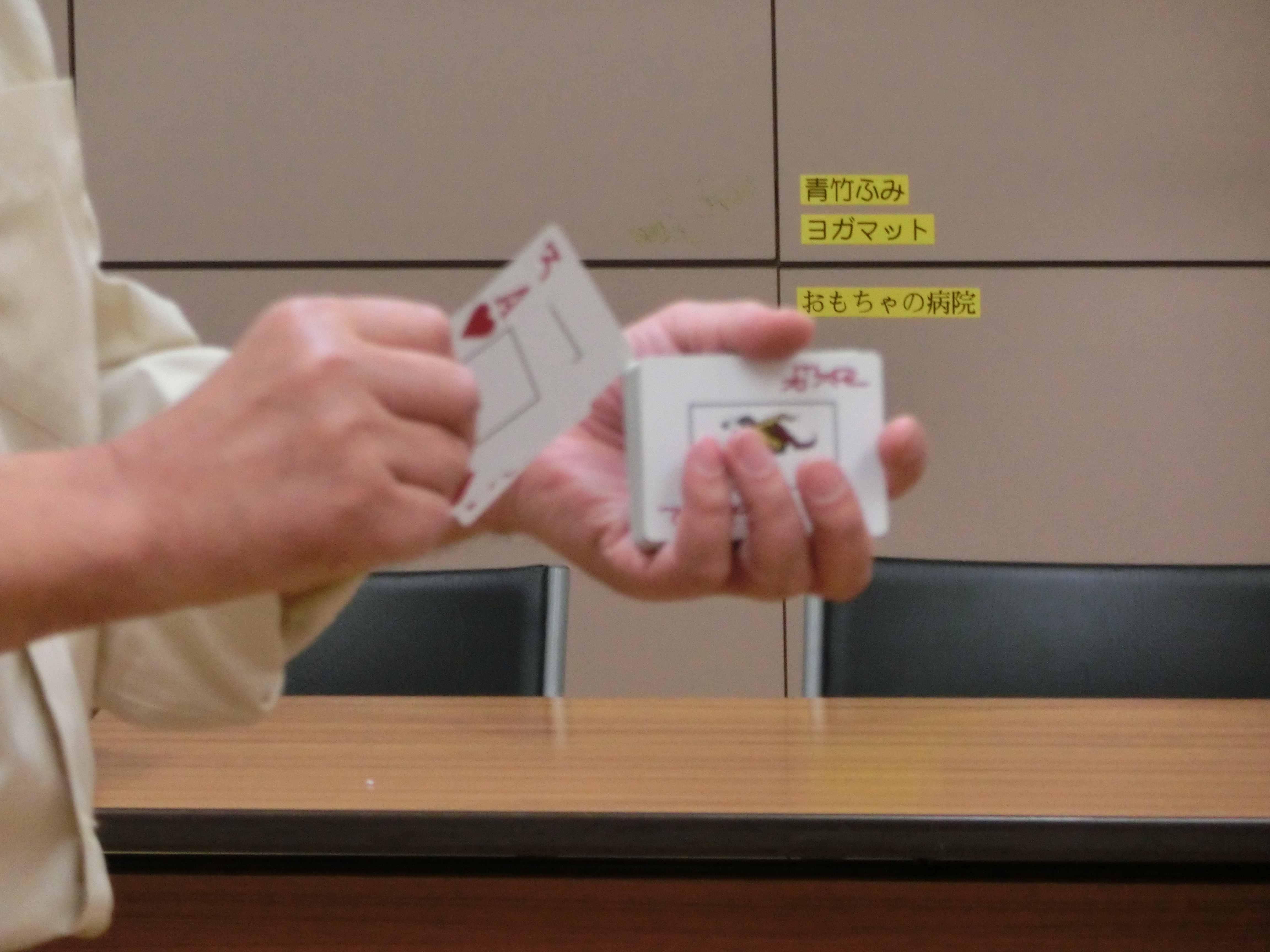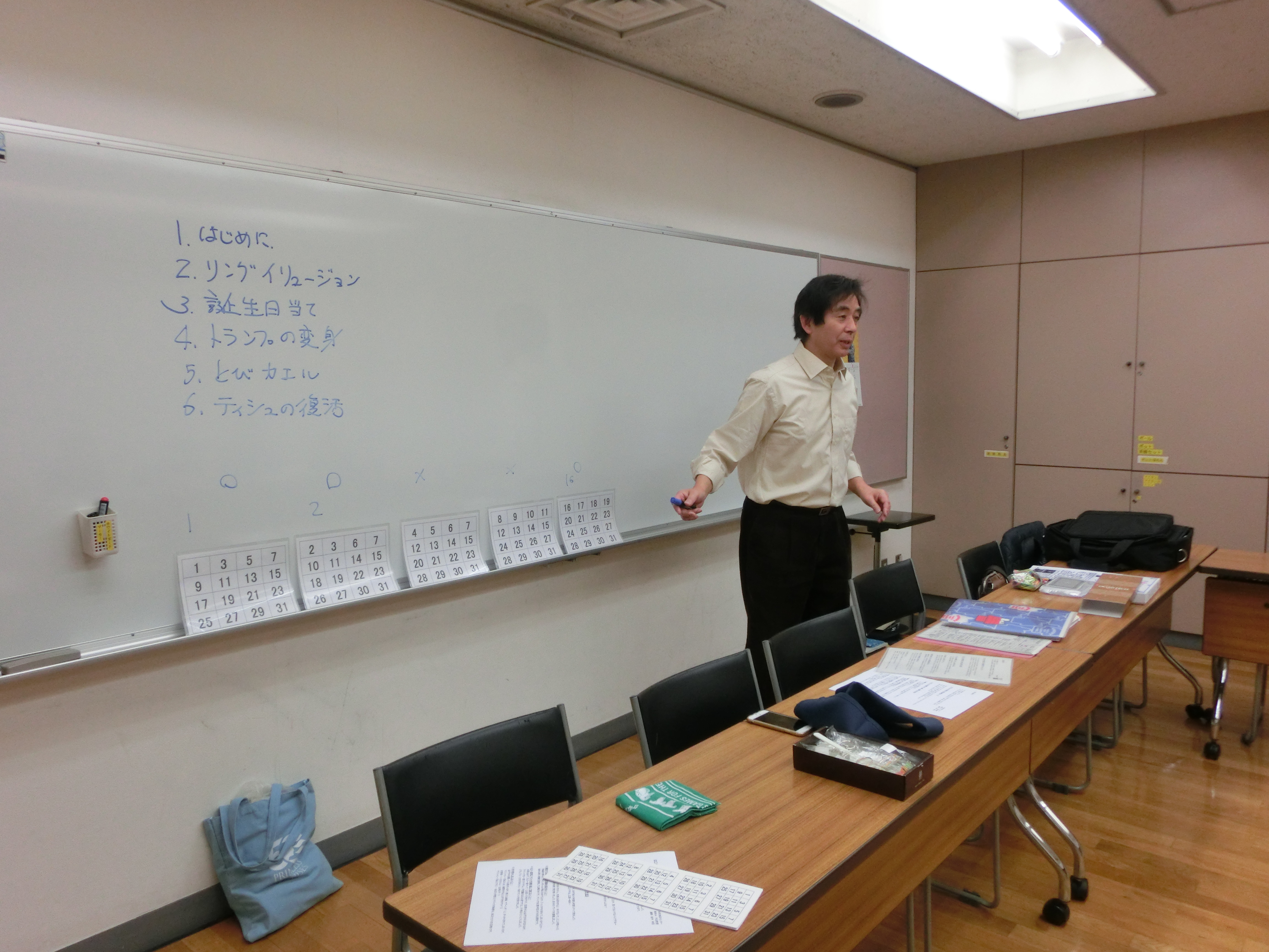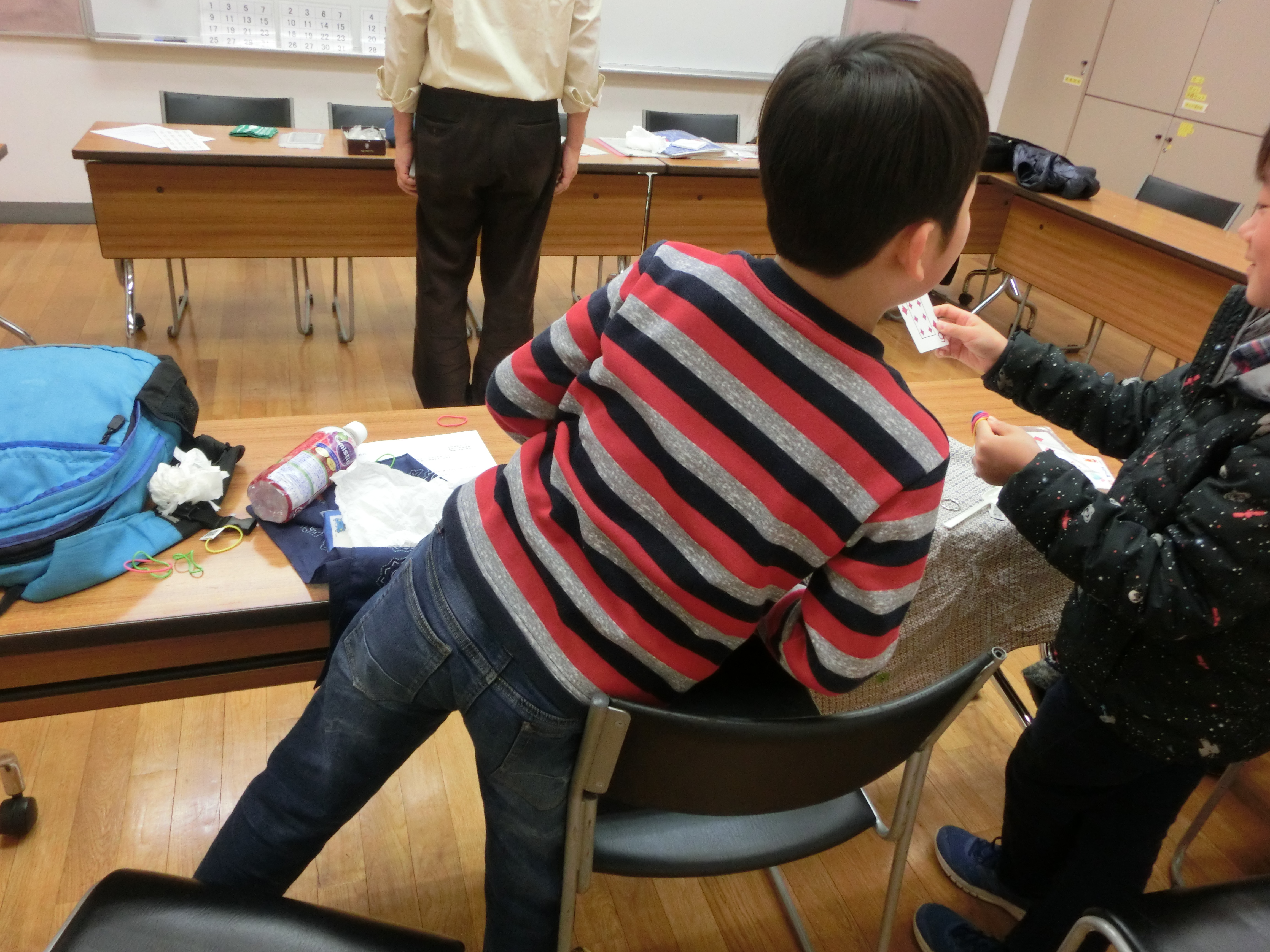 いきなりのリングのイリュージョン 立ち上がってのチャレンジ お誕生日当て トランプの変身 ティッシュペーパーの復活 跳びカエル と盛り沢山 いくつ覚えたかな? 早速 お友達に見せるよと 意気込むお子さんも