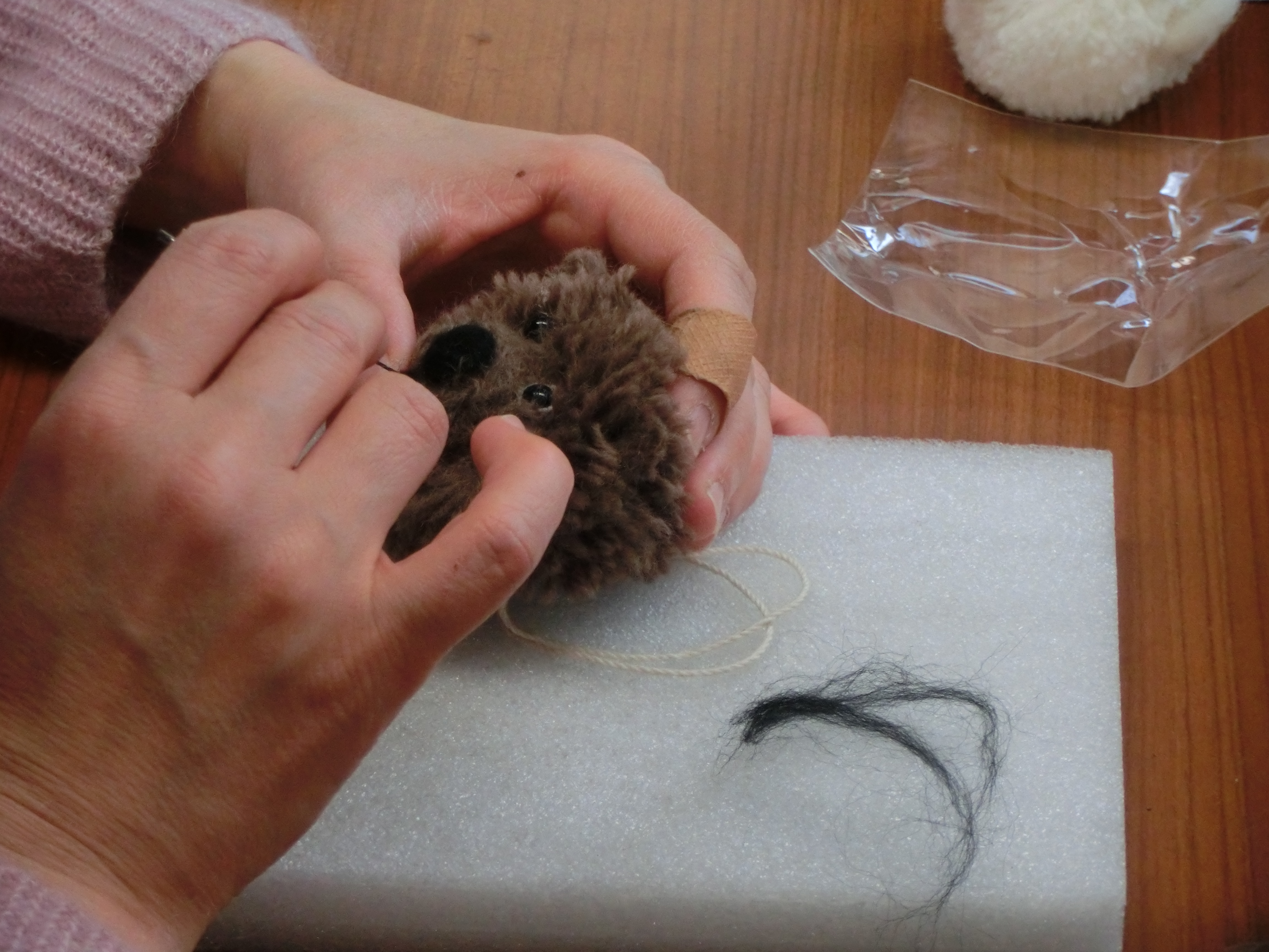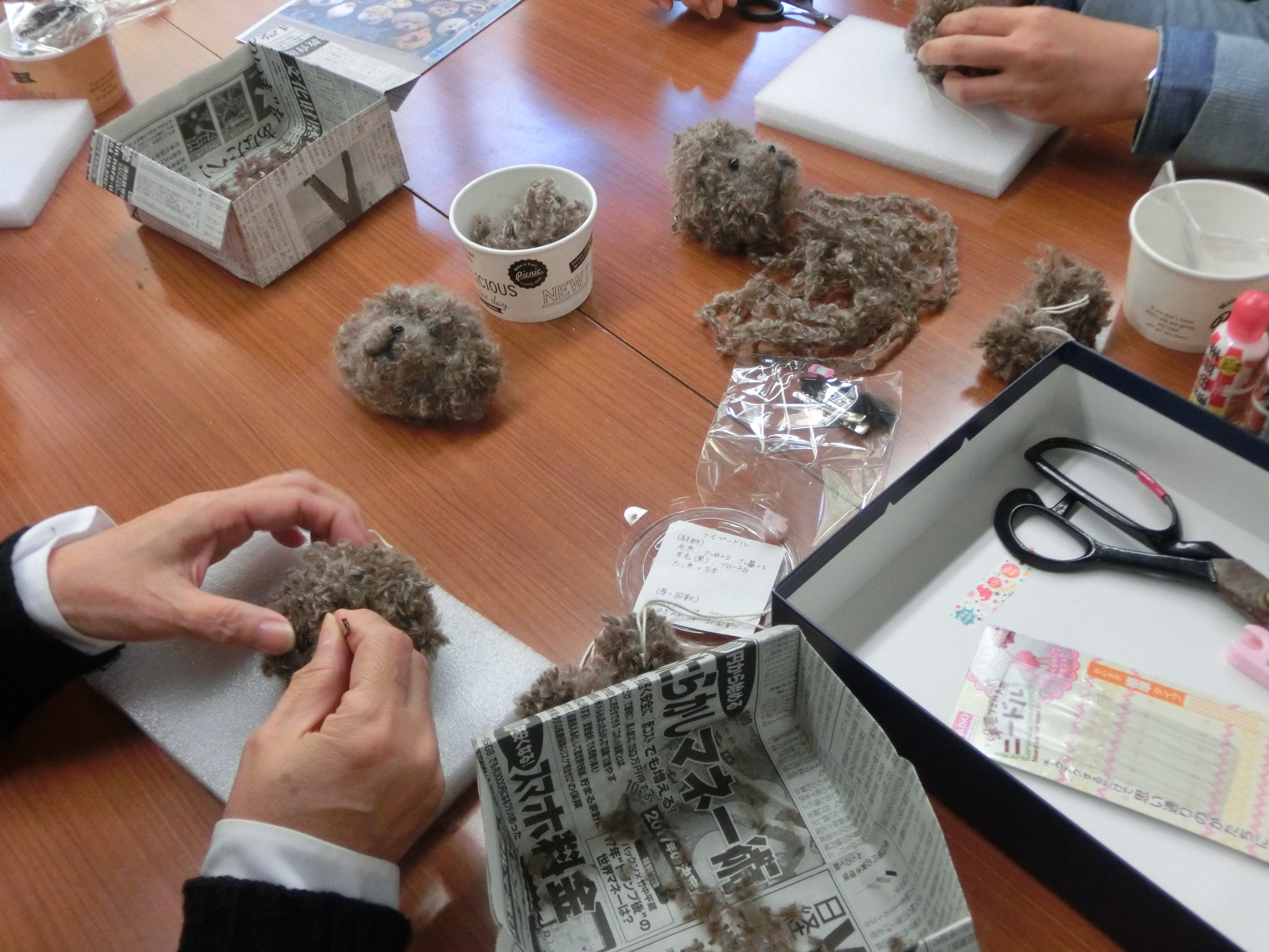 プードルかくま を選んで製作スタート 和やかな雰囲気 もこもこ感を生み出すために 針でチクチク 手作りの愉しさを感じていたでしょうか もこふわの可愛いマスコットが完成 同じ材料を使っているのに 動物たちにも個性が