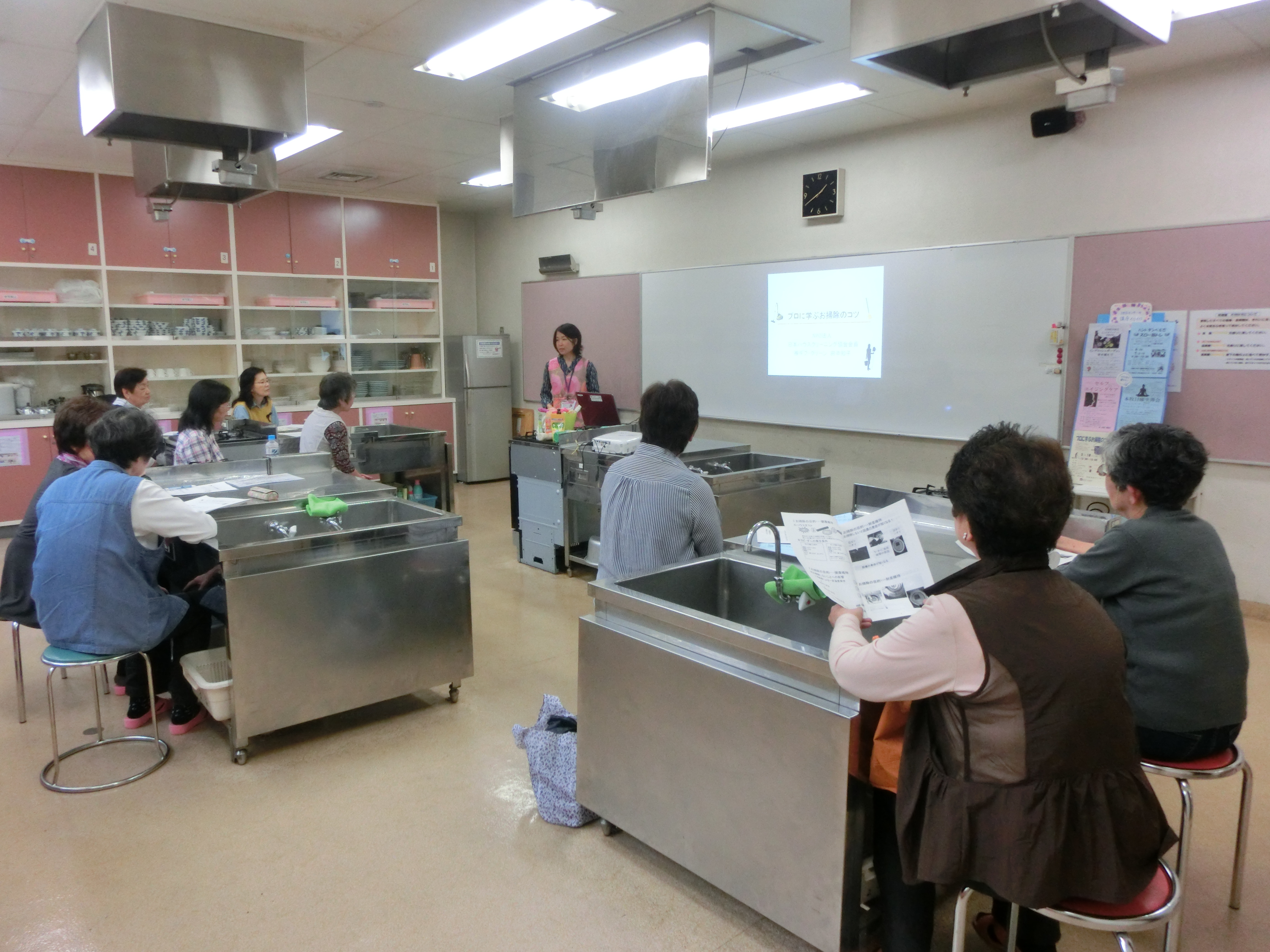 お掃除の目的・・・健康維持・快適精神維持 ※アレルギーの要因ともいわれる カビ・ダニの発生条件 温度20℃~30℃ 湿度75%~80% +栄養(ほこり・食べかすなど) これからの季節は 発生条件に当てはまる温度や湿度 発生させないように気を付ける事 お掃除を効率よくするための洗剤の使い方 道具・基本動作・お掃除の場所別ポイント 等々 講義と実施を交えて 「コツ」盛り沢山の1時間半でした