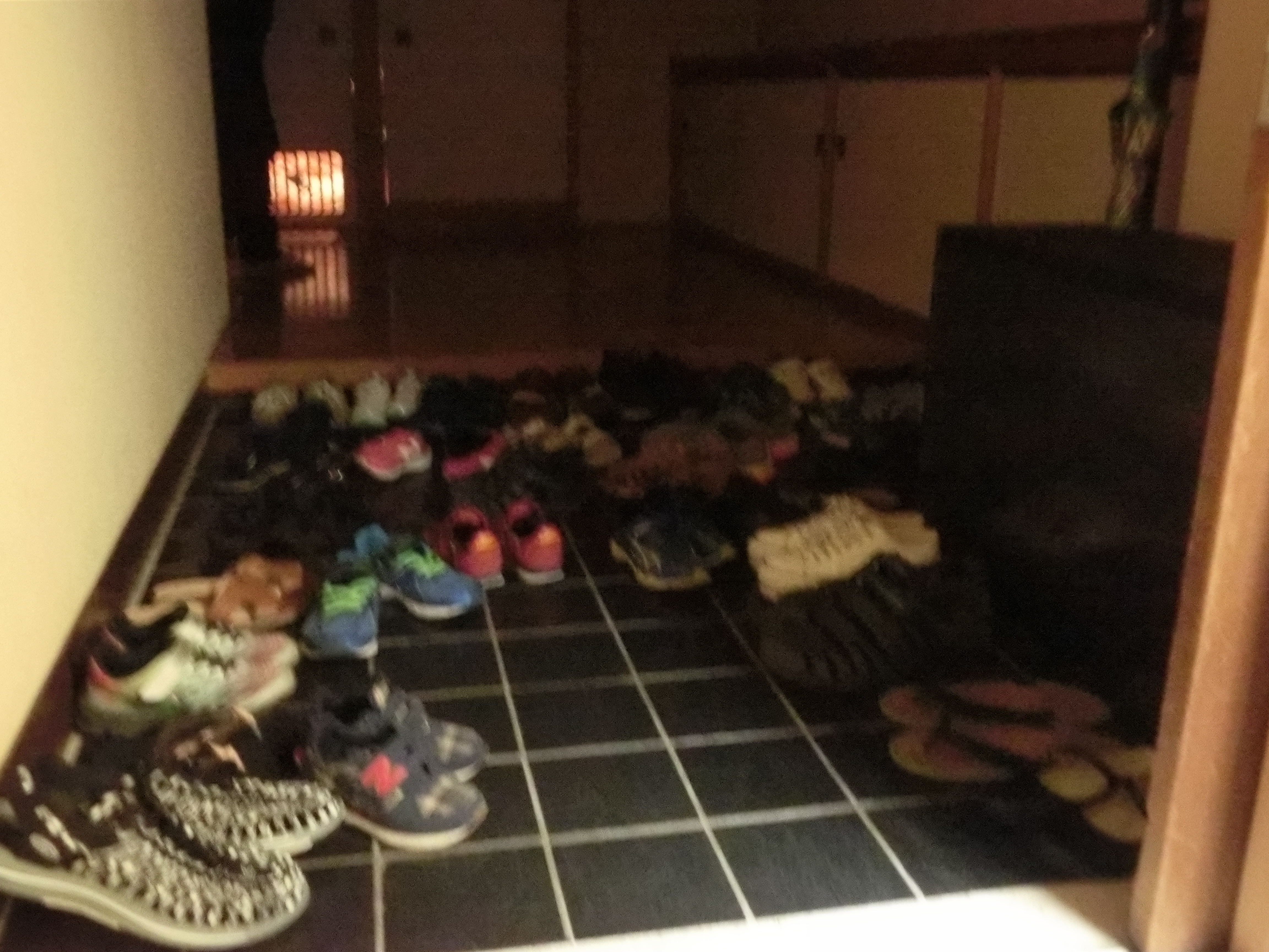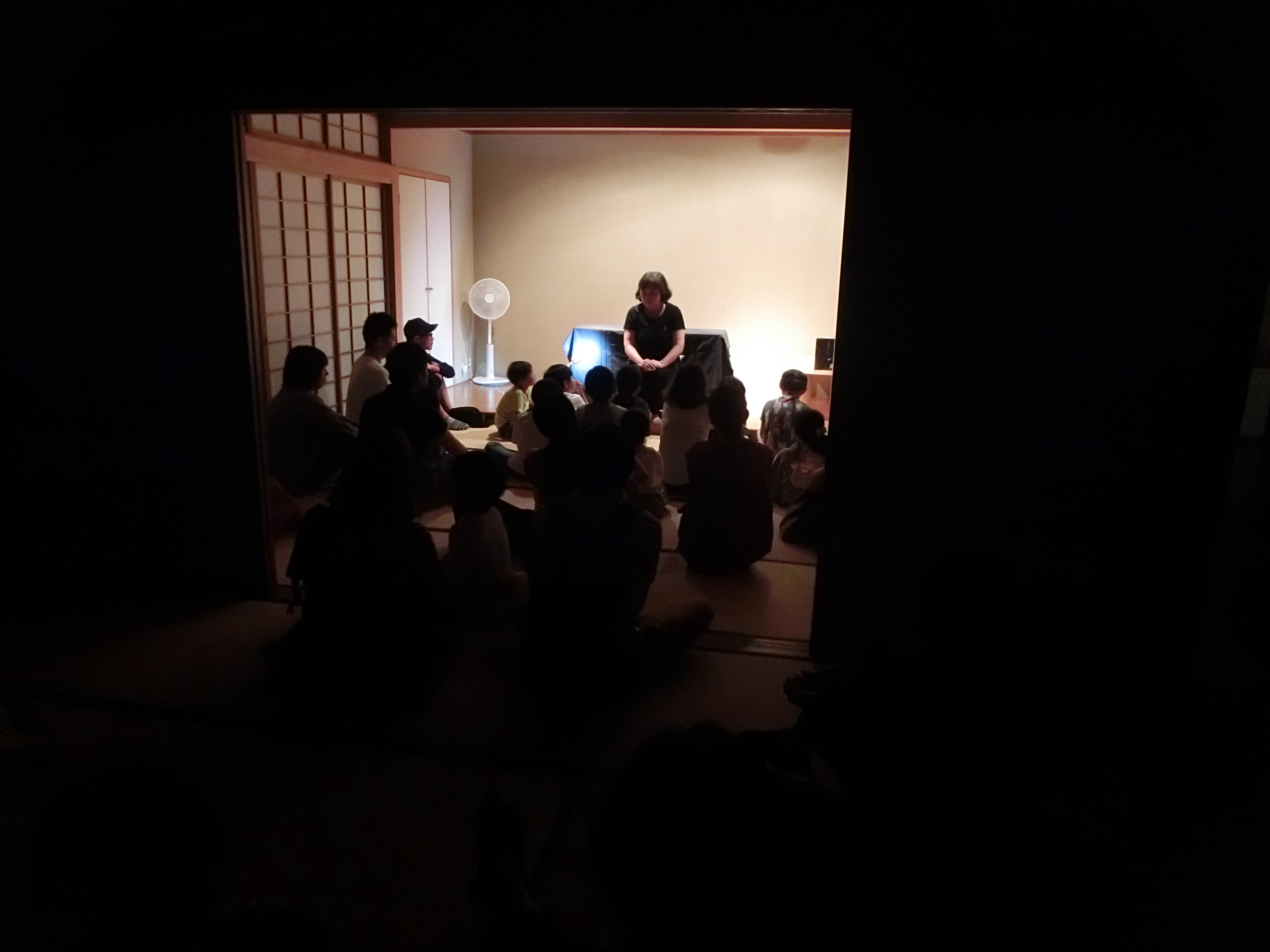 和室の三和土に沢山の靴が・・・ ドキドキ ワクワク 今年の怖いおはなし会は 紙芝居「ばけものでら」 絵本「夜が来るまでは」 おはなし「くら~い くら~い家」 他 おはなし会の後は 肝試し ブルブル ドキドキ