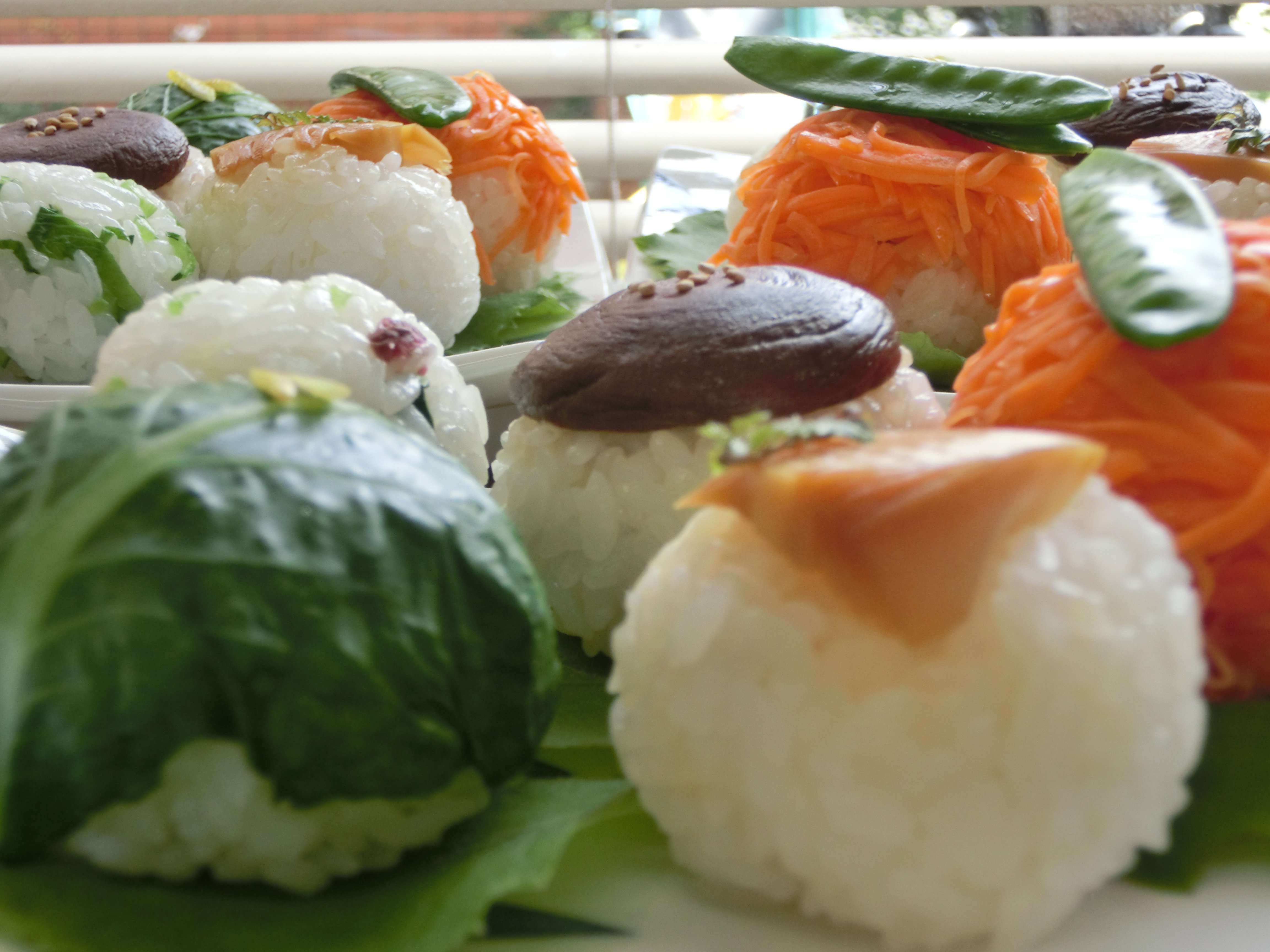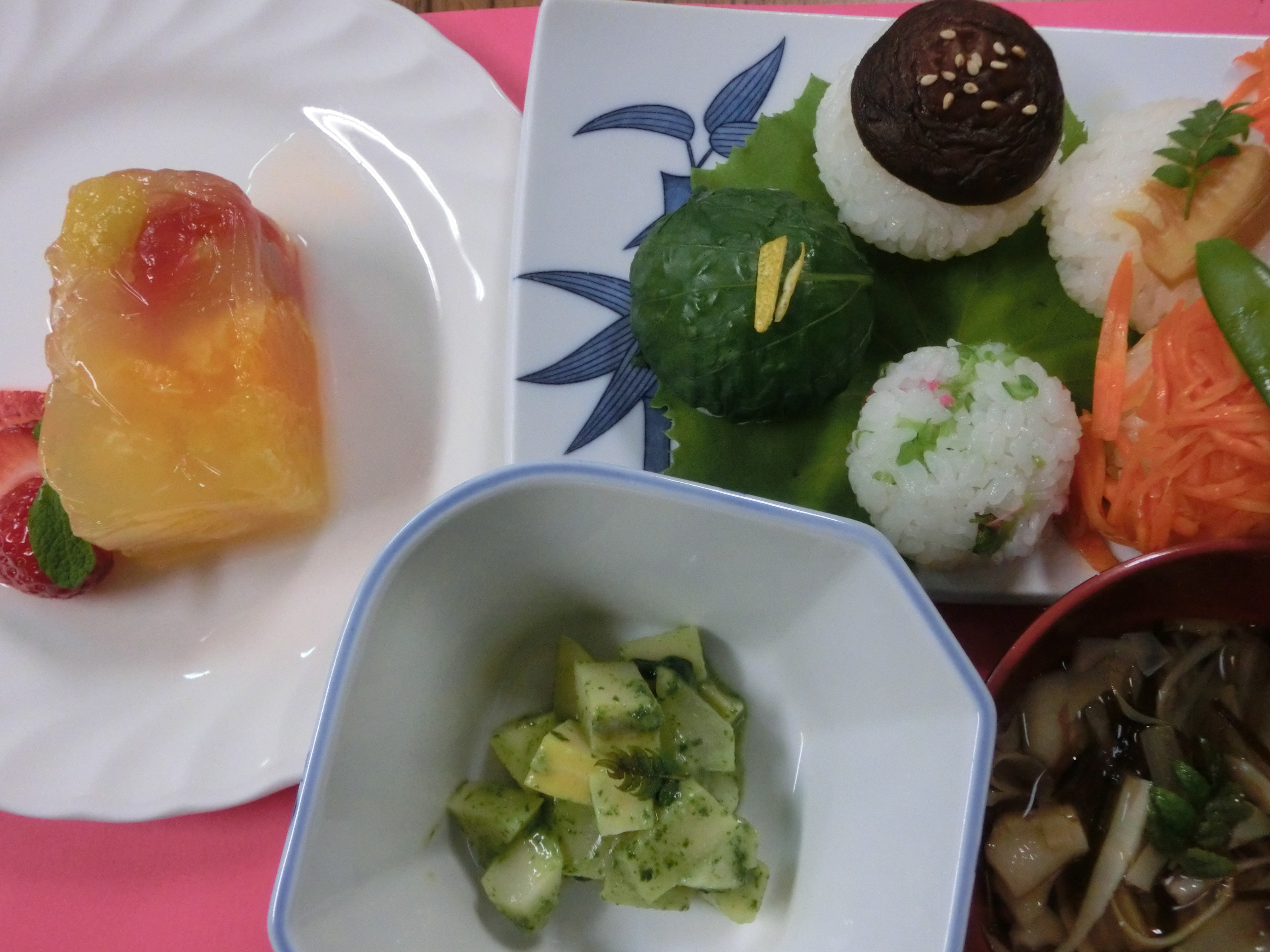 横浜野菜たっぷりのおもてなしメニュー ・野菜の手まり寿司 ・旬野菜の和え物 ・春の柑橘テリーヌ 手まり寿司には旬の「筍」 かわいらしい色とりどりのお寿司の完成です 和え物は、筍の木の芽和え お吸い物には、筍・ウド たっぷり旬のお野菜を 使った「おもてなし」にピッタリな献立です