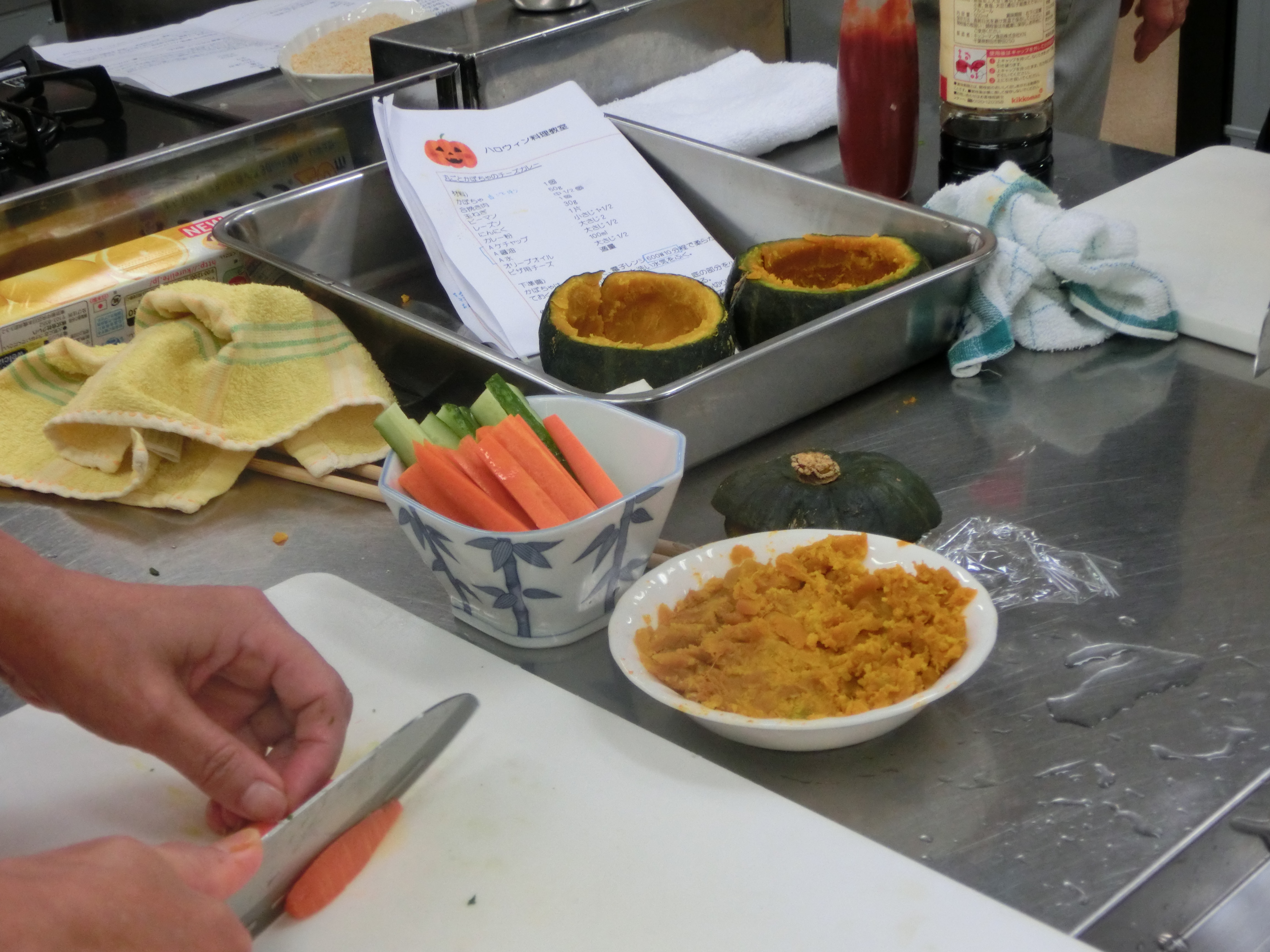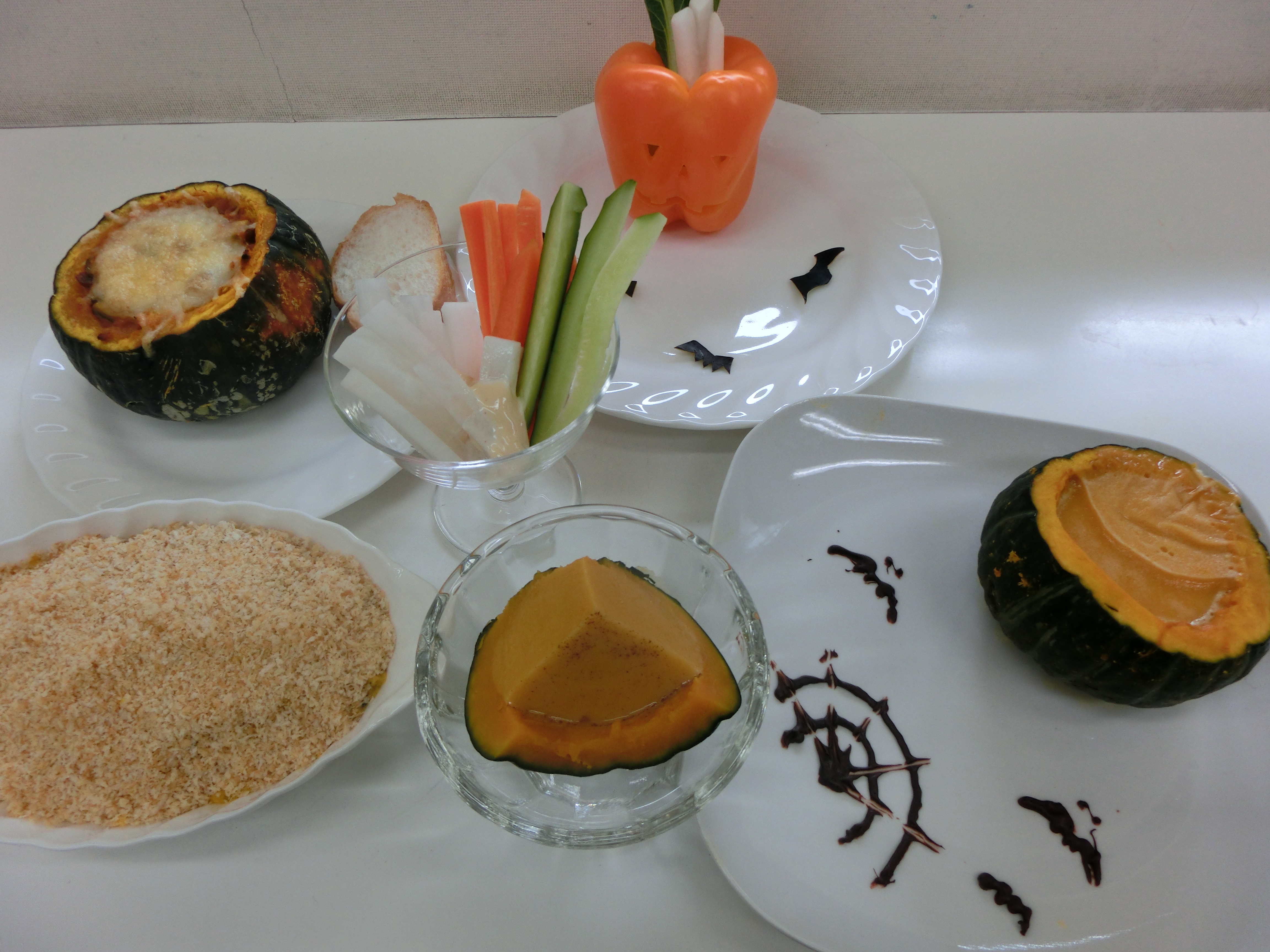 かぼちゃ丸ごとカレーチーズ焼き 野菜ステック かぼちゃのスコップコロッケ 豆腐ムースとデザートプレート を作りました