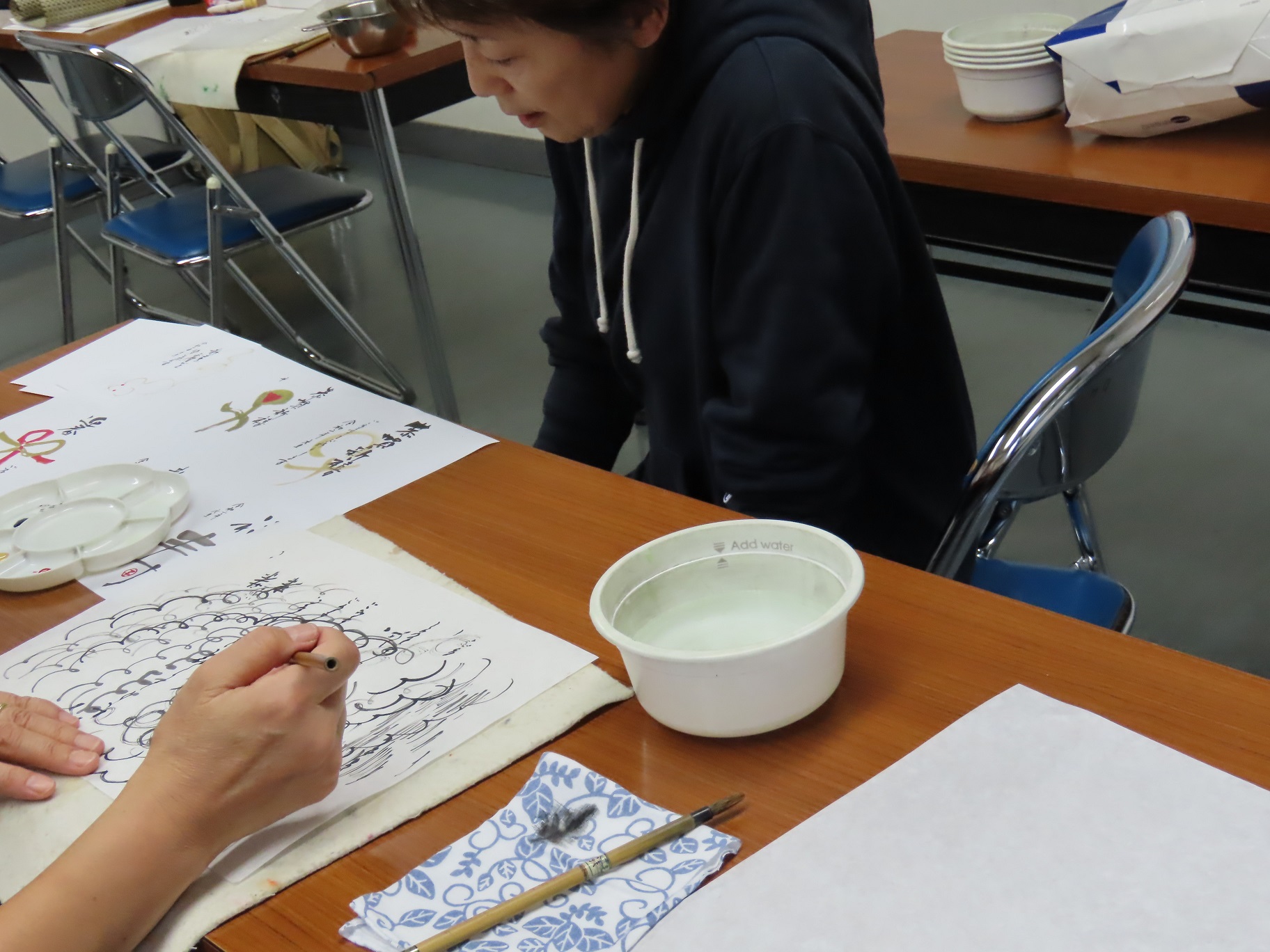 小筆を使って年賀状を書きます 葉書にバランスよく 心を込めて