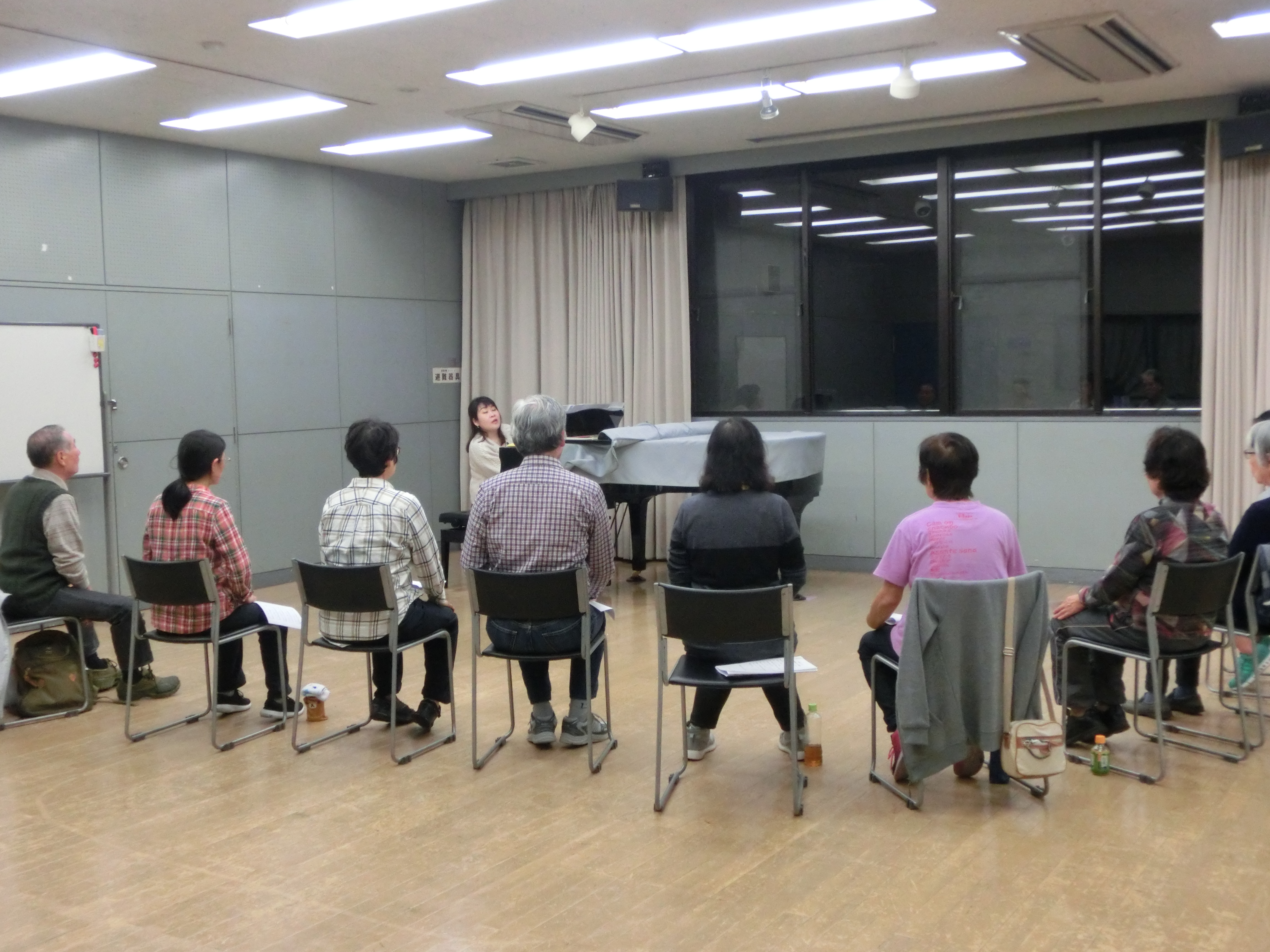 ♪千と千尋の神隠し いつも何度でも ♪世界に一つだけの花 の2曲を主に 基本の発声から 表情豊かに歌い上げる まで 参加者皆さん熱心に