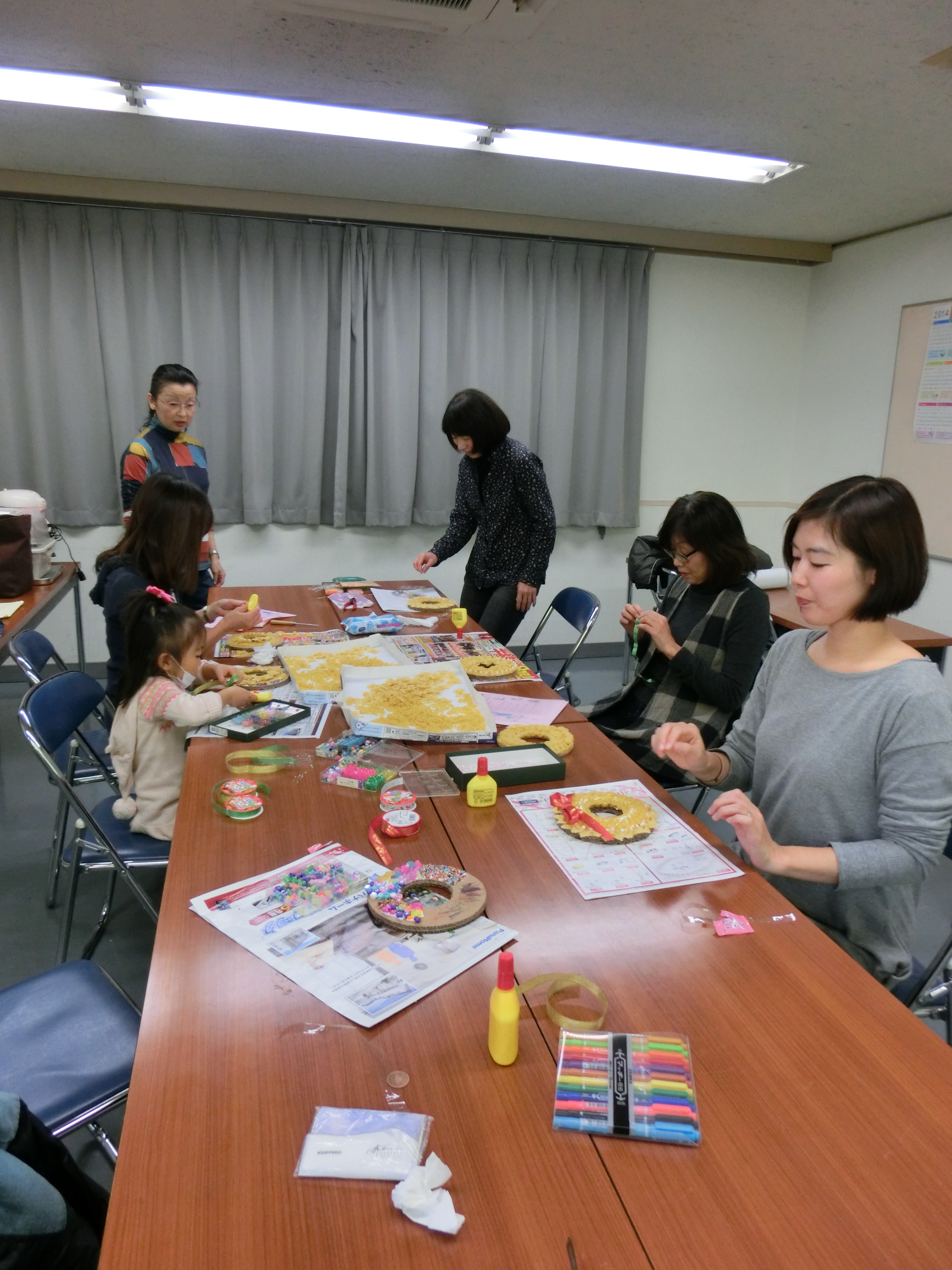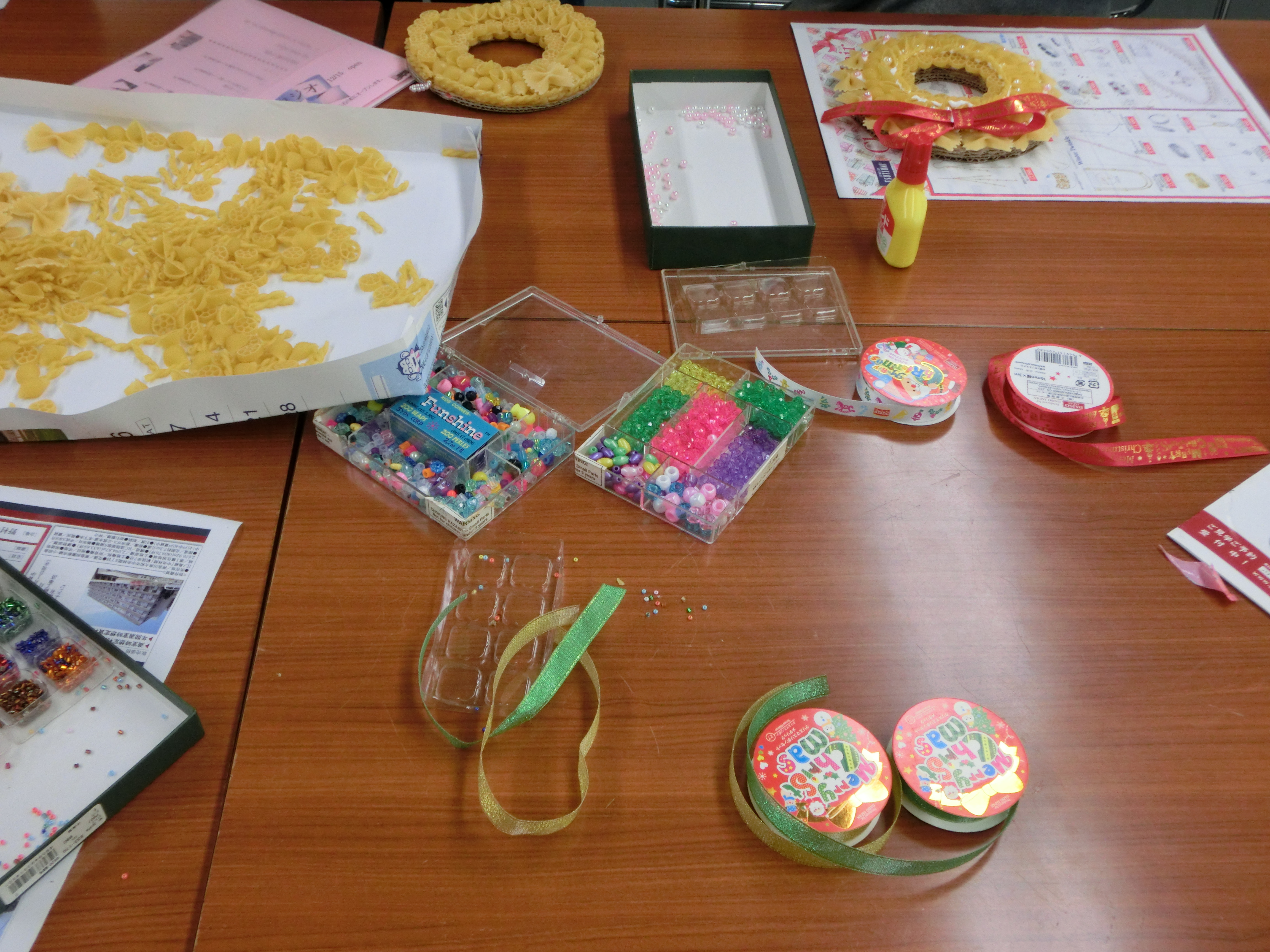 マカロニ+ビーズやりぼんで 私だけのリースの完成です。