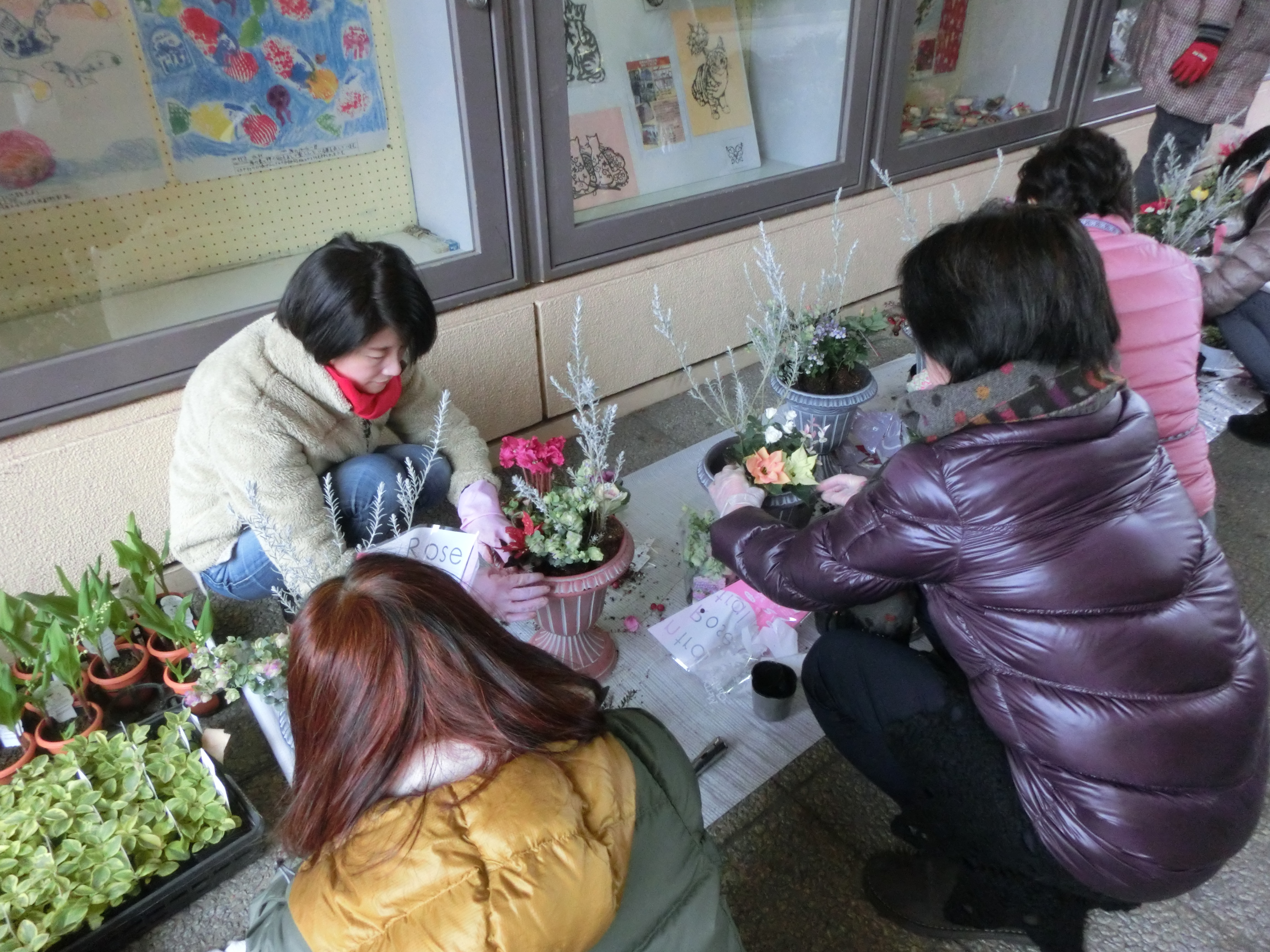 花屋さんの店先さながら・・・ 迷い迷い 選ぶ楽しみ 色を統一される方 クリスマス用 お正月用にアレンジされる方 手入れの仕方や寄せ植えのアドバイスを 伺いながら 手を動かし 情報交換し アッという間に完成! 歓声♪ 素敵な年末年始をお過ごしください