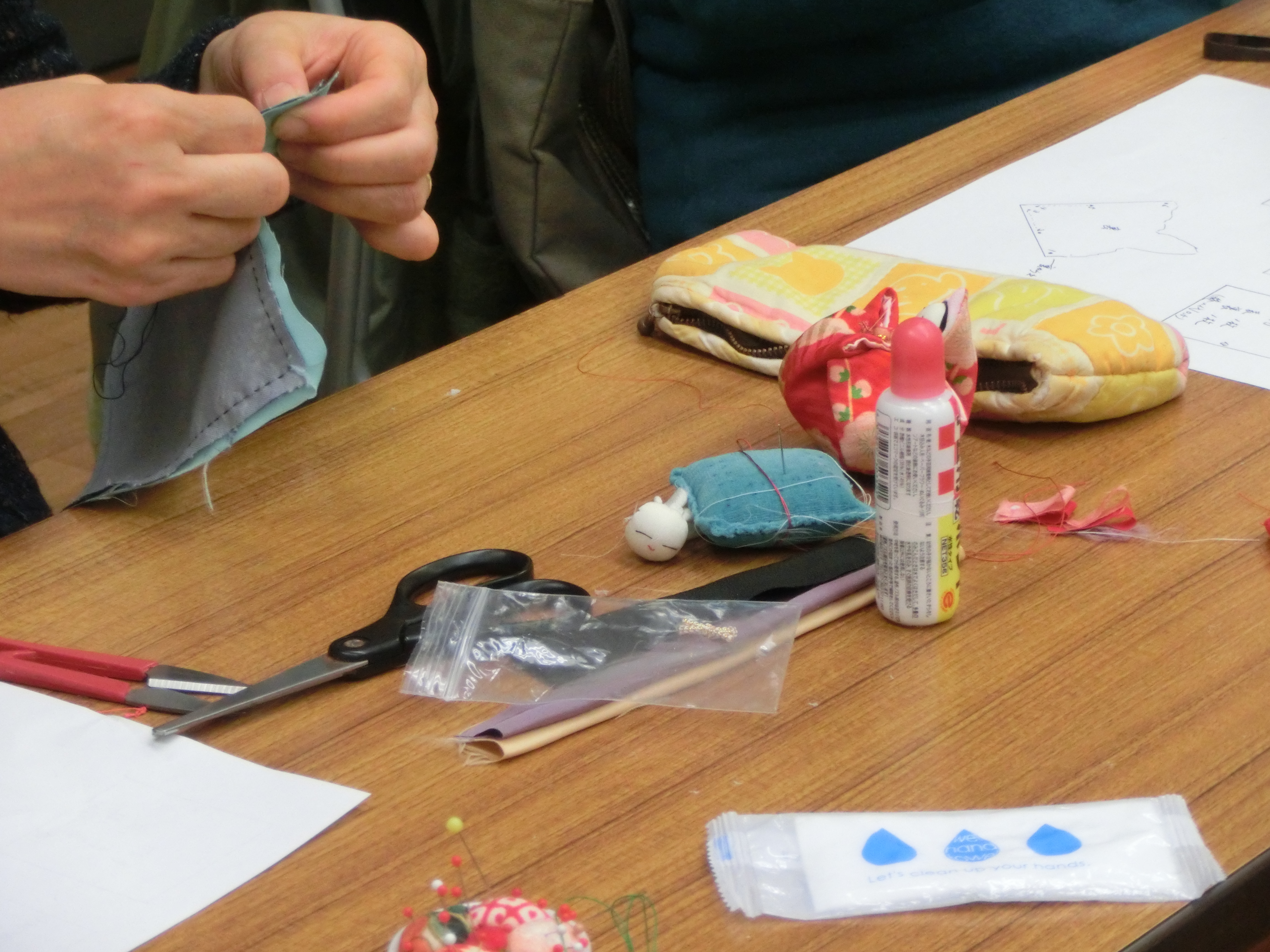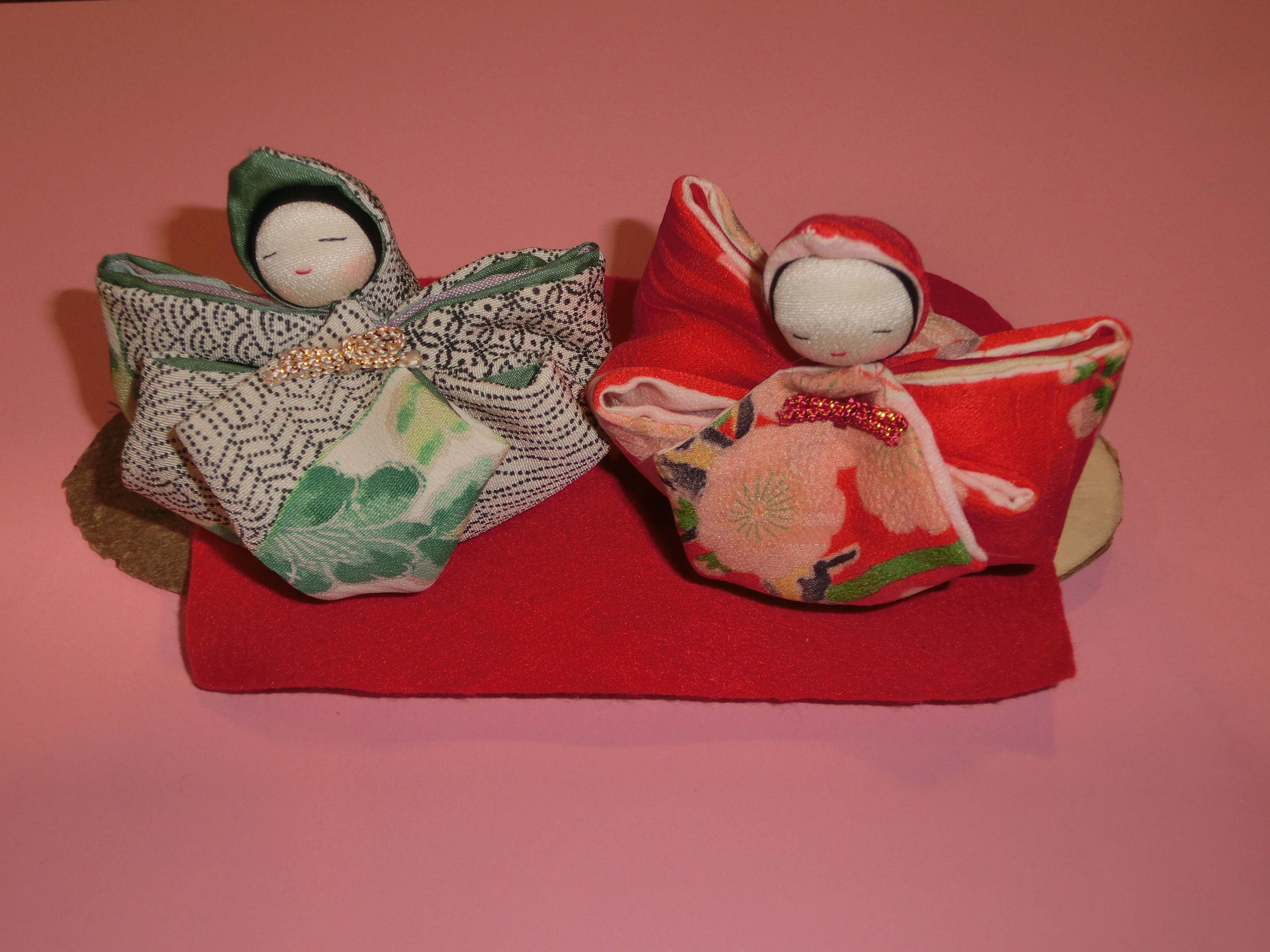 身近な「もの」を生かして みんなで手軽に楽しくエコ手芸 先生が準備してくださった古布のセット 同じ布からそれぞれ個性のある おひなさまが完成しました 一針一針 丁寧に 自分で作ったおひなさまは可愛も違います みなさん真剣に 時間のたつのも忘れて