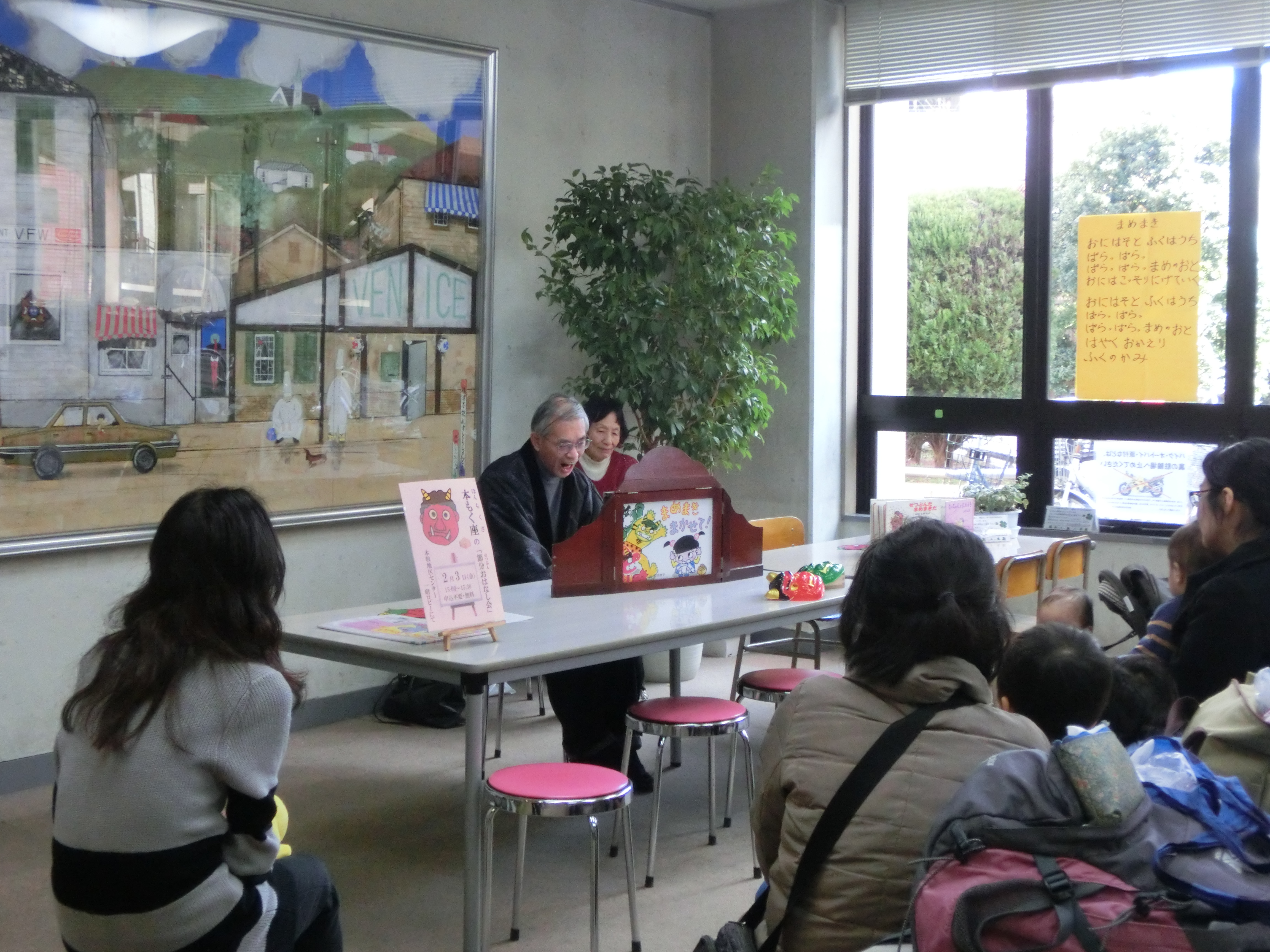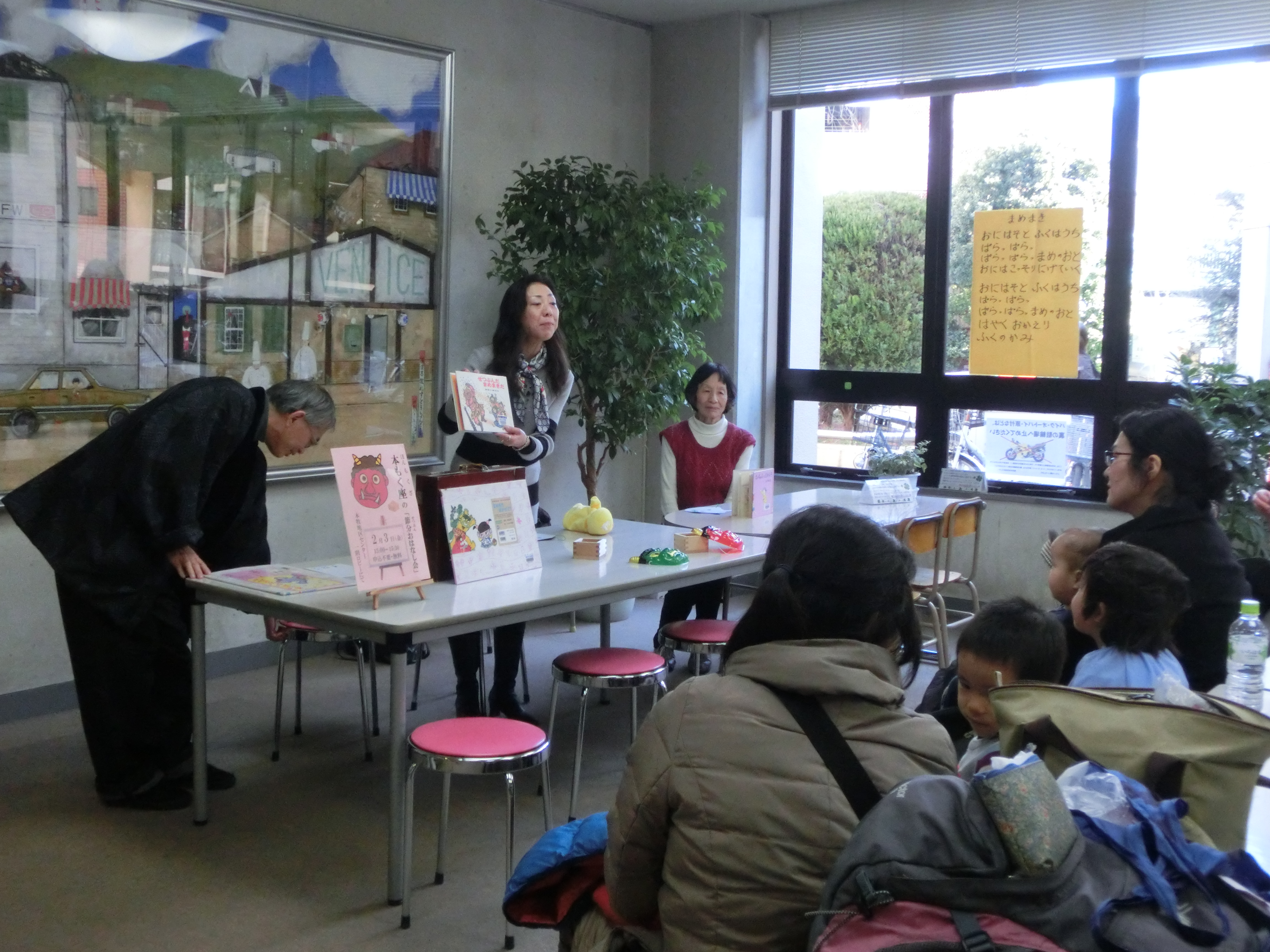 鬼はそと~ 福はうち~ 賑やかに始まりました 紙芝居や読み聞かせ 豆まきの後のお豆いくつ食べた? 次回は3月3日14:00~ おひなさま です