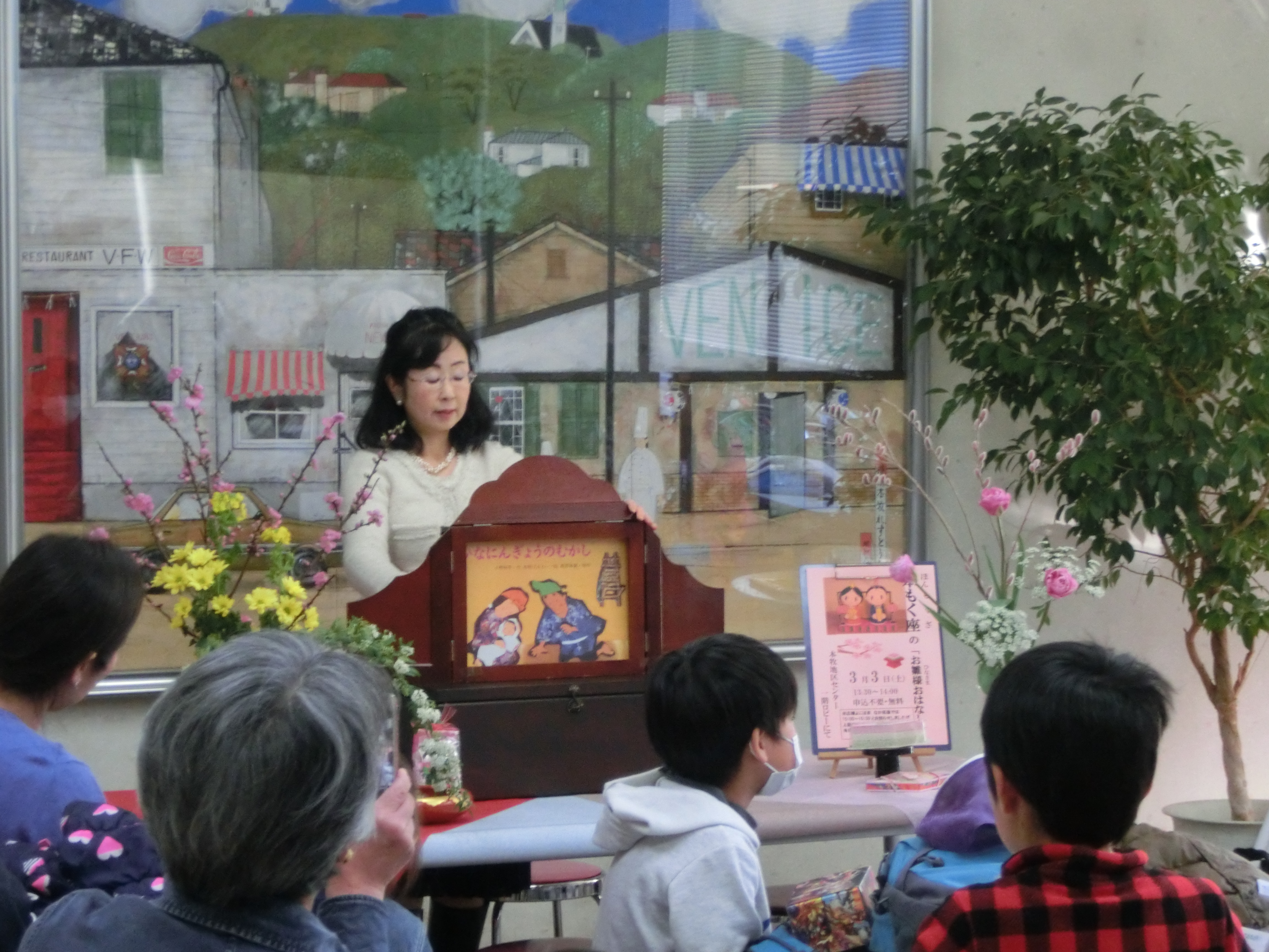 桃の節句の「おひなさま」にちなんだ お話し会 菜の花や桃の花 一足早く春の訪れを感じて