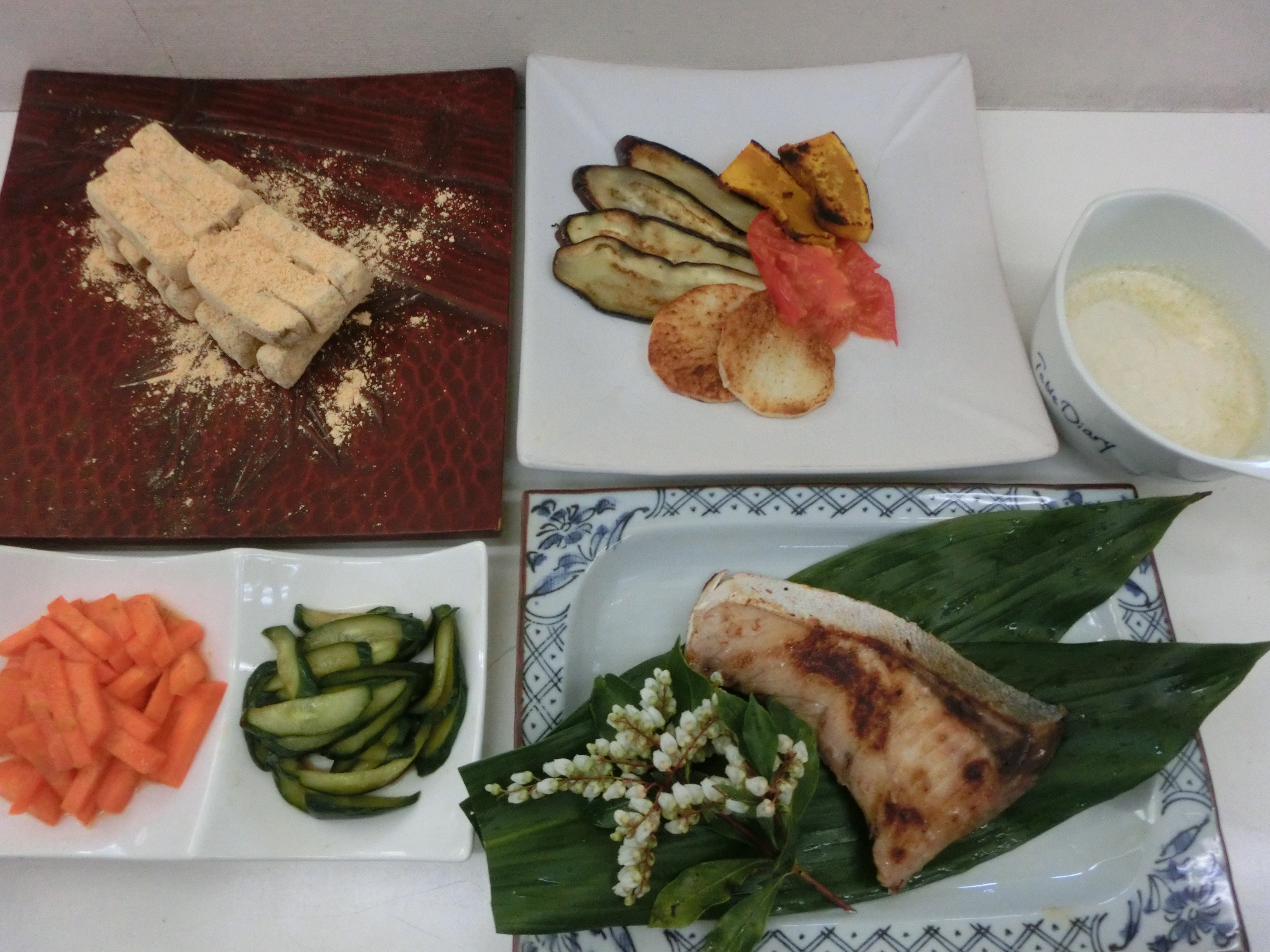 鰤(ぶり)の塩麹漬け 焼き野菜の甘酒マヨネーズ和え きゅうりのラー油漬け 人参の柚子胡椒漬け 酒粕きな粉棒 を作りました