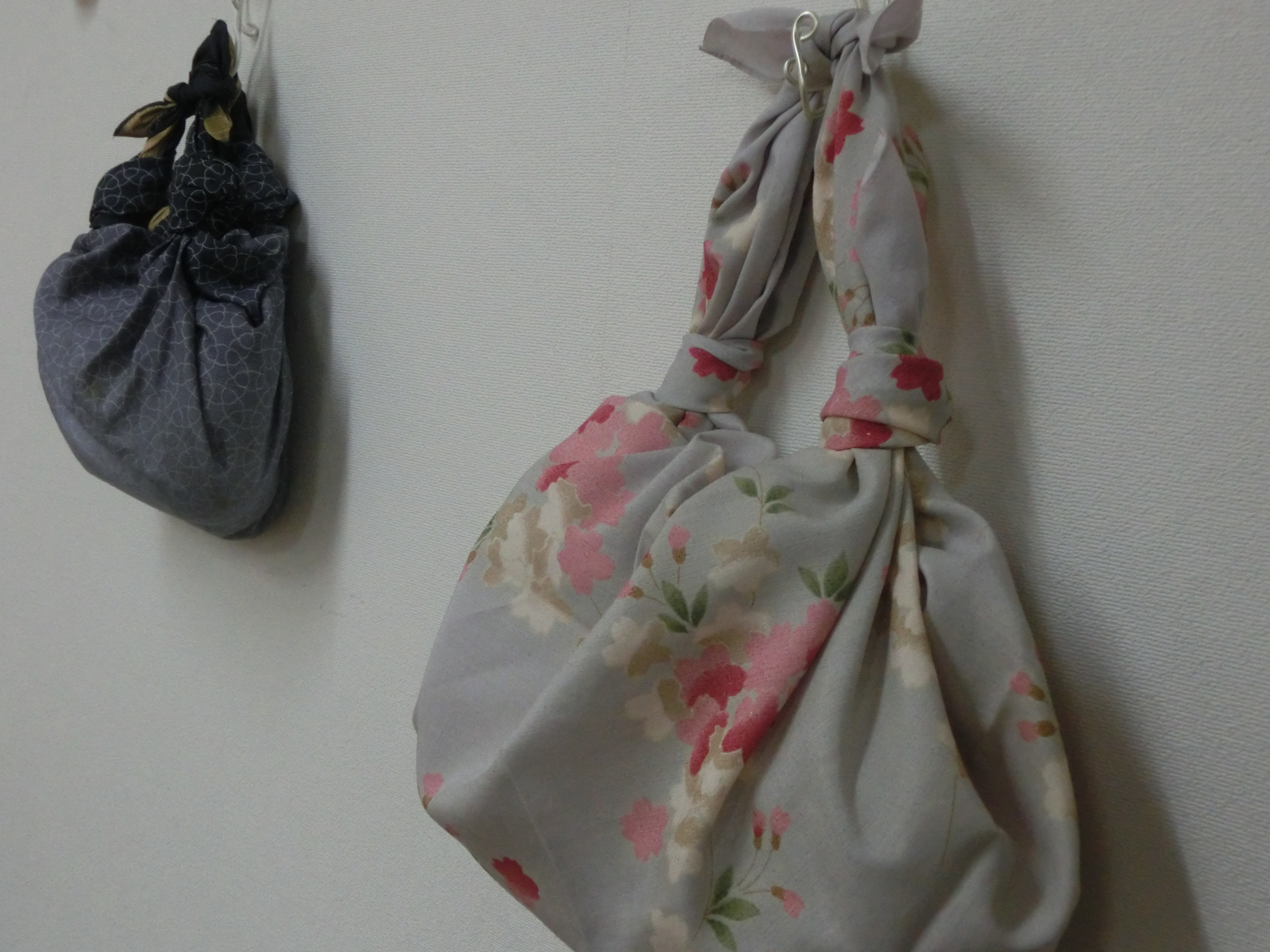 あっという間の90分 意外な使い方を知り 防災に役立てたい 不器用で心配でしたが 楽しく学ぶことが出来ました 手元に風呂敷! タンスに眠っている風呂敷活用します ためになりました 等々 感想を頂きました 大判風呂敷 最後はバックに仕上げて お持ち帰り