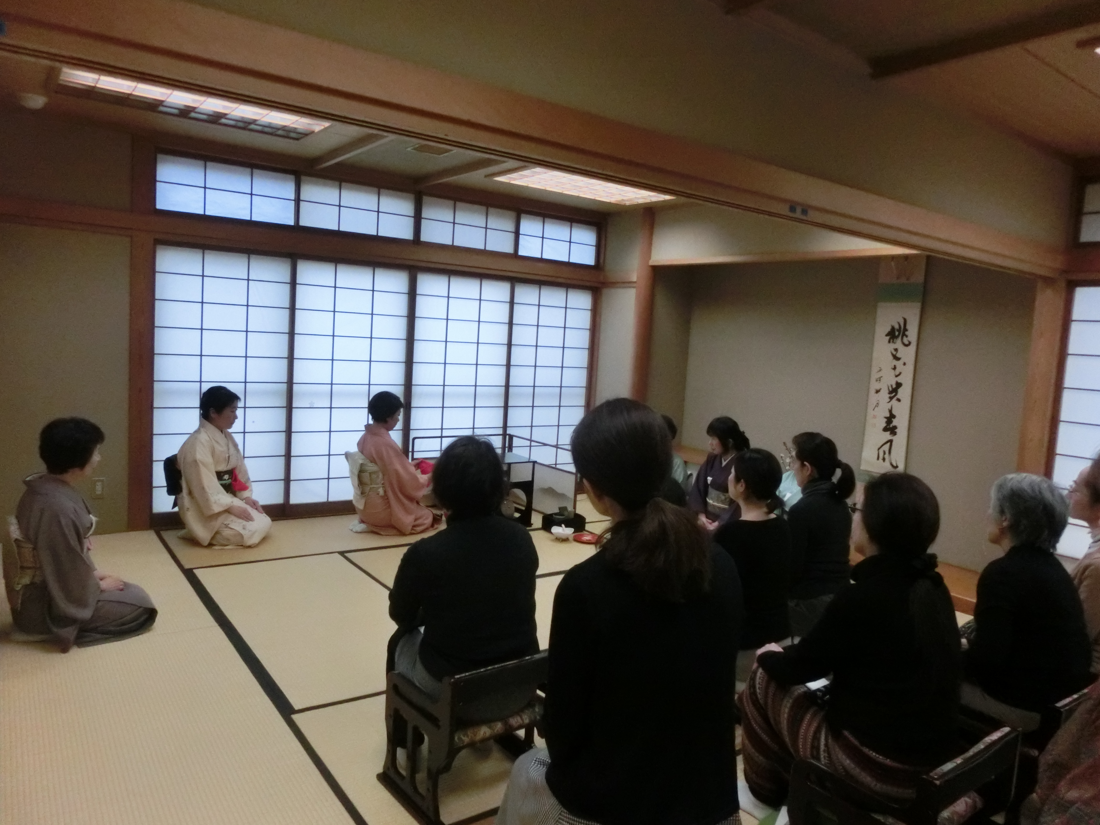 お茶席に招かれた際の基本作法を 体験頂きました 今回はプログラムに「濃茶」も盛り込み 本格的な茶会です 講座当日は ひな祭り 生菓子と干菓子 干菓子にはひなあられも添えられて 紅白の桃の花・菜の花・・・ 春はもう すぐ