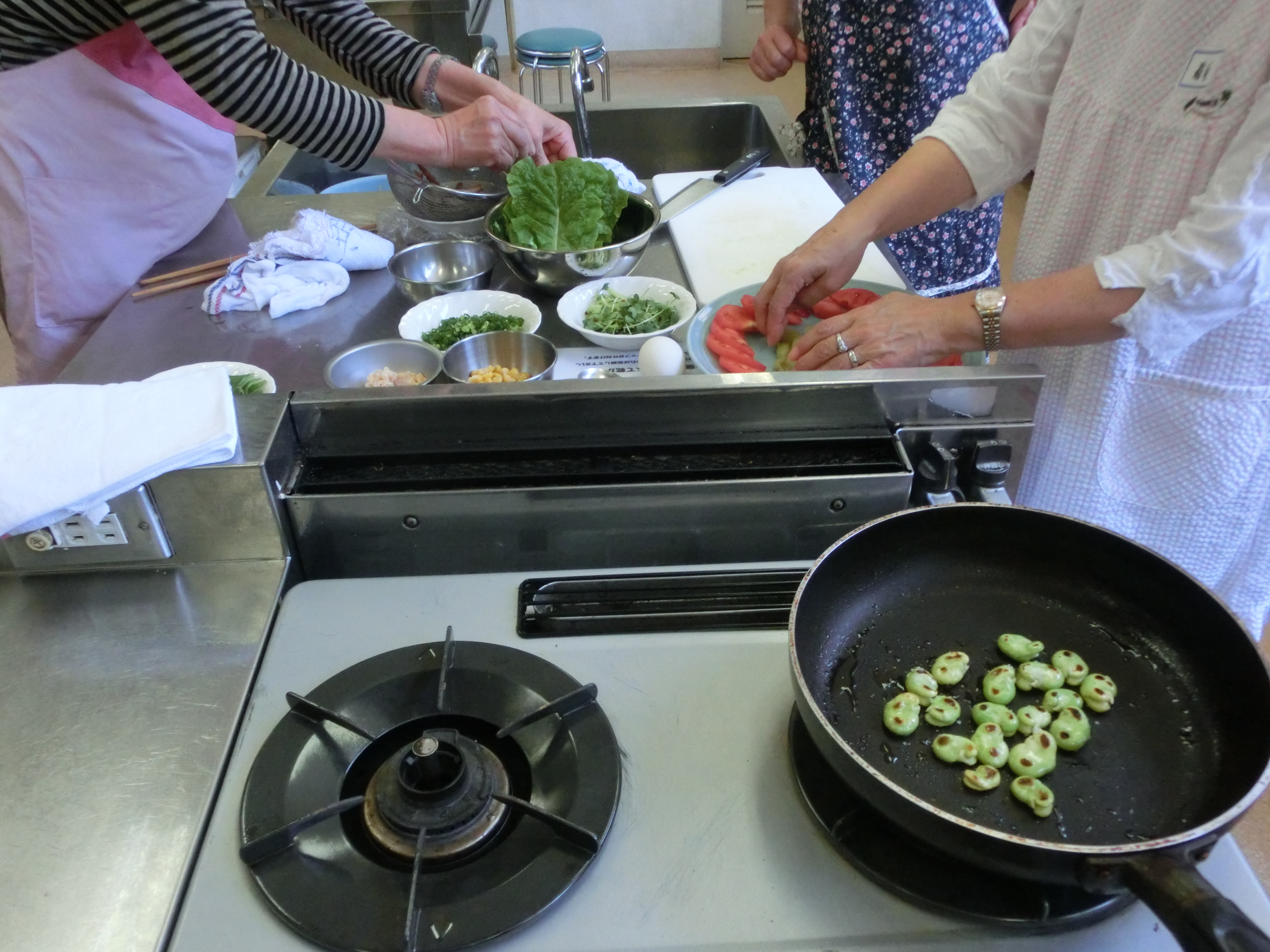 「先輩ママ自慢のメニュー」 ・新ごぼうのチップス ・茄子とシーチキンのサラダ ・ベトナム風春巻き(スティック) ・ちくわロール巻き ・空豆ごはん ・トマトと卵のスープ を作りました 少人数で和気あいあいと・・・ 手軽に作れて 彩 美しく 色々なアイデアが聞けて しかも とびっきり美味しい!! また参加したい と感想を頂きました
