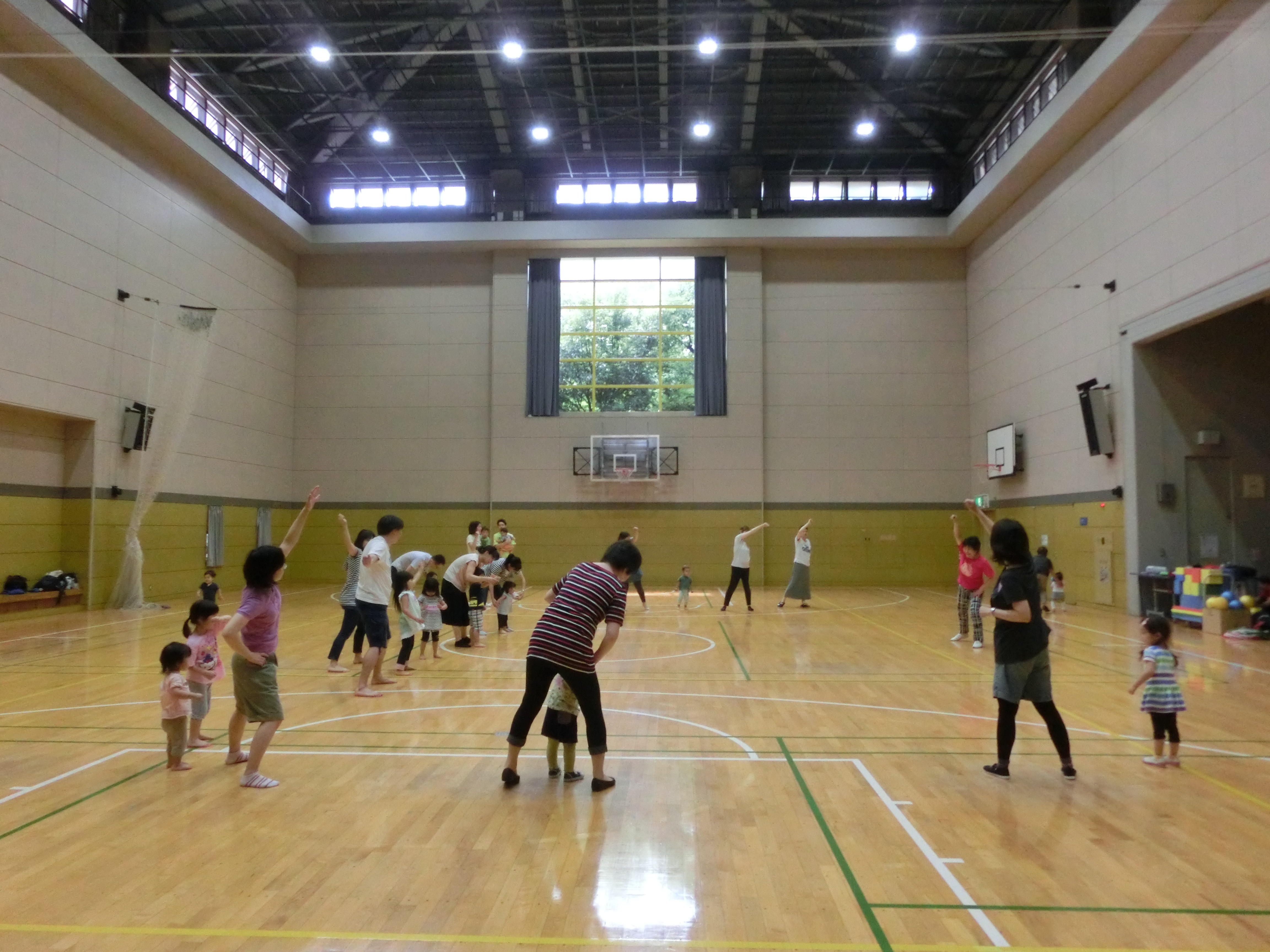 6月6日(土) 今日の親子体操プラスは 久々の渡井れい先生 窓から爽やかな風が入る体育室で まずはストレッチから・・・ ダンスダンスでのりのり