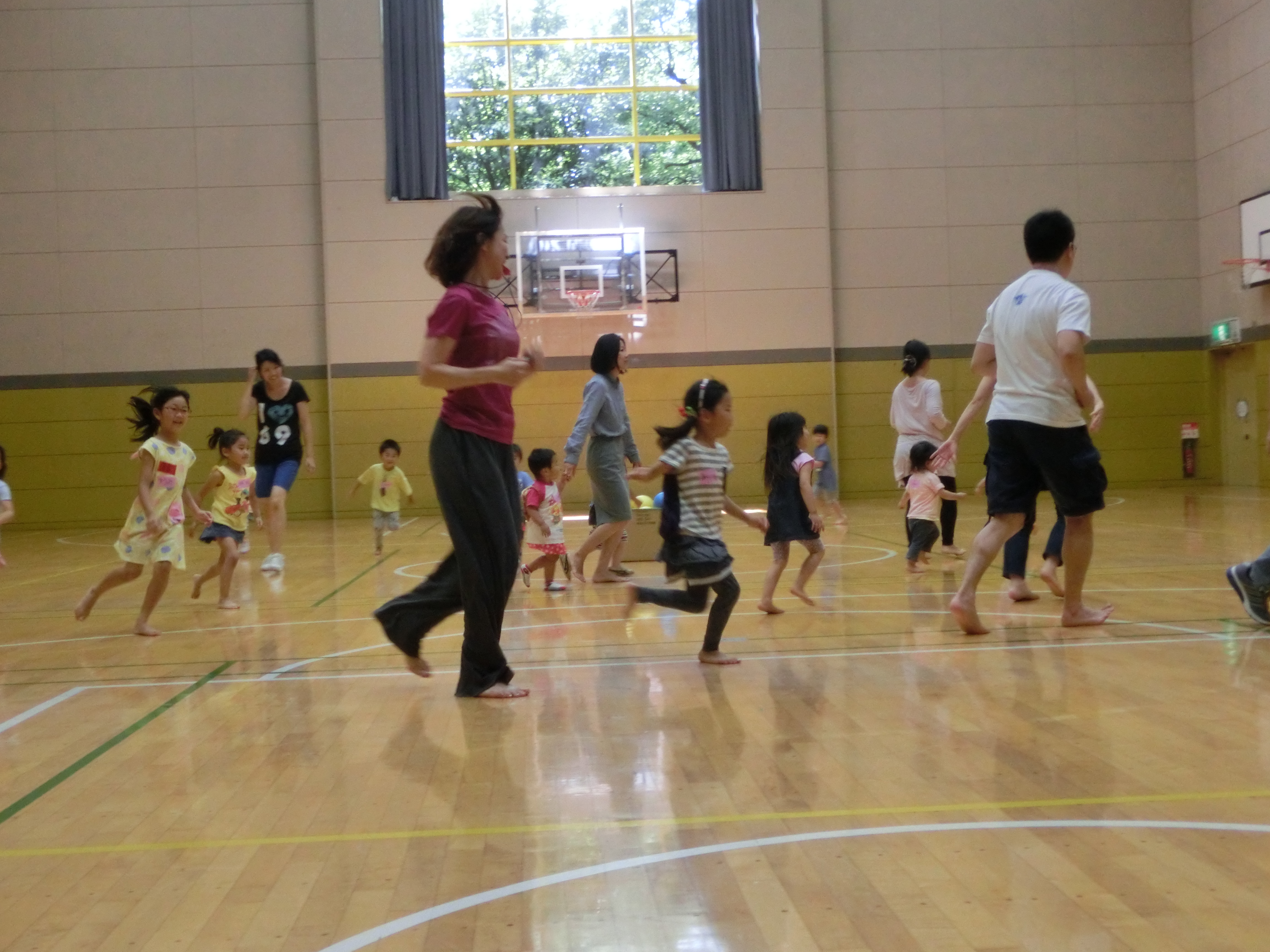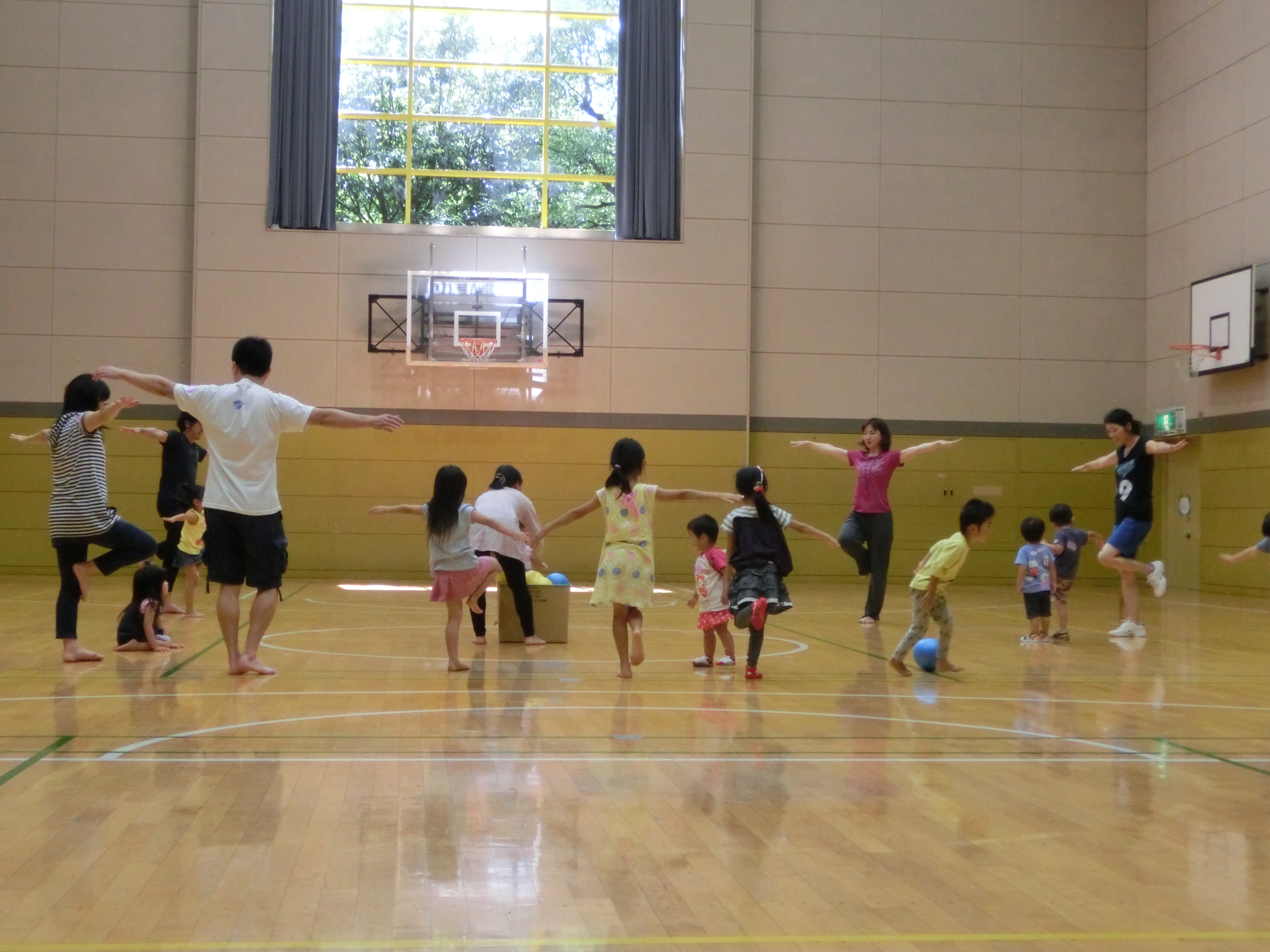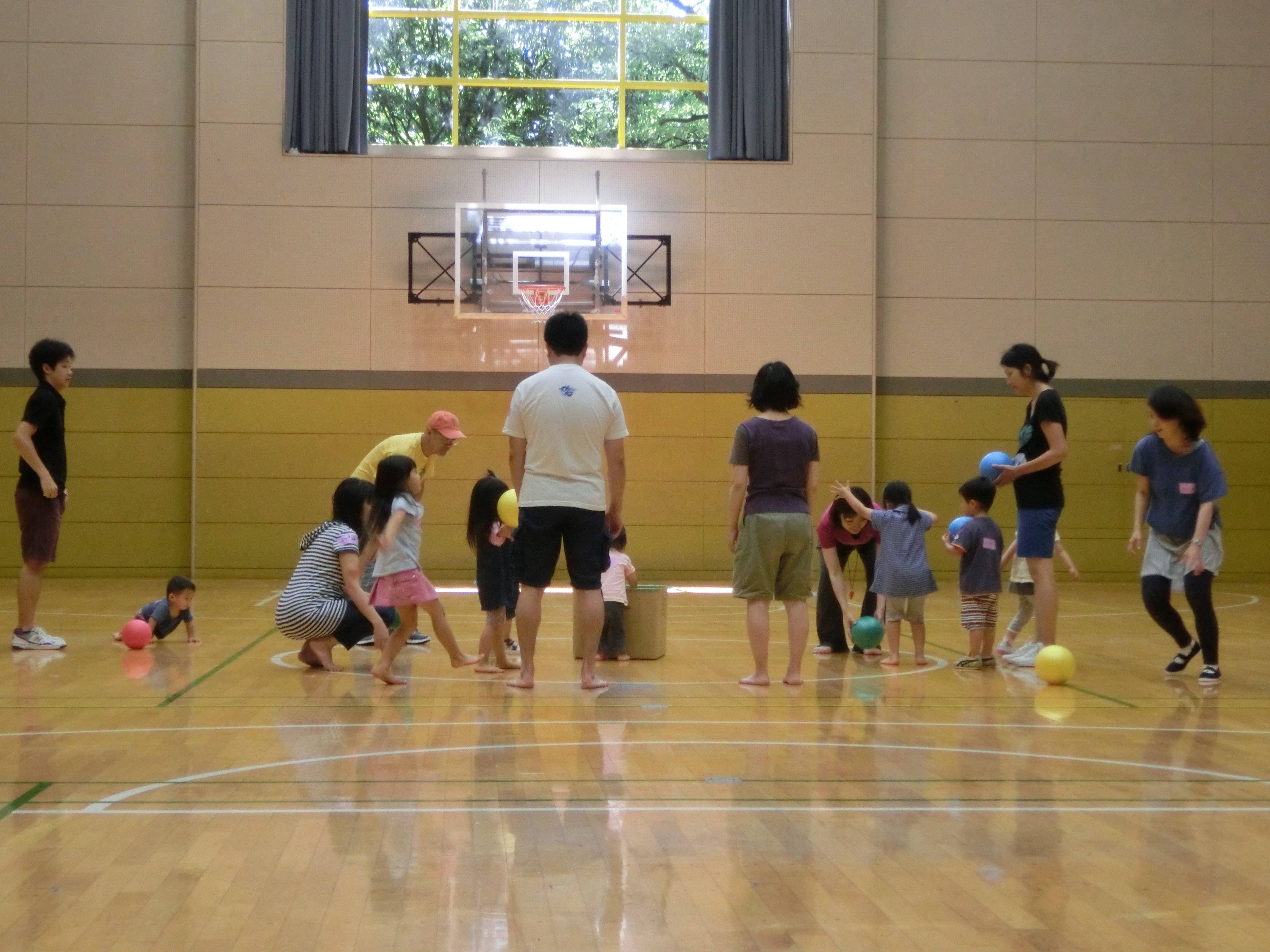 梅雨晴れの昼下がり 今回も、みんな元気に集合!! ボールを箱にポーン かけっこしながら 史桜先生の合図で アンパンマンのポーズや 山のポーズ・飛行機のポーズ みんなでワイワイ 楽しい1時間でした