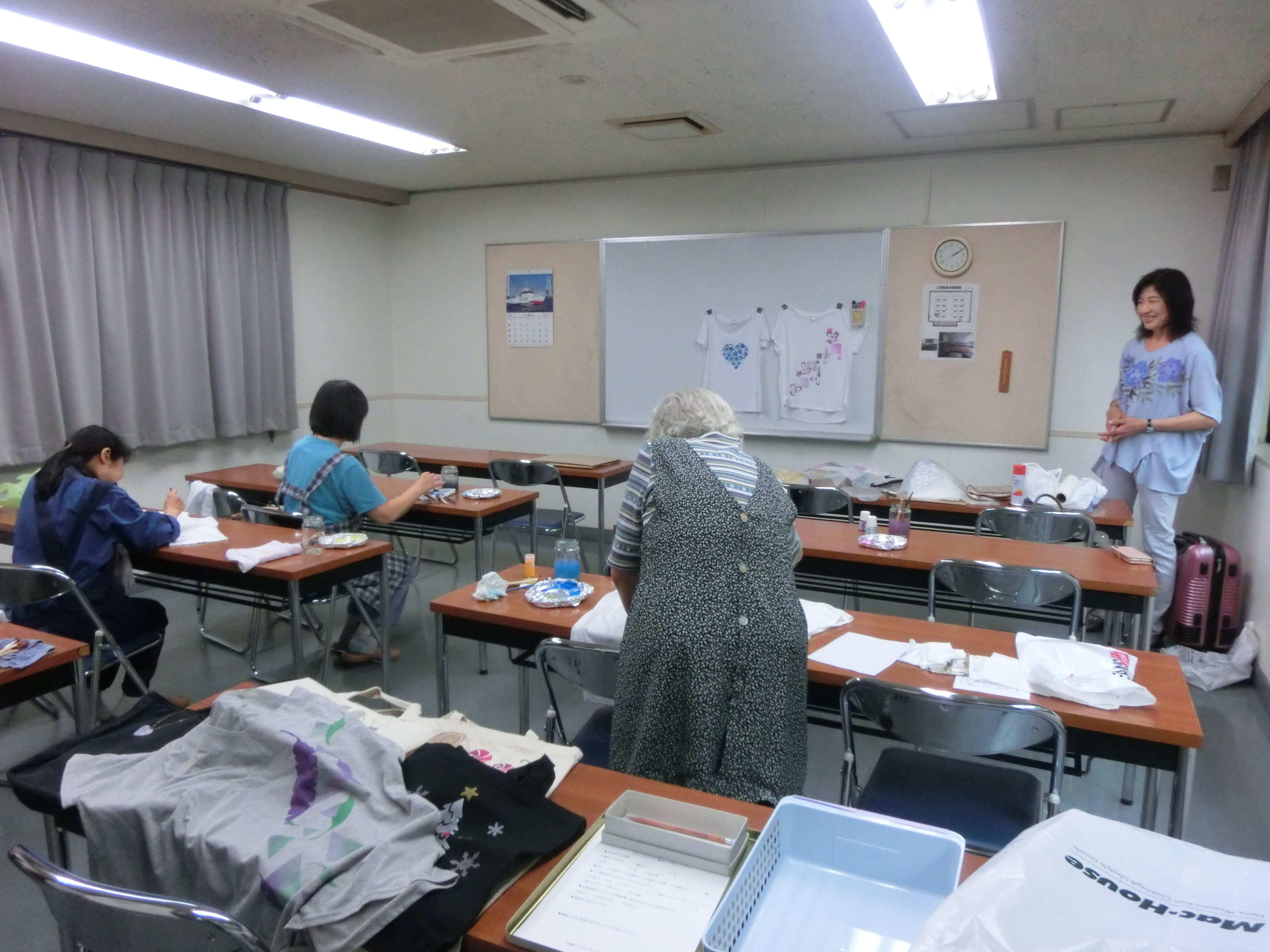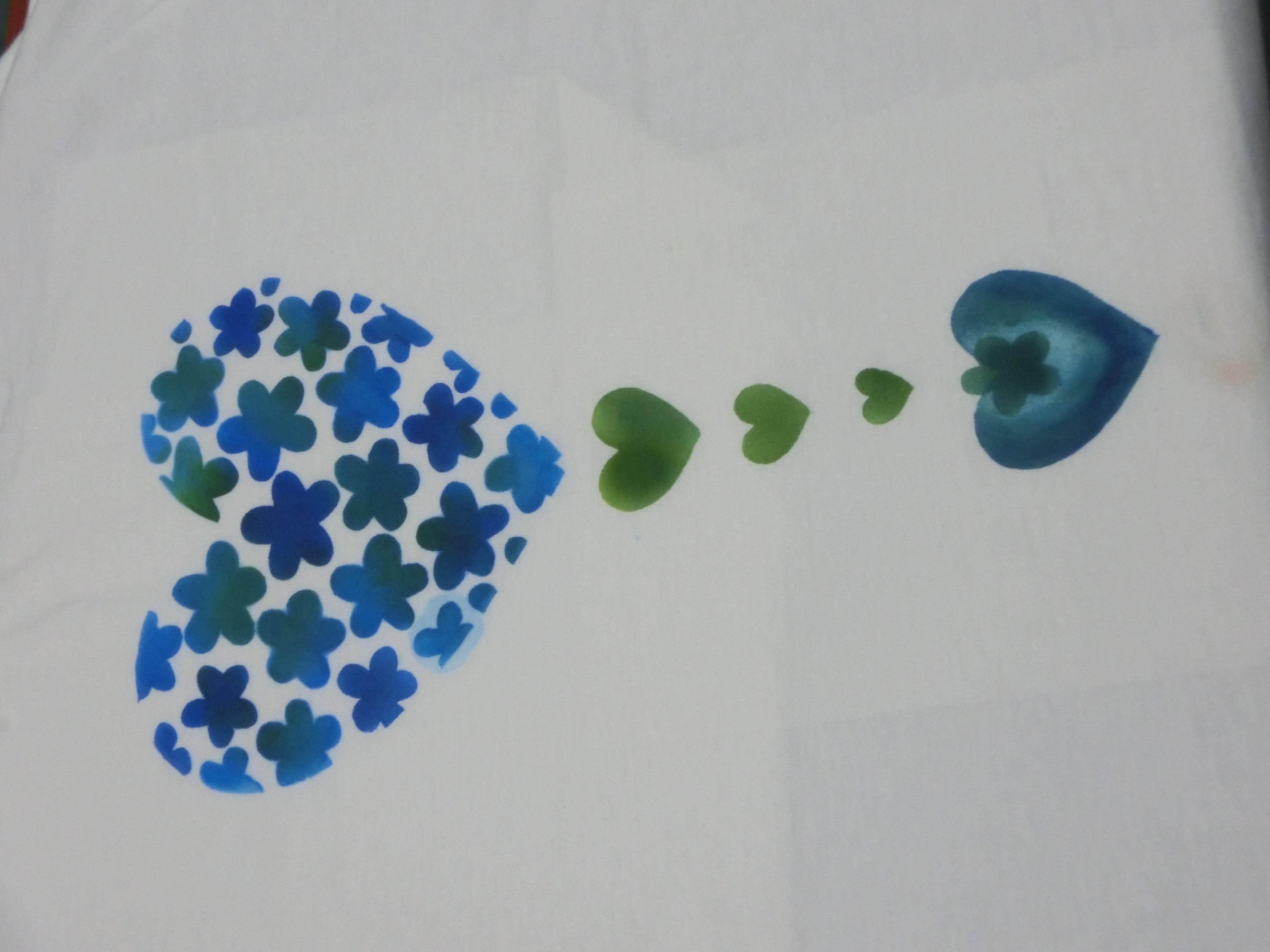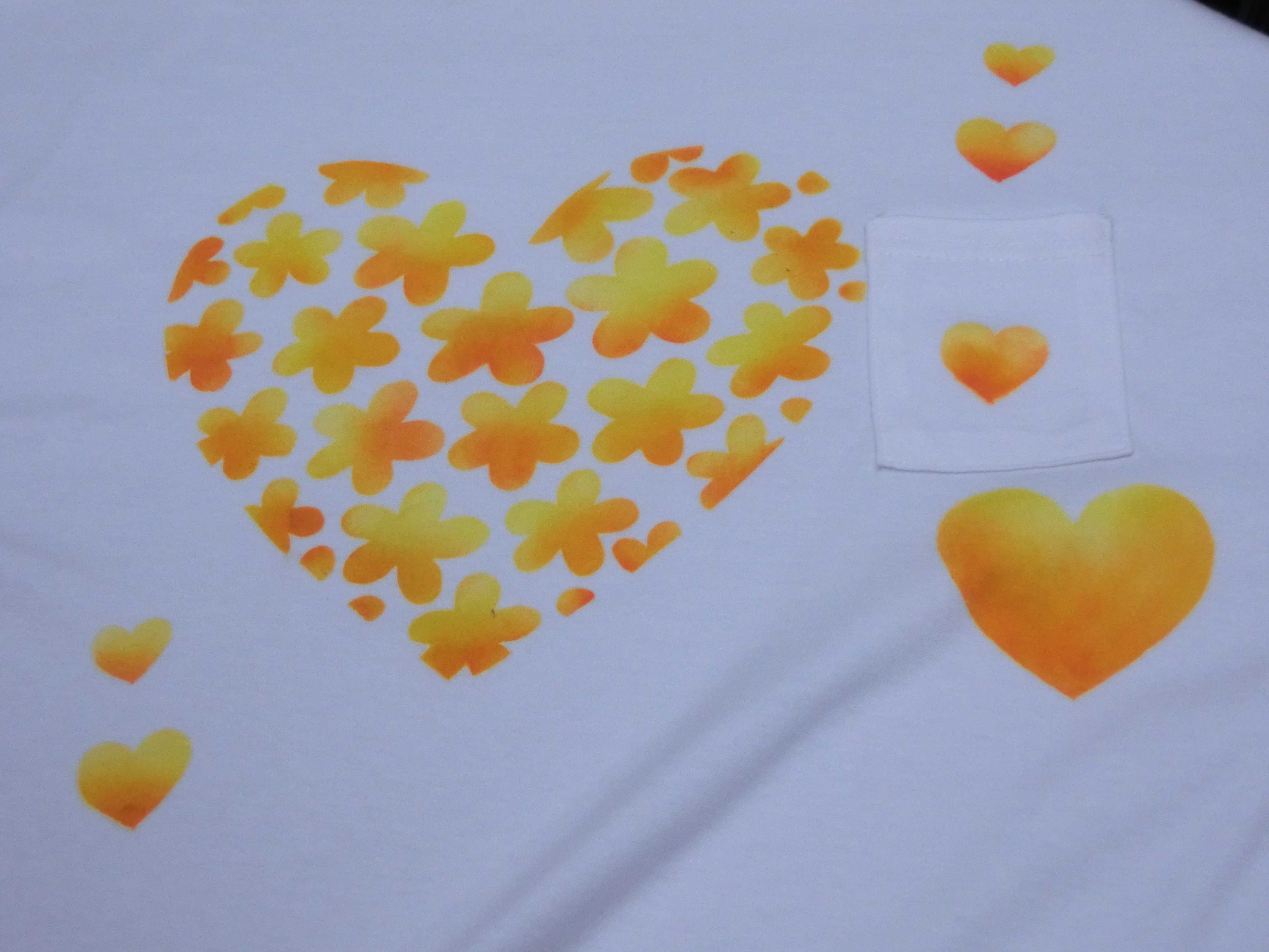 捨ててしまおうかと思ったTシャツ もう一度 華やかに蘇らせて 「お気に入りのTシャツ」しみがついて 着られなかったTシャツ・・・ 気になるシミの上に上手にステンシル 見事 隠れて 素敵なTシャツに