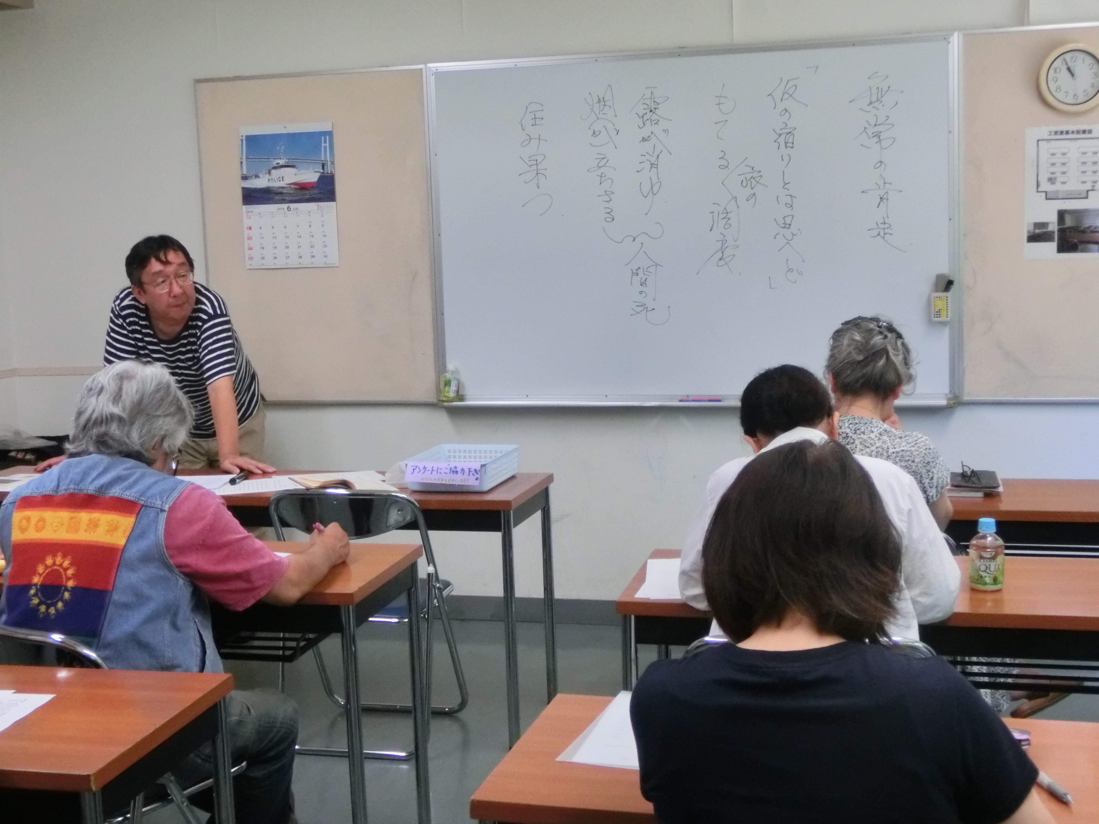 皆さん熱心に先生の話に耳を傾け・・・ 人として生きていく事を 昔の人の言葉から教わる事を 楽しく勉強できました とても理解しやすかったです 徒然草の背景が分かり 古典に興味がわいてきた 等々 感想を頂きました