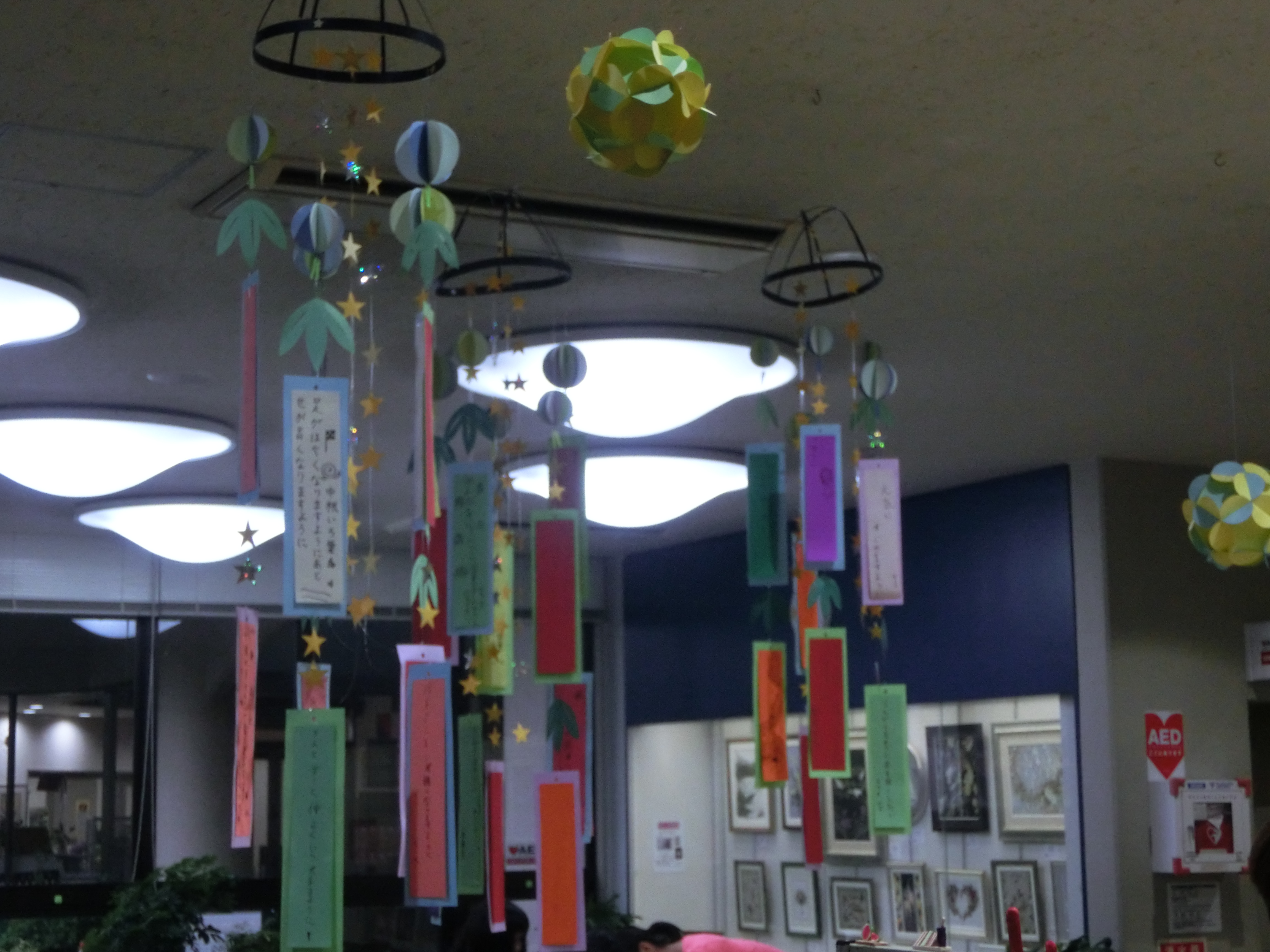 ピアニストになれますように 一人でどこにでも行けますように テニスが上手くなりますように 家族が元気に過ごせますように ウニが簡単に(値段が安く) 食べられるようになりますように あしがはやくなりますように 夏休みが楽しく過ごせますように すいえいがじょうずになりますように 344枚の沢山の願い事がかかれた短冊 7/8まで館内に飾り 本牧神社でお焚き上げをお願いします みんなの願いが叶いますように☆