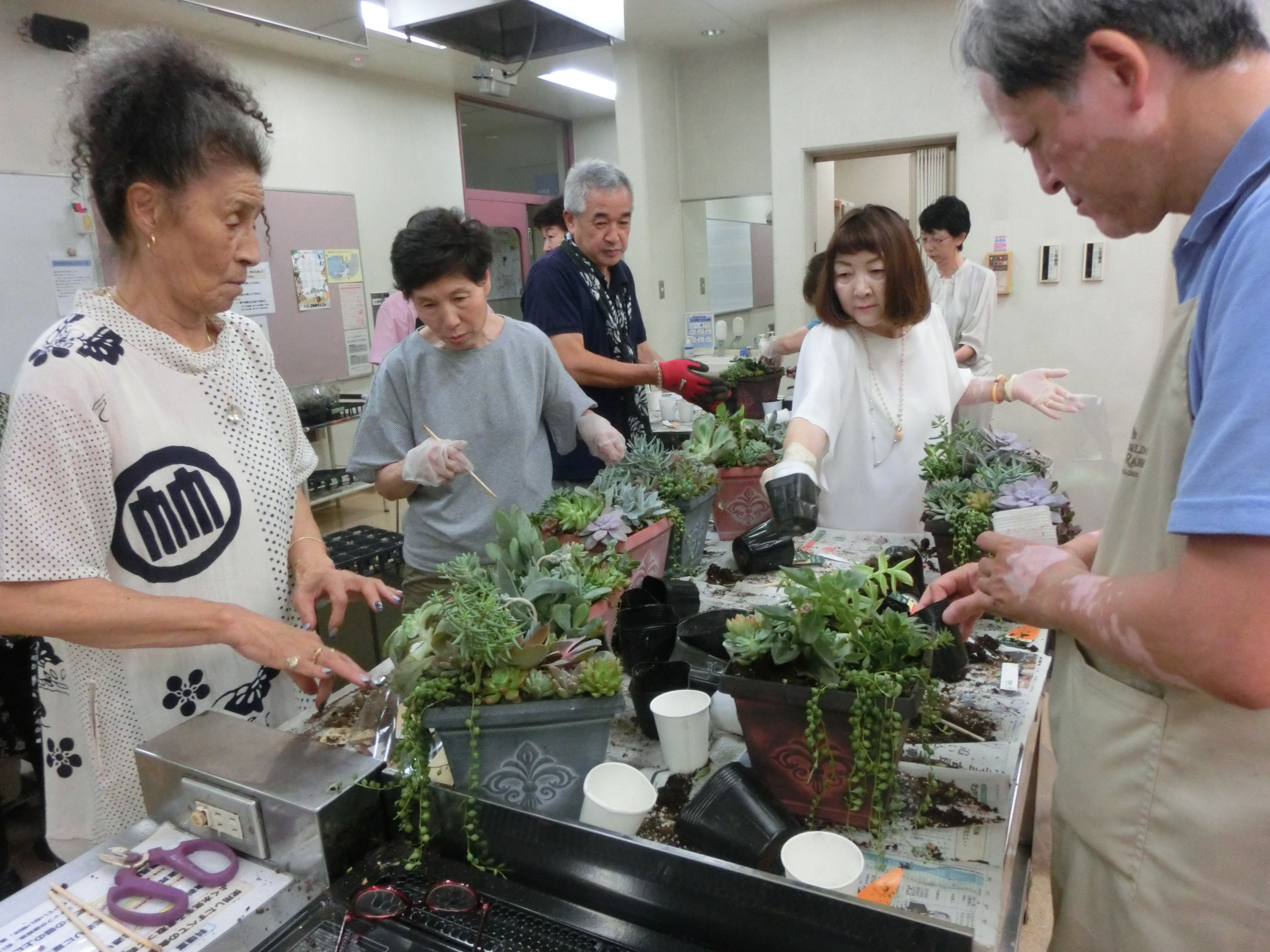 今回も人気の寄せ植え 夏も元気で世話要らずの多肉植物 どれを選ぶか 選ぶ迷いも楽しく ワイワイと賑やかに 素敵な寄せ植えが完成しました
