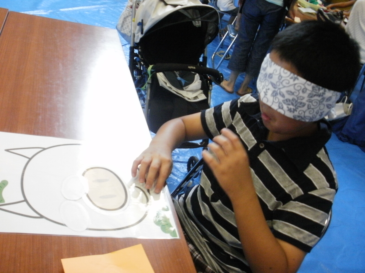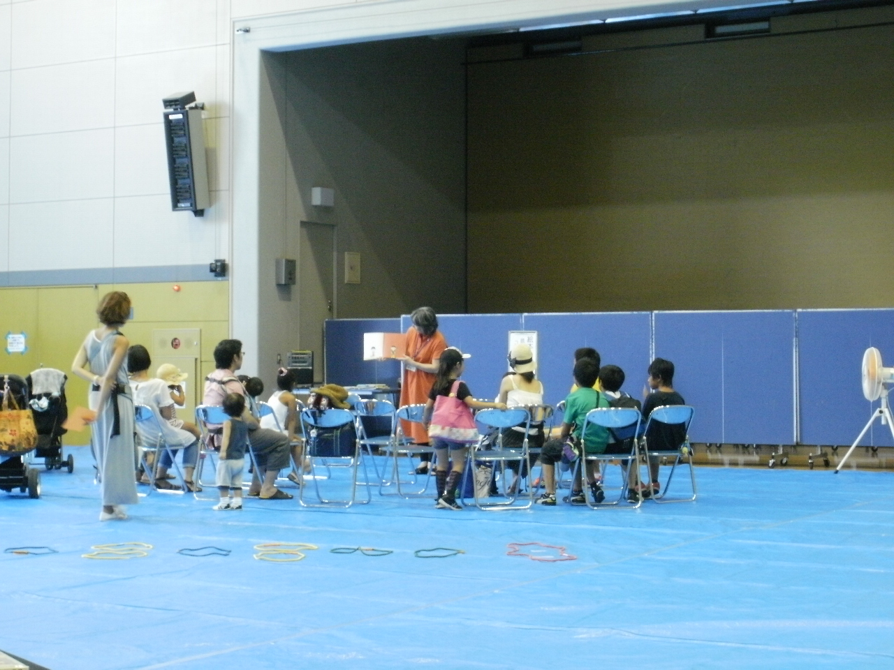 暑い!暑い!暑さもピークの午後2時からの開催にも関わらず、127名の来館者をお迎えしました。 スタンプラリー形式の縁日で、絵本の読み聞かせに参加すると、1スタンプ!福笑いを完成させると、1スタンプ! 玉投げ、ケンケンパ、折り紙とすべての遊びをクリアーして5スタンプ集めると、綿あめゲットです。 綿あめがいっぱいほしくって、すべての遊びを3回もまわってしまう強者もいましたよ!