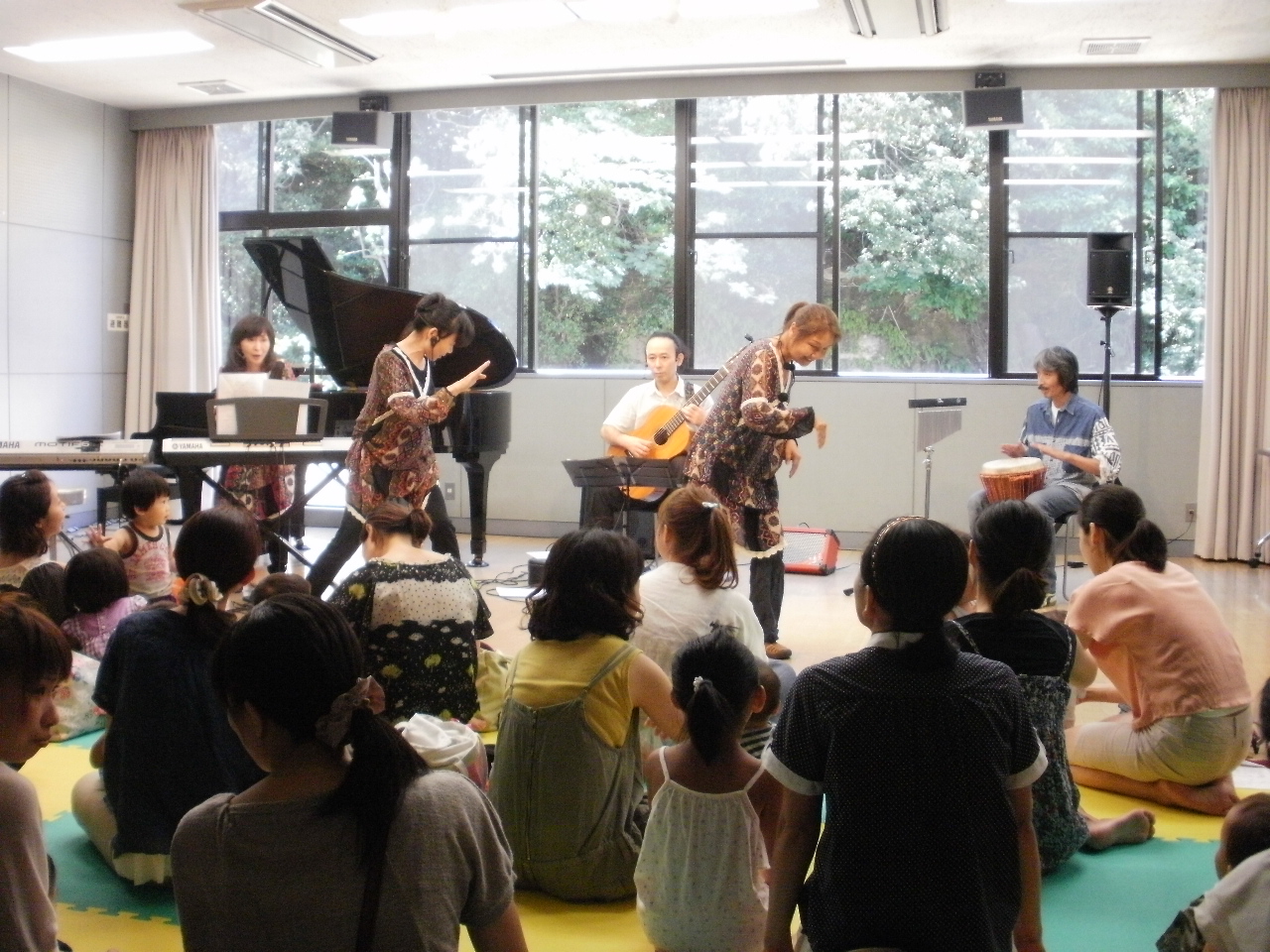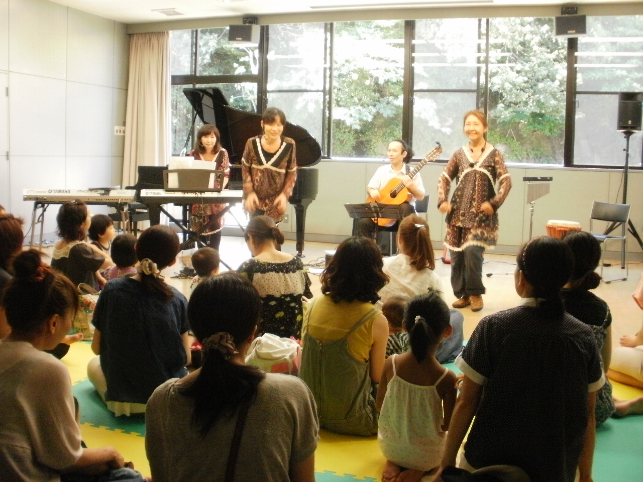 「どろなわならでは」の皆さんのパフォーマンスを、0歳の赤ちゃんも5歳の坊やも、お母さんも.....参加したみんなが、身体全体で感じて楽しみました。 絵本の読み聞かせあり・・ 手遊びあり・・・・ 逆さ言葉遊びあり・・・ トーンチャイムを鳴らしたり・・ あっという間の60分でした