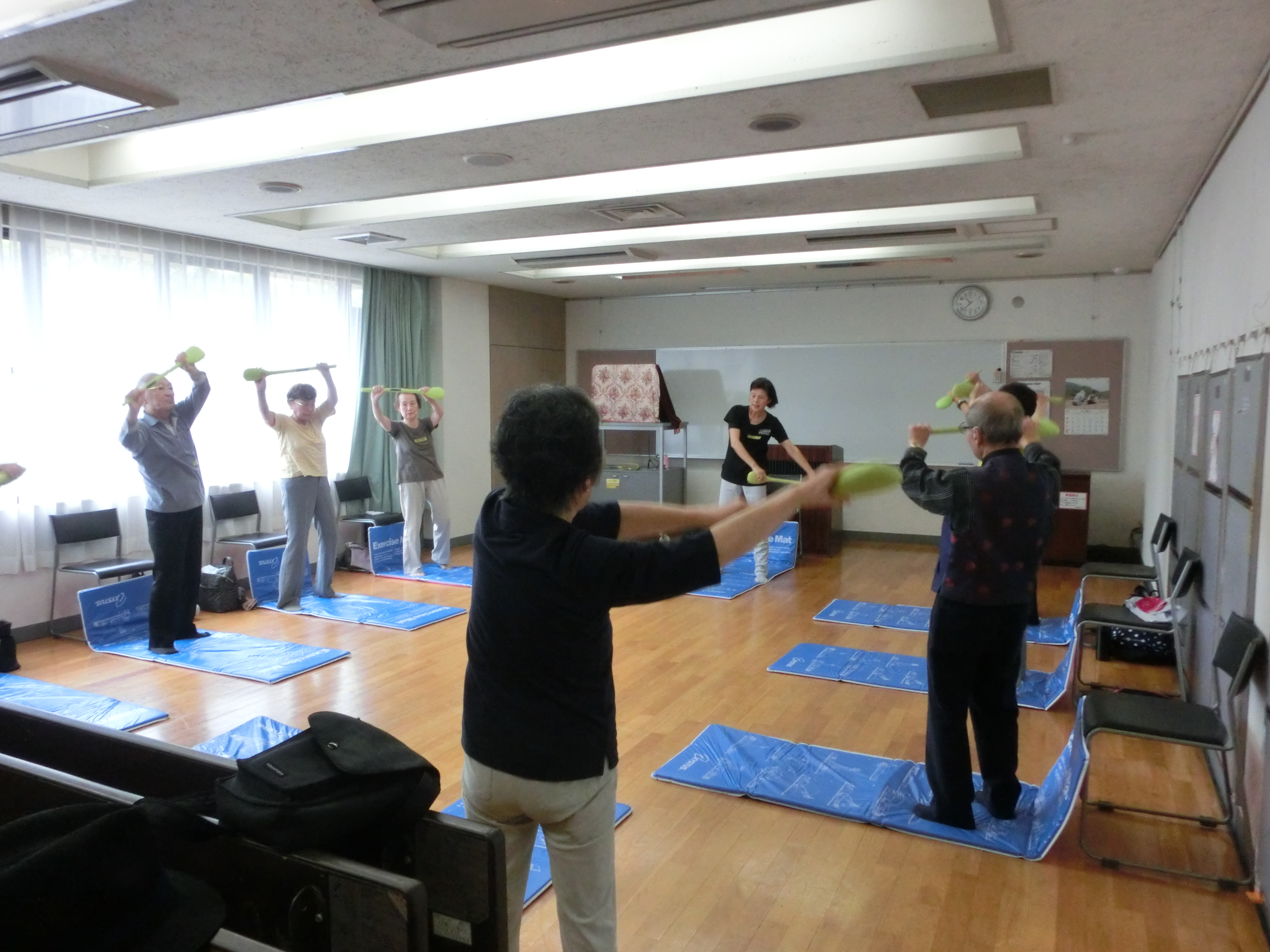 椅子に腰かけて じっくり身体を伸ばした後は 立ち上がってパドルでトントン 使った筋肉を刺激します(ほぐします) 無理なく 楽しくがモットーです