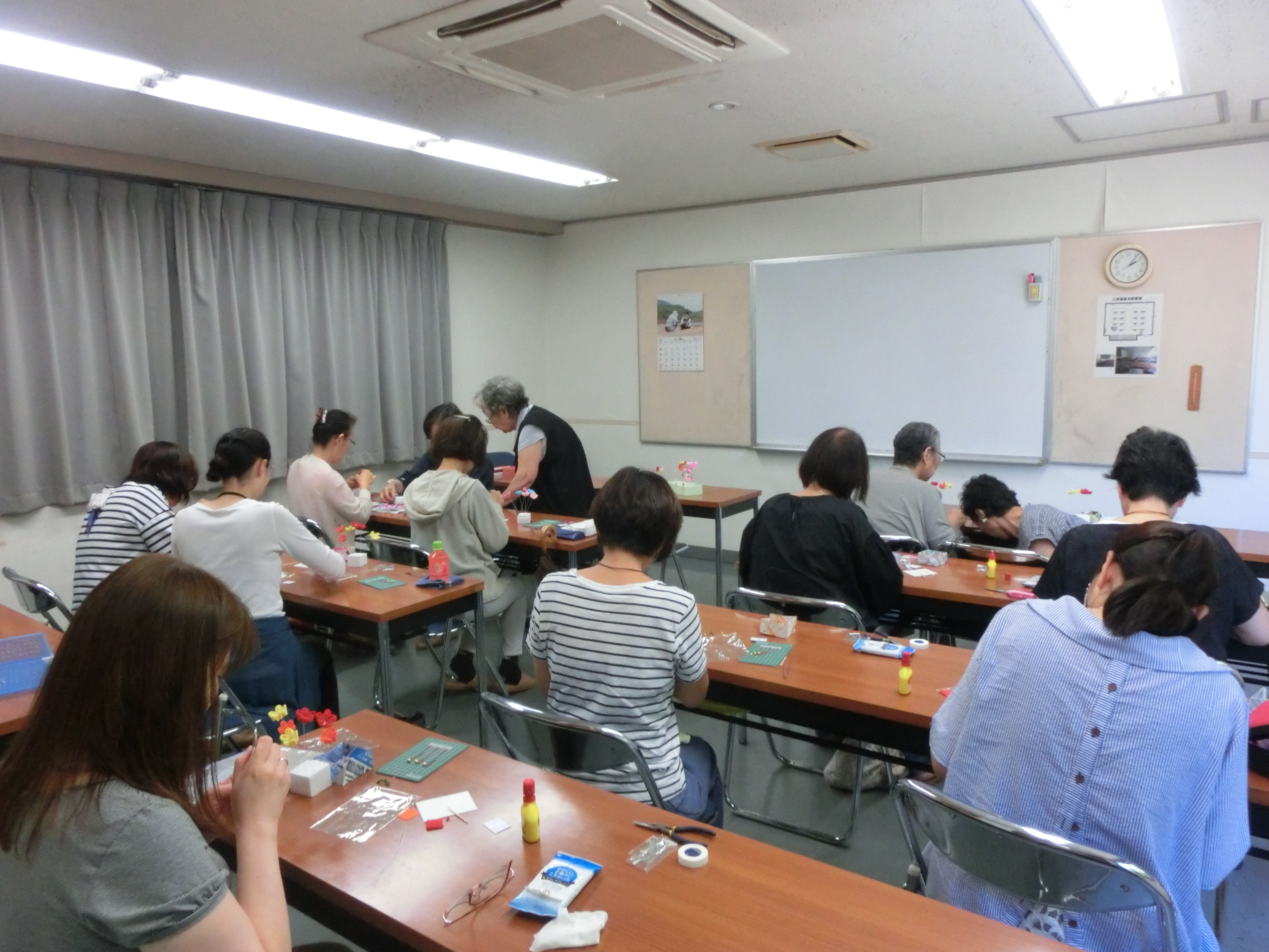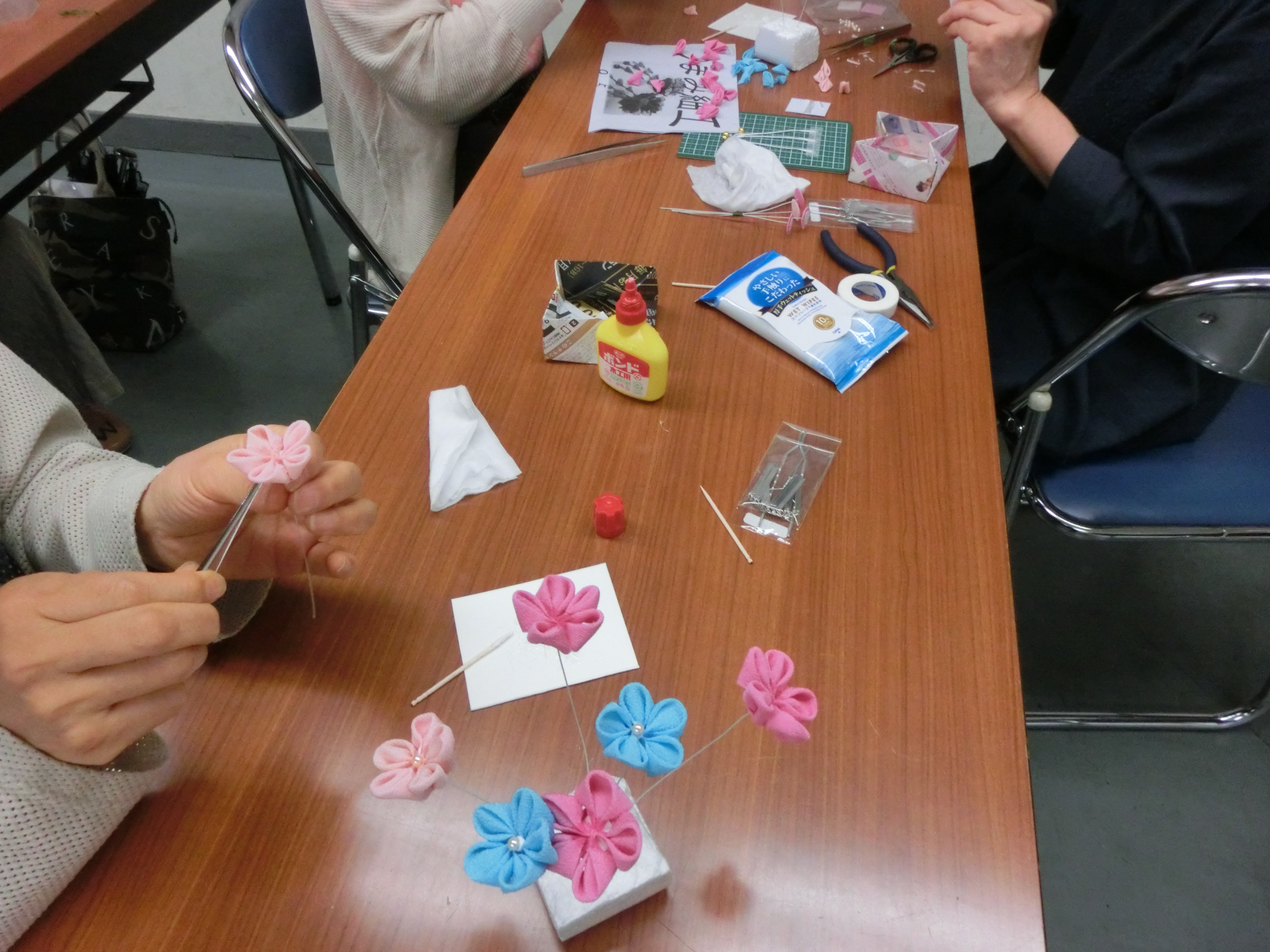 七五三や成人式に合わせて作ってみたくて と参加者の方々 今回はかんざしに仕上げます 細かい作業を熱心に黙々と
