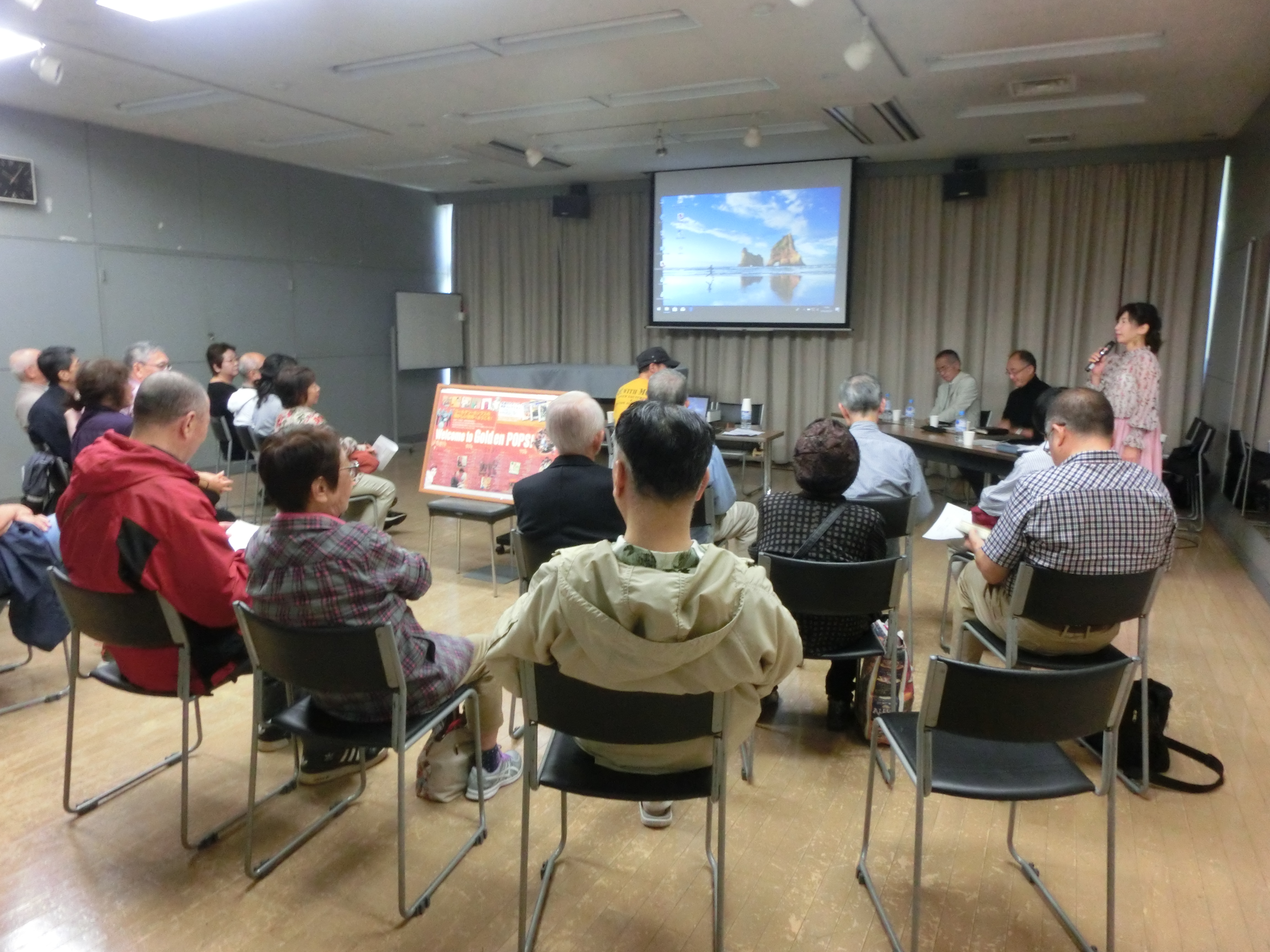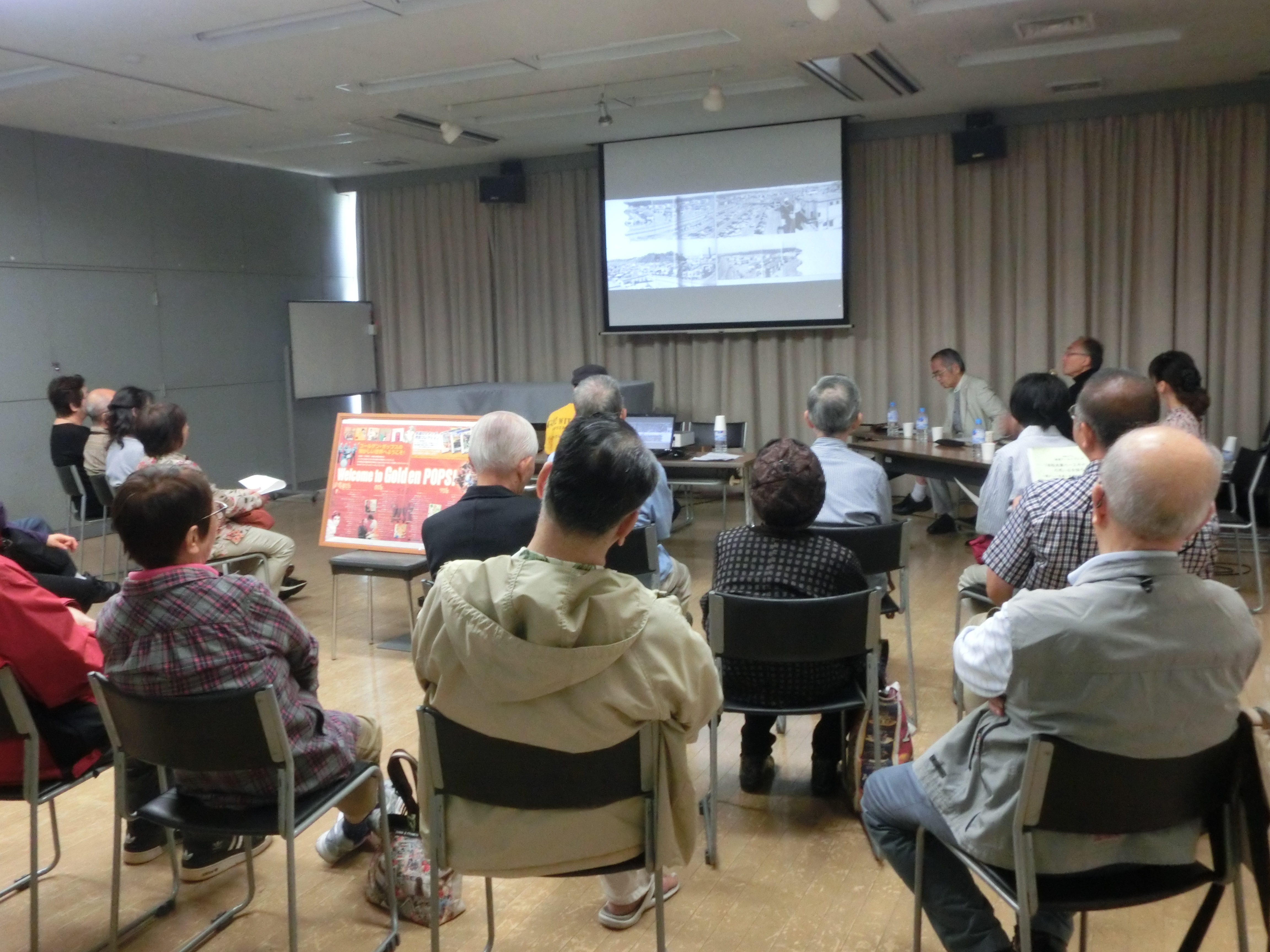 会場を音楽室に。時間帯も変更。 少し雰囲気を変えて実施の第2弾 音楽を聴きながら プロジェクターで投影される 懐かしの映像 参加者の感想 音楽もタイムリーで映像とあっていて 良かった 懐かしい写真 よくありましたね 感動です 写真の場所の現在が何処にあるか 知りたい とのリクエストも頂きました