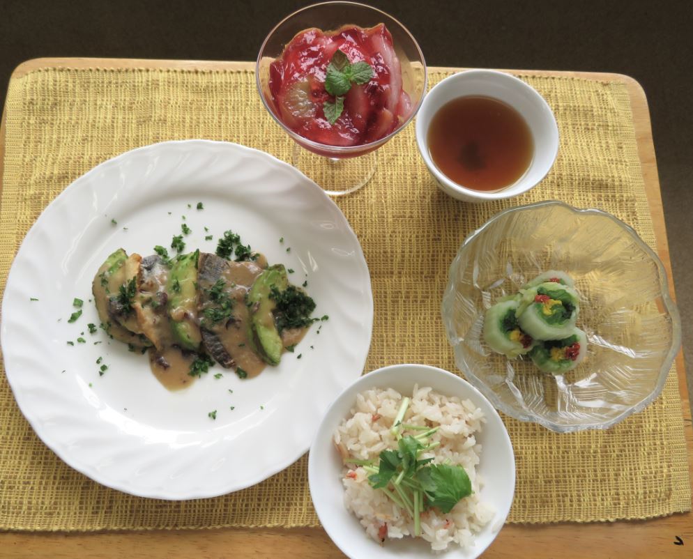 ごはん(白米)・冬瓜と野菜たっぷりわかめ入り澄まし汁