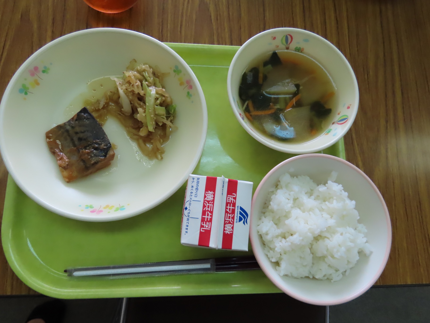 鯖の味噌煮・キャベツともやしの胡麻醤油和え・牛乳