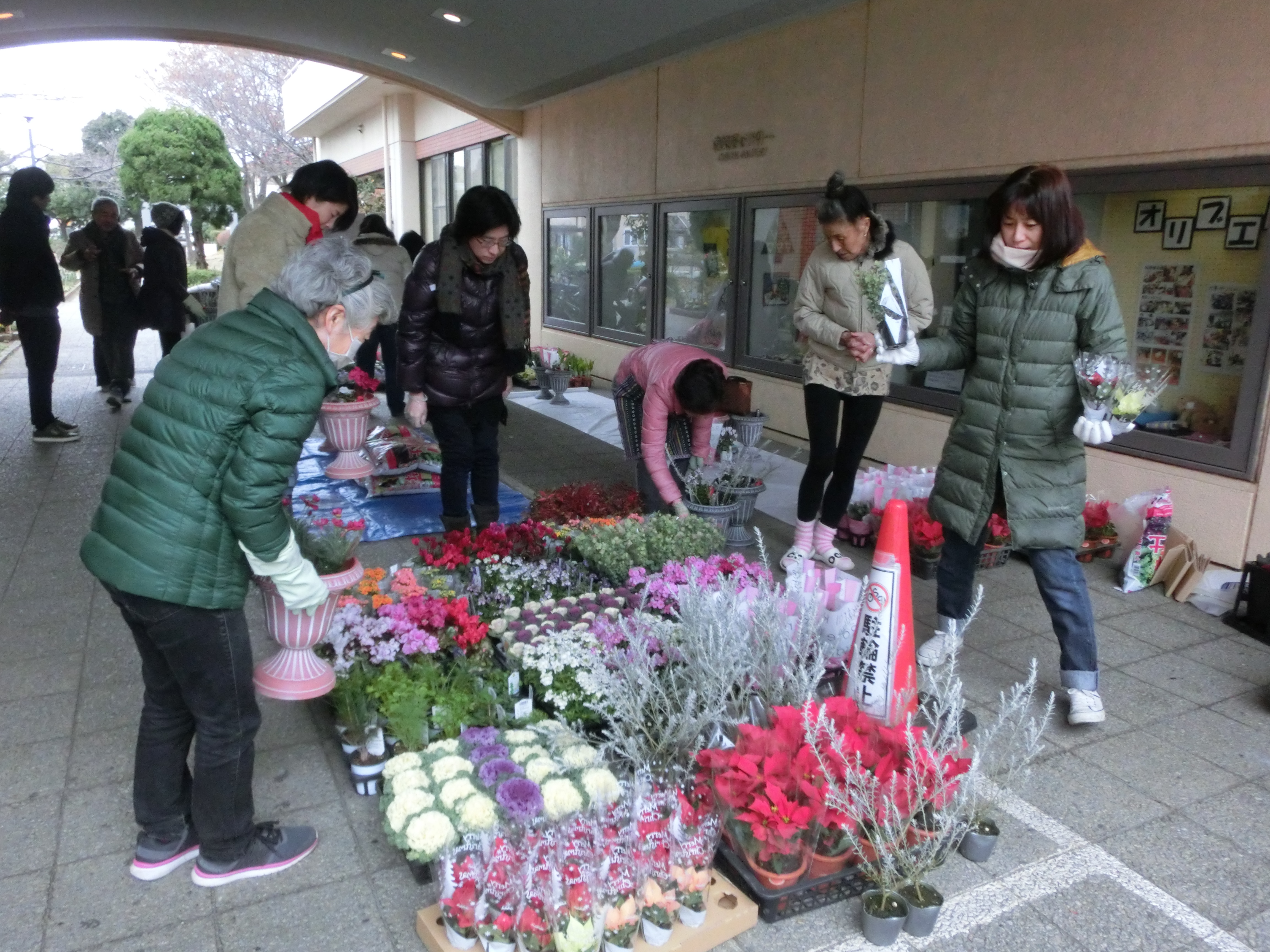 花屋さんの店先さながら・・・ 迷い迷い 選ぶ楽しみ 色を統一される方 クリスマス用 お正月用にアレンジされる方 手入れの仕方や寄せ植えのアドバイスを 伺いながら 手を動かし 情報交換し アッという間に完成! 歓声♪ 素敵な年末年始をお過ごしください
