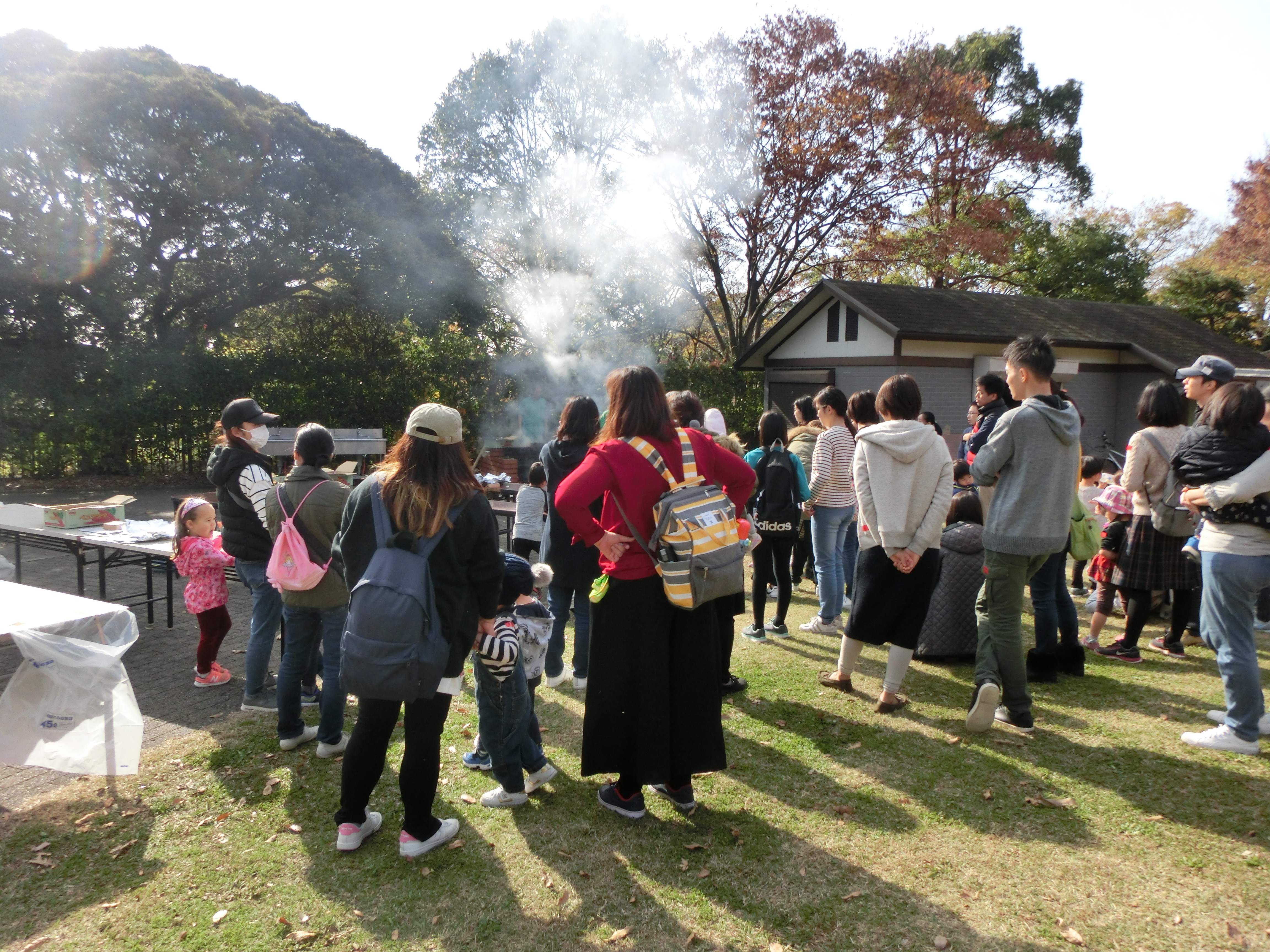 地区センターに集合したら 2班に分かれて 本牧山頂公園キャンプに出来る広場に向かいます 向かう途中も虫を捕まえたり 落葉を拾ったり 今年もお天気に恵まれ 風もなく 焼き芋日和 落葉をいっぱいいっぱい 集めて集めて 冬の日差しを楽しんで