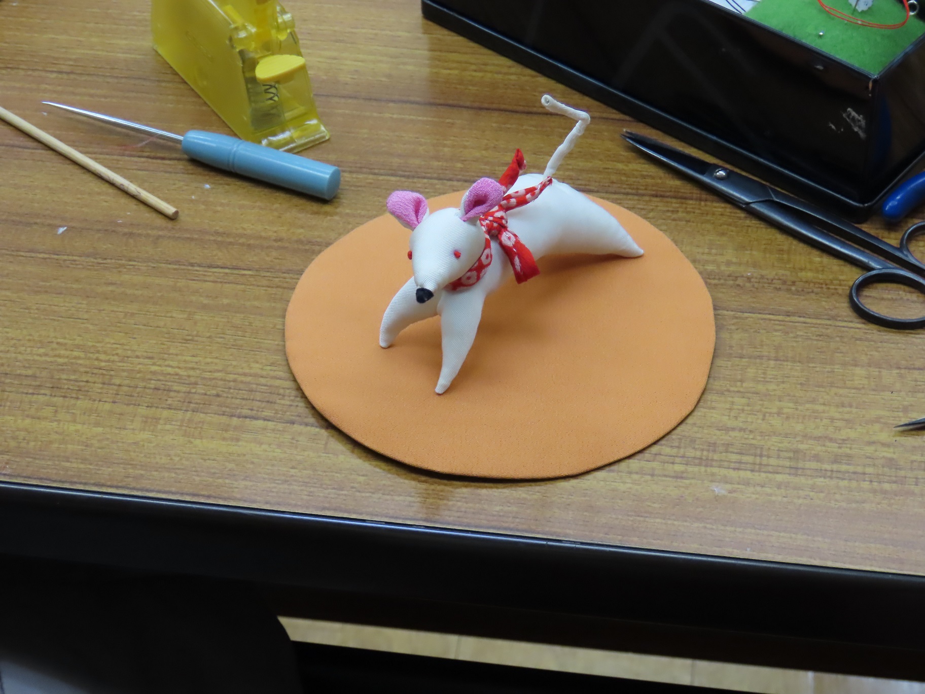チクチク真剣そのもの ねずみの形に縫い上げて 綿を詰めます 綿の詰め具合で ねずみの表情に個性が出ます 愛らしい ねずみさんの完成 良い年を お迎えください