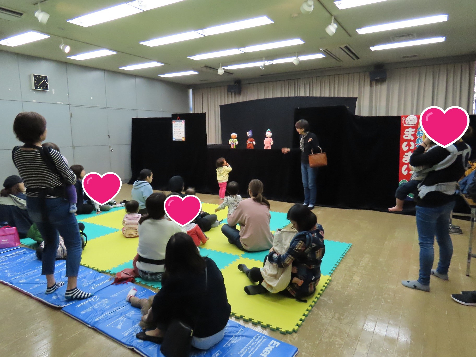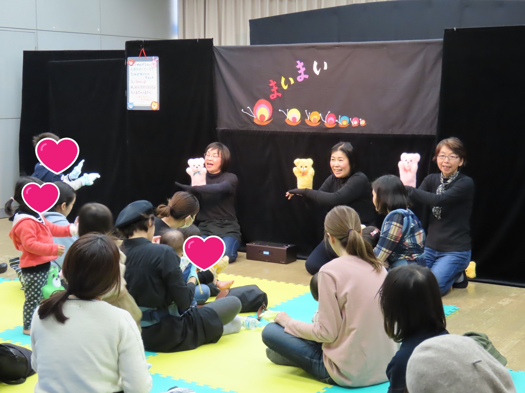 人気の「あおむしたいそう」からスタート ママにだっこして ゆったり のんびり 午後のひと時 動きが可愛くて ついつい 触りたくなちゃう 「くまさん くまさん」は 子どももママも まいまいさん手作りのくまさん人形で みんなで一緒に遊びました