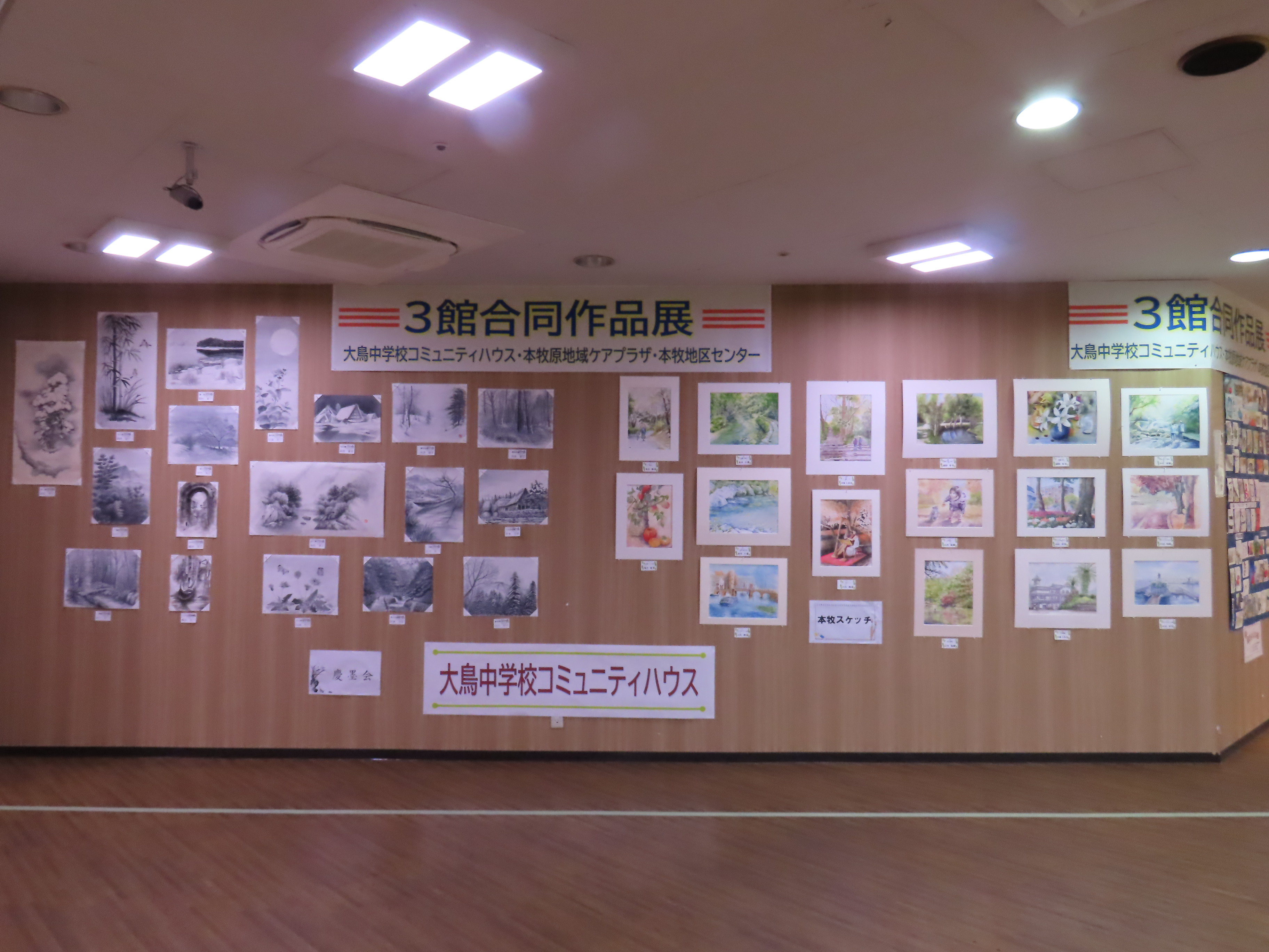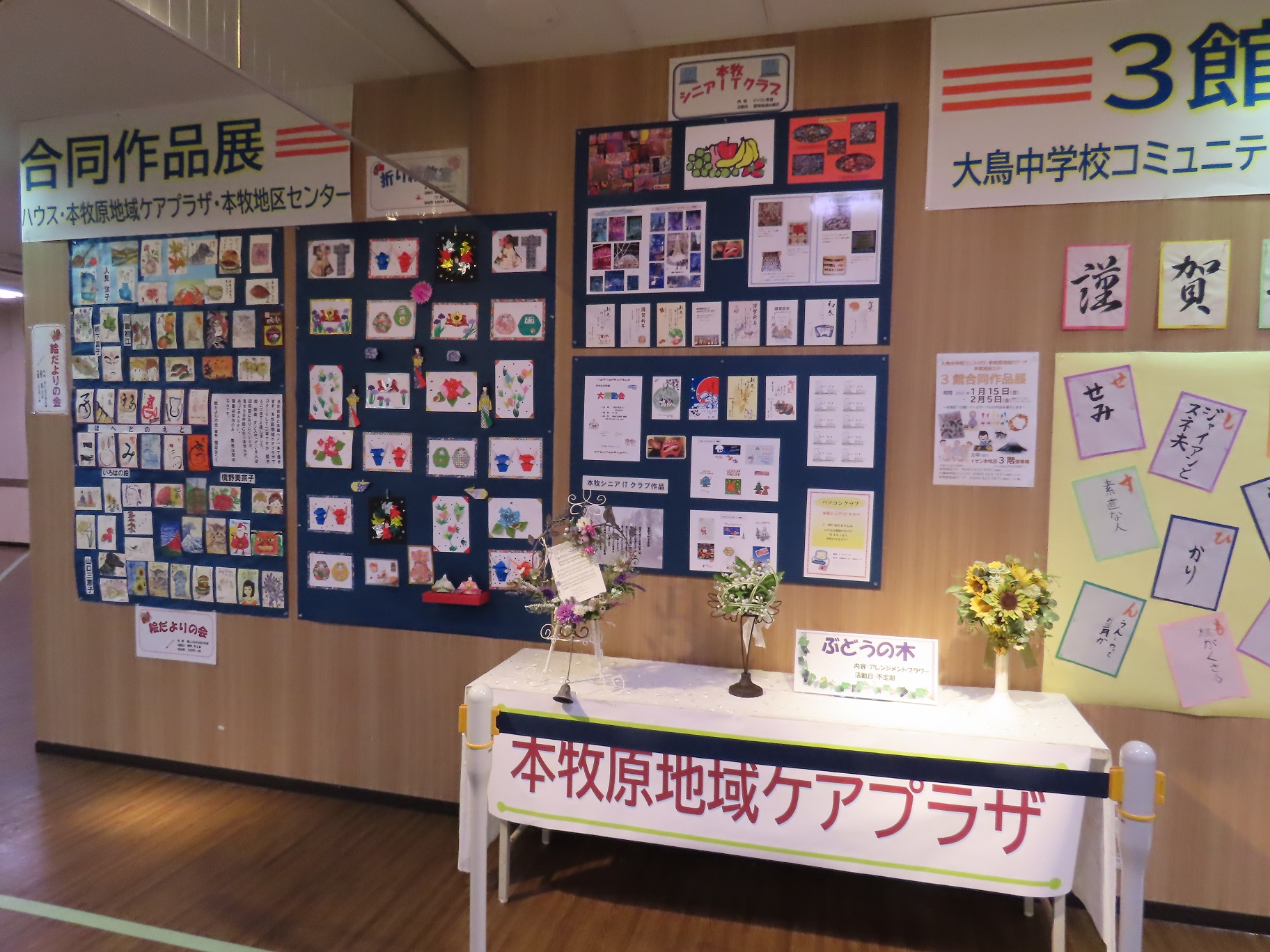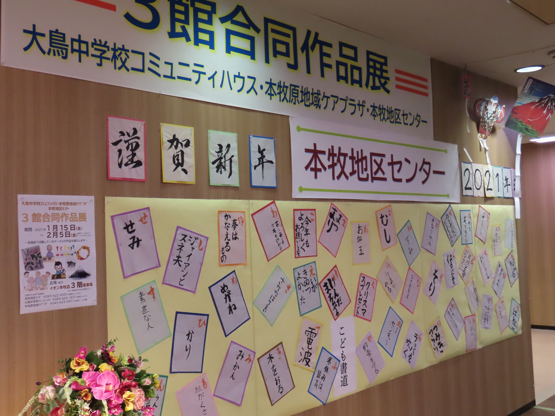 みなさんの作品が集まりました。 地区センターからは こども書道の皆さんの作品 新年に因んで 「いろはかるた」こども書道版