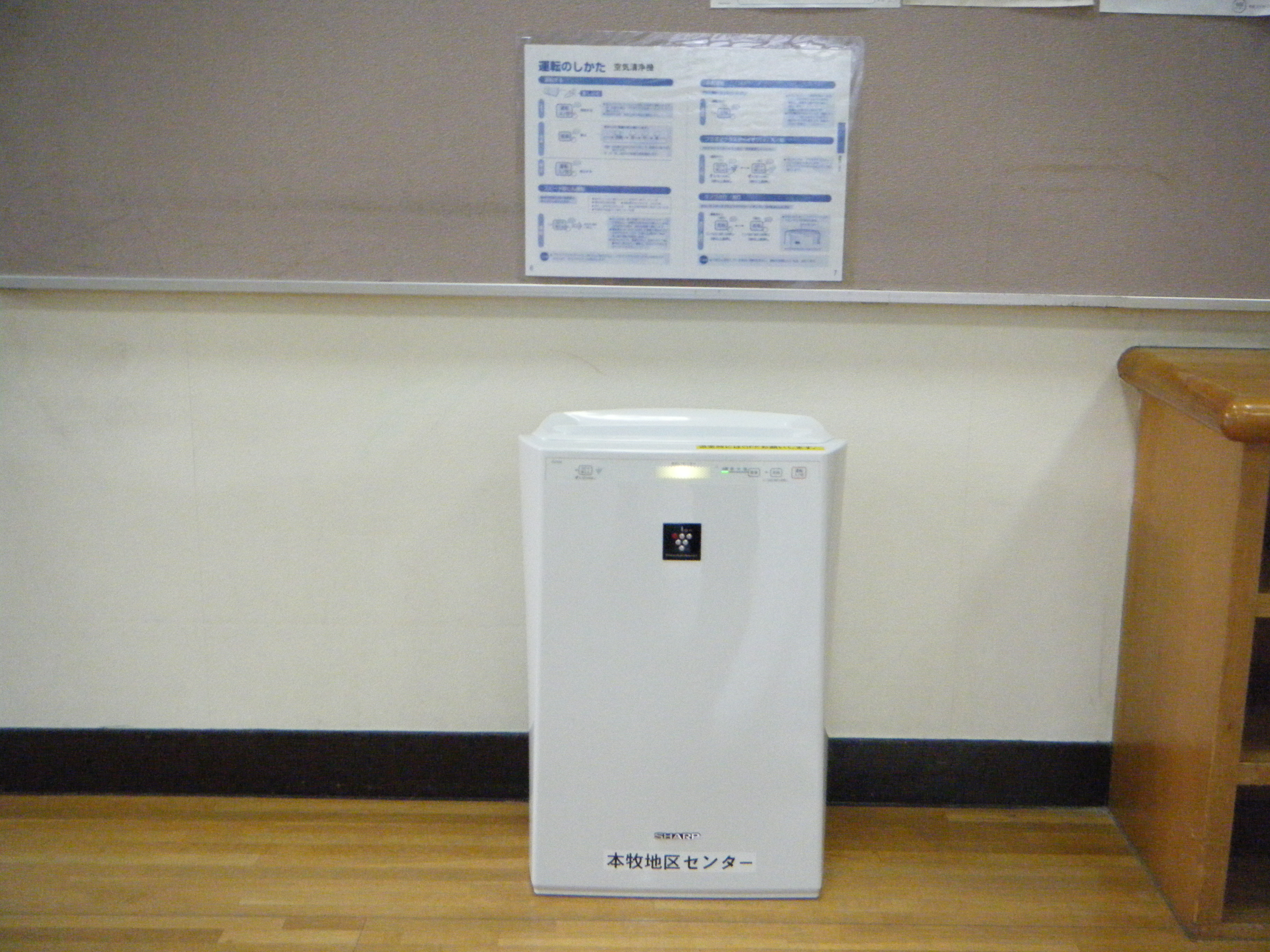 本牧地区センター「プレイルーム」に空気清浄機を設置致しました。