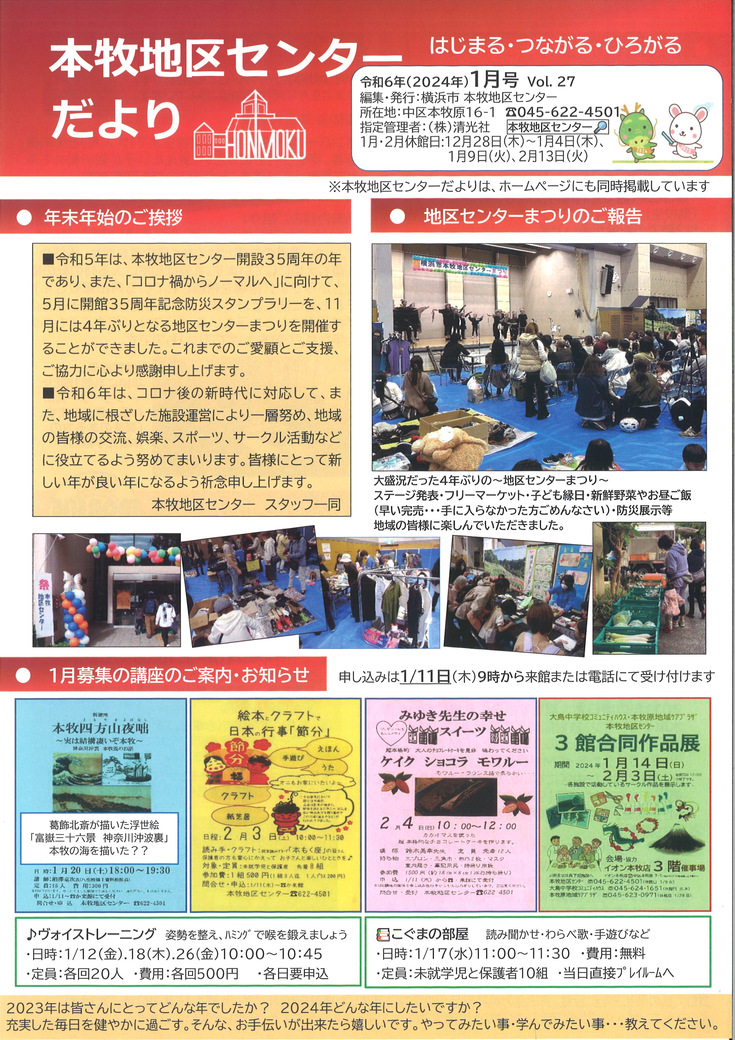 本牧地区センターだより1月号発行しました