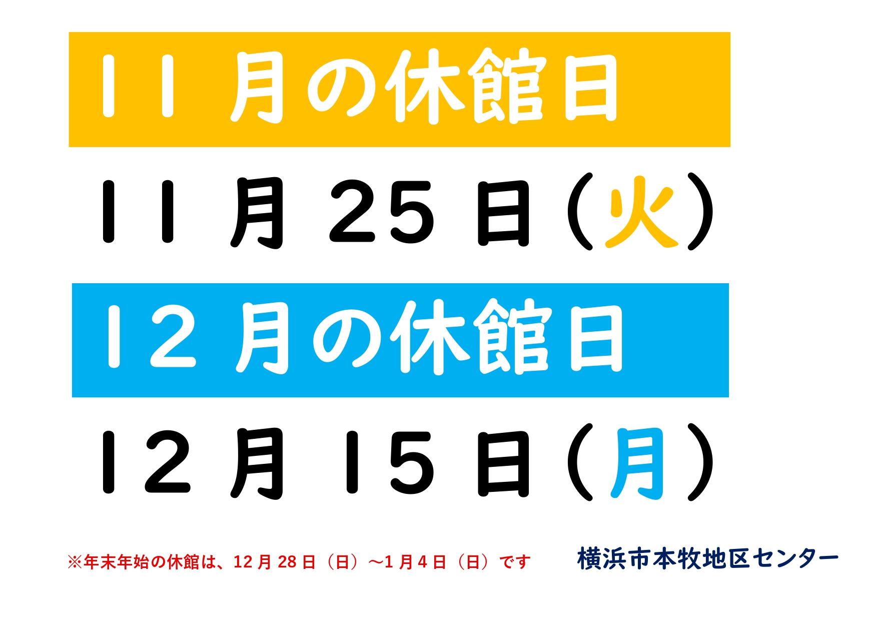 令和7年11月・12月の休館日のお知らせ