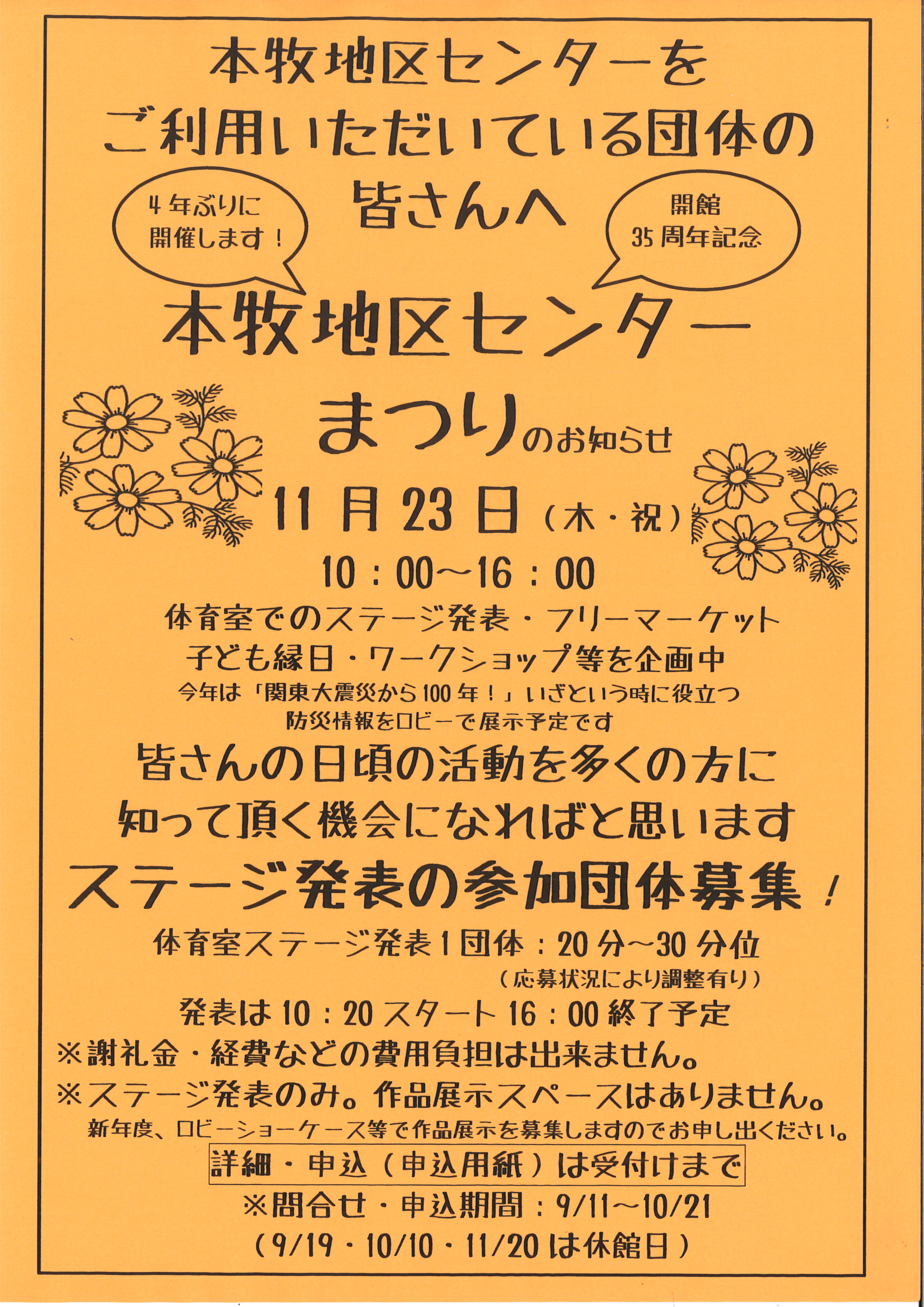 本牧地区センターまつり ステージ発表の参加団体募集
