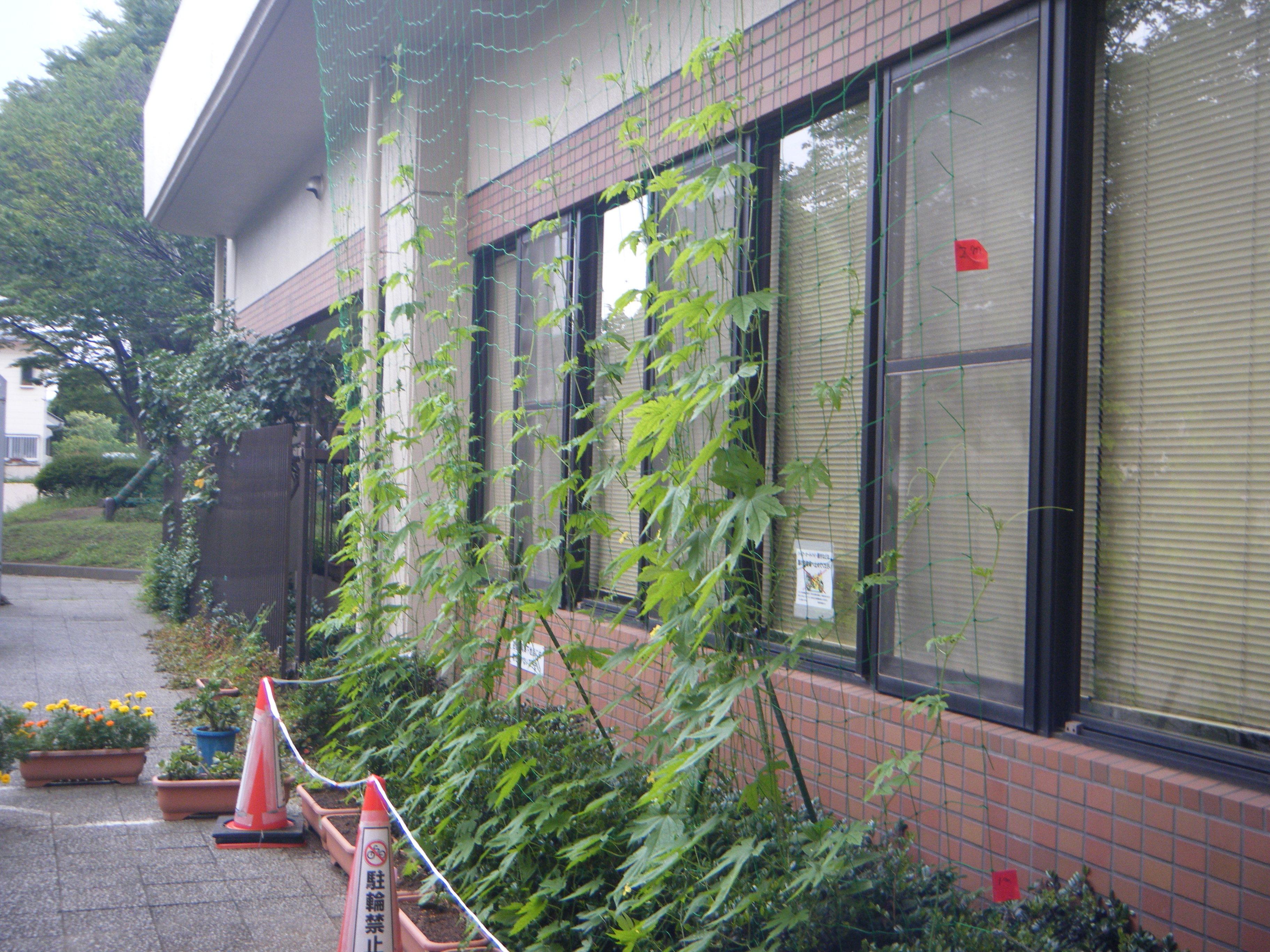 緑のカーテンチャレンジ③「ゴーヤの実がつきました」