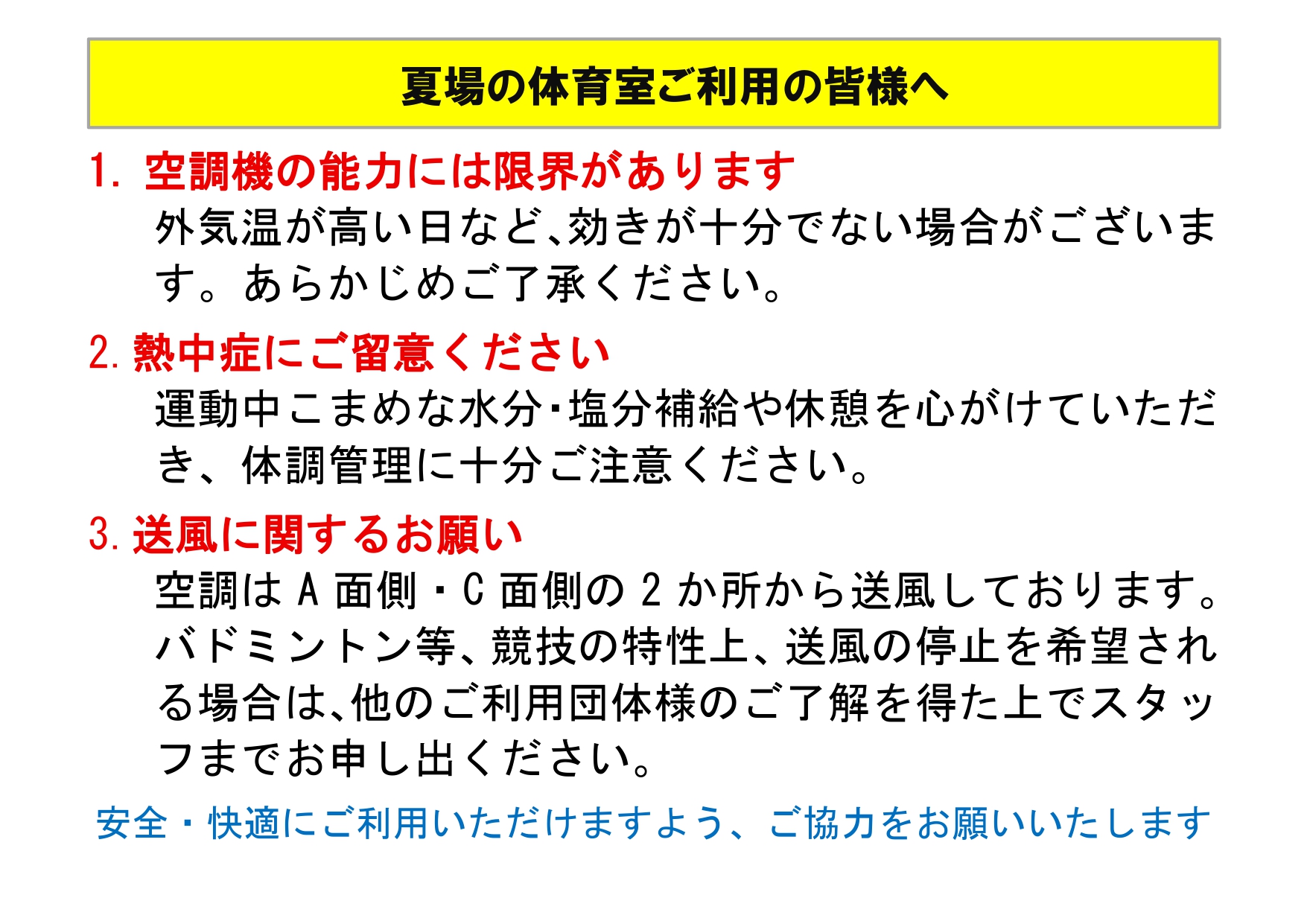 バドミントンなど、競技の特性上で送風の停止をご希望される場合は、
