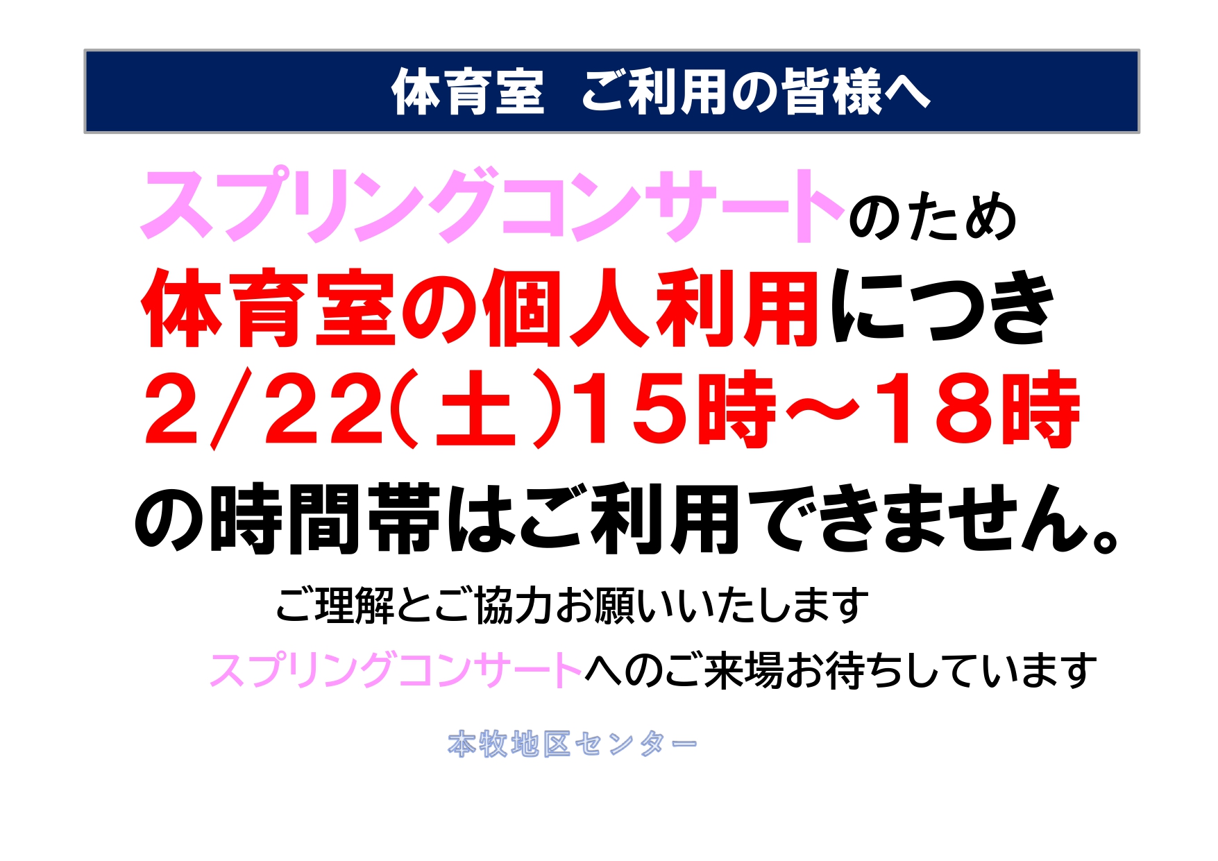 2025年2月22日の体育室個人利用の時間帯はご利用いただけません