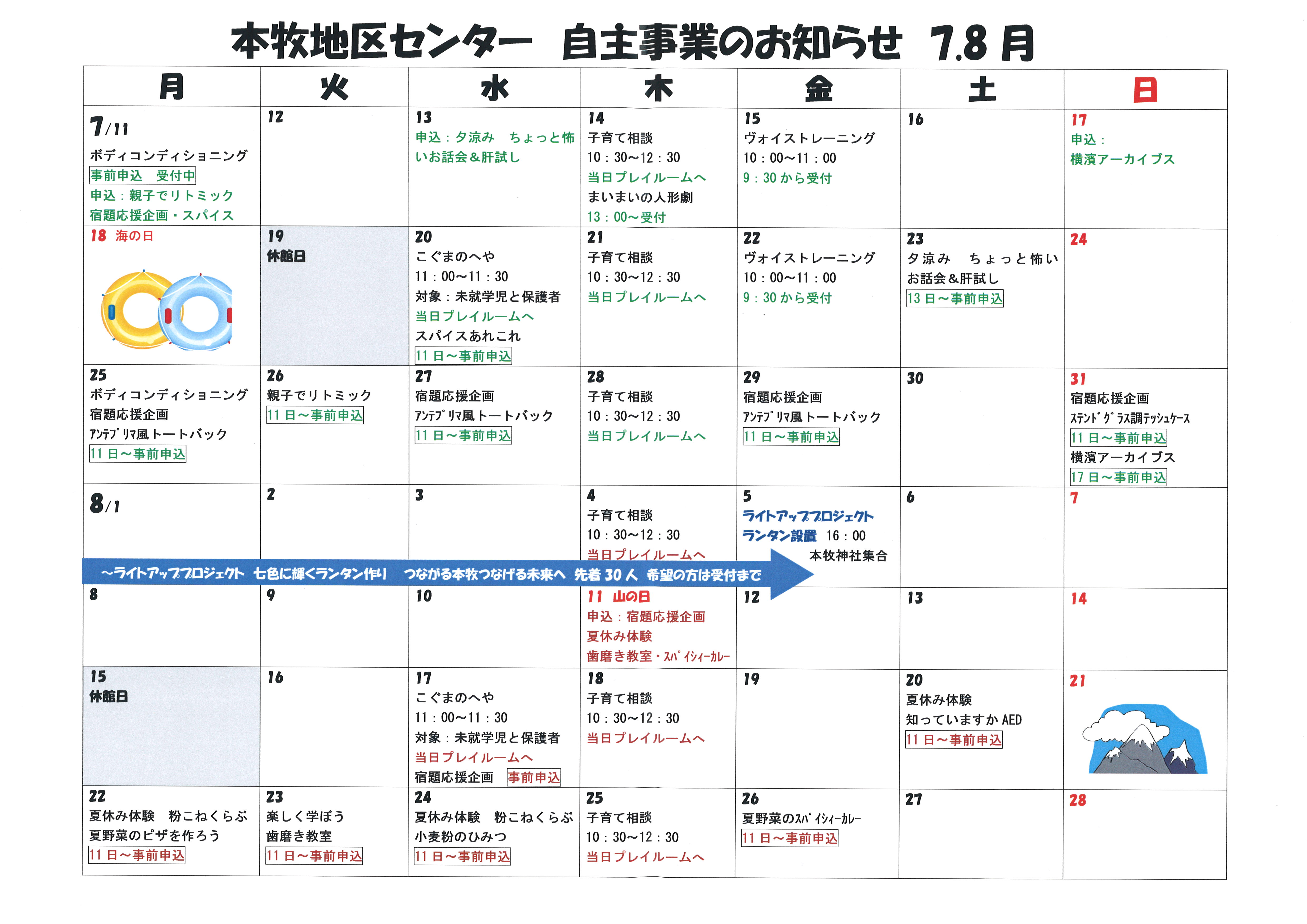 詳細については「本牧地区センターホームページ」に掲載又地区センター