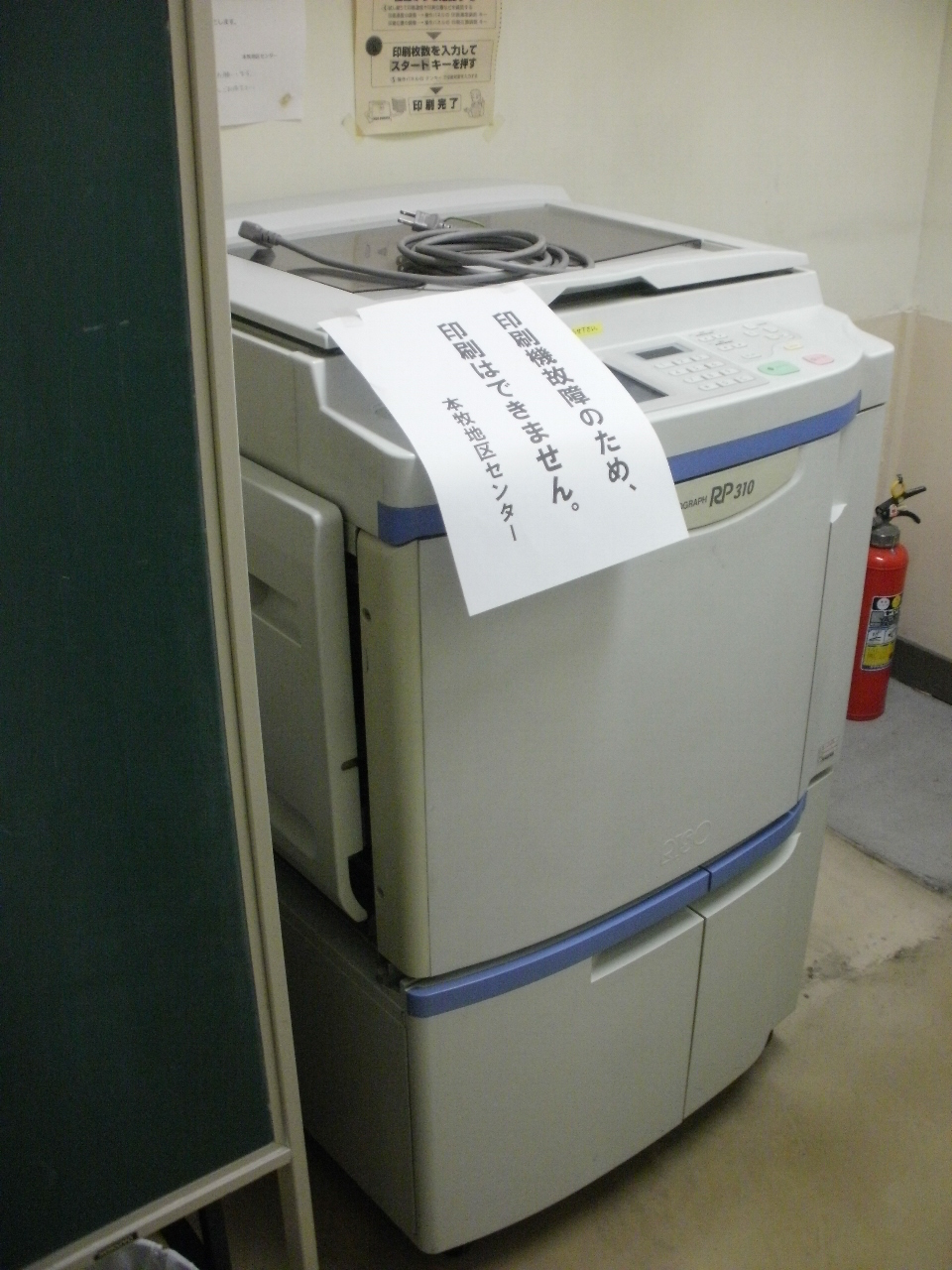 平成15年から9年間も酷使にたえ、多くの利用者の方々のお知らせ作りや、当館のさまざまな事務書類やチラシの印刷に頑張って働いてくれておりました。