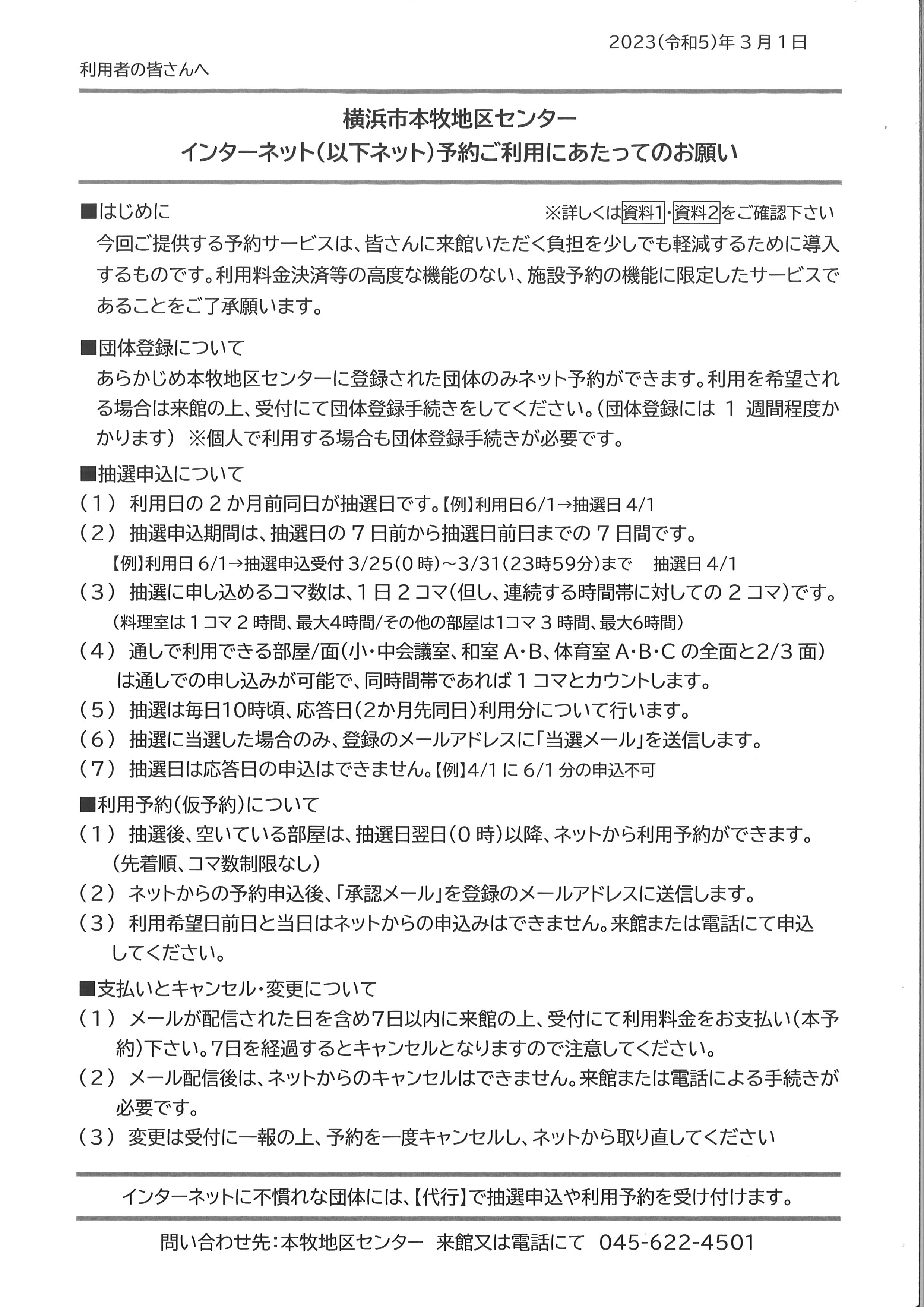 ネット予約システムの概要は、添付資料をご覧ください。