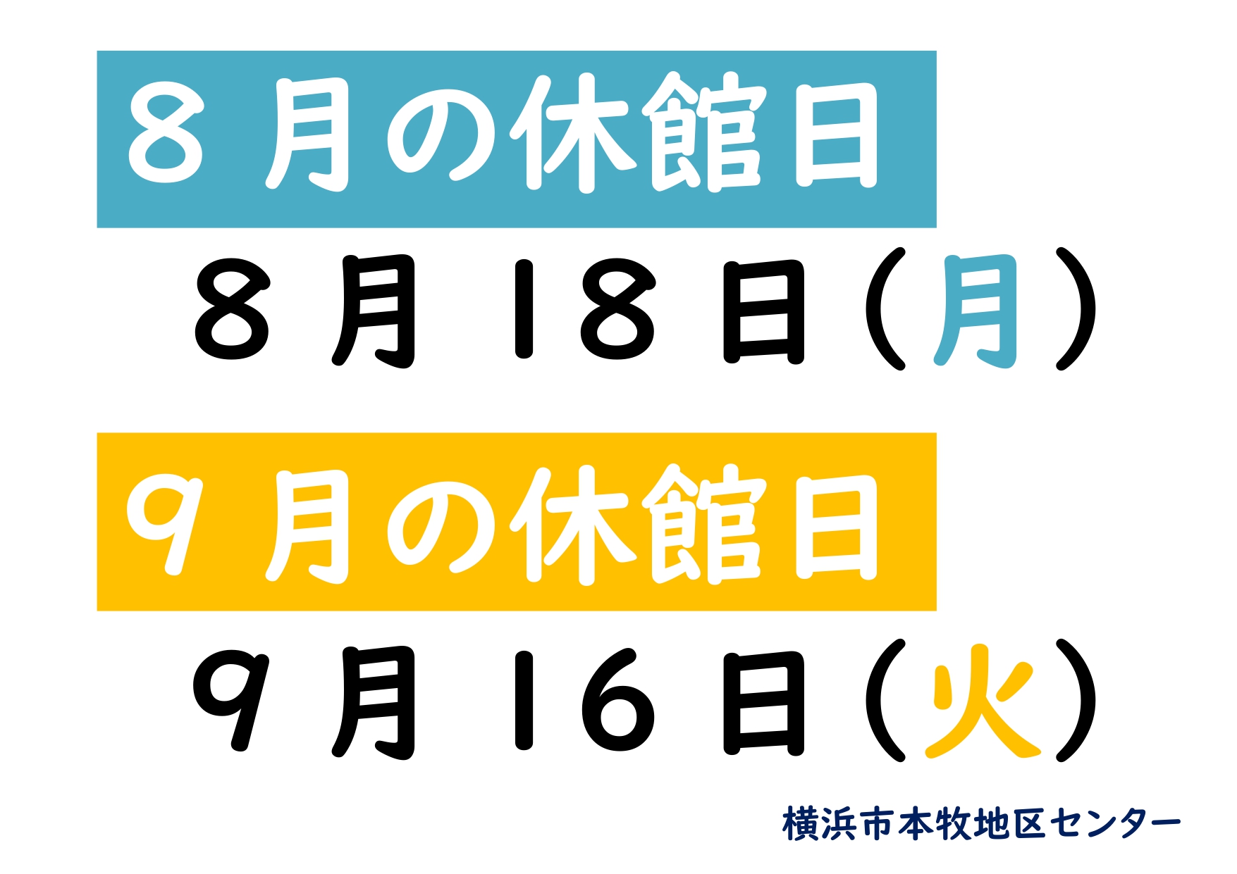 令和7年8月・9月の休館日のお知らせ
