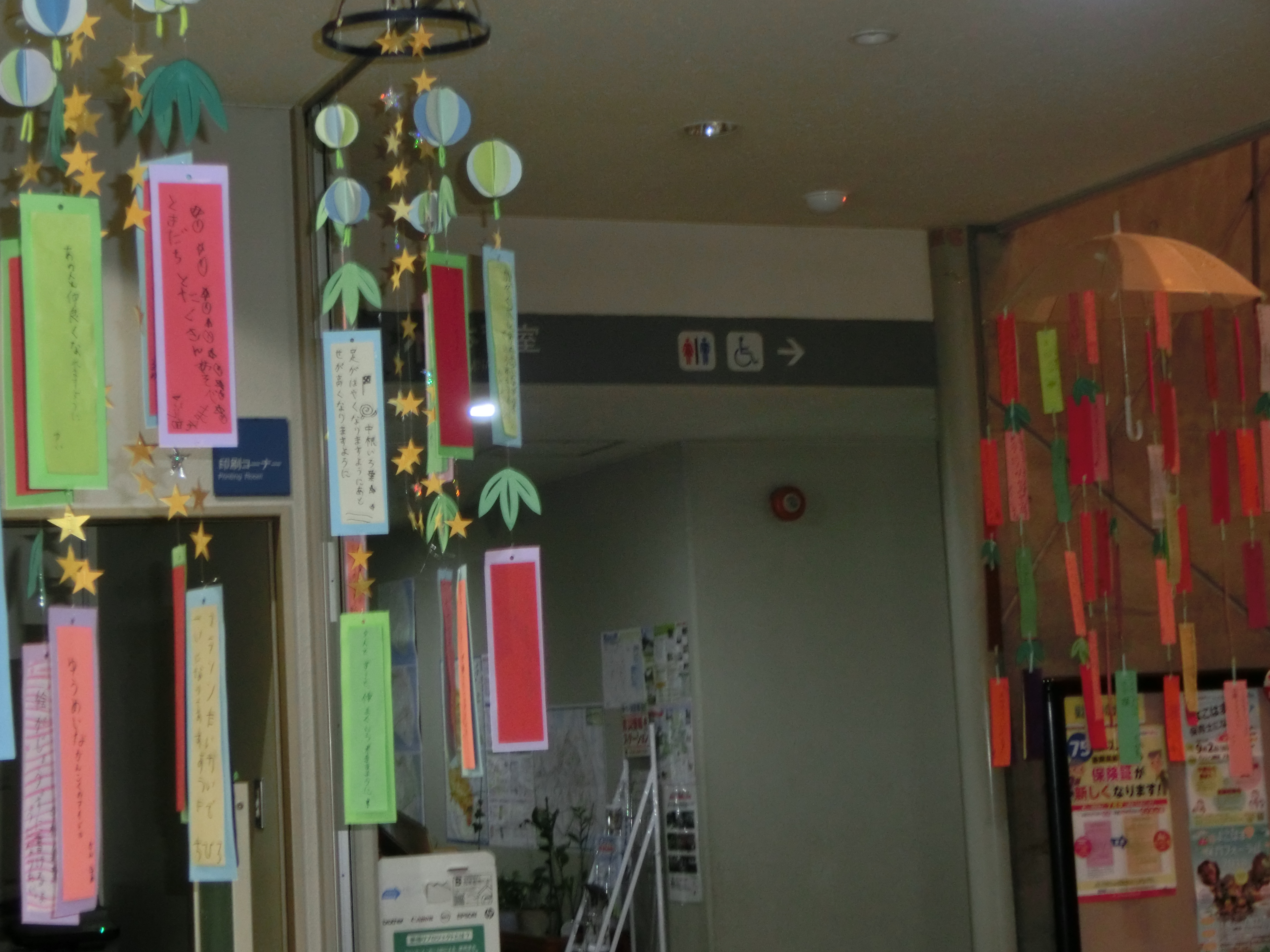 七夕気分で短冊飾りをしました。スタッフの皆さんが